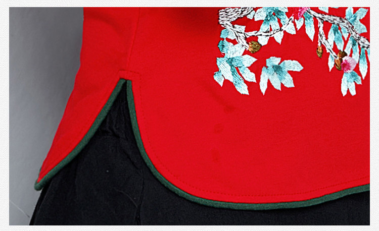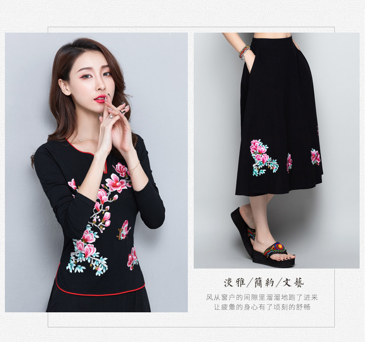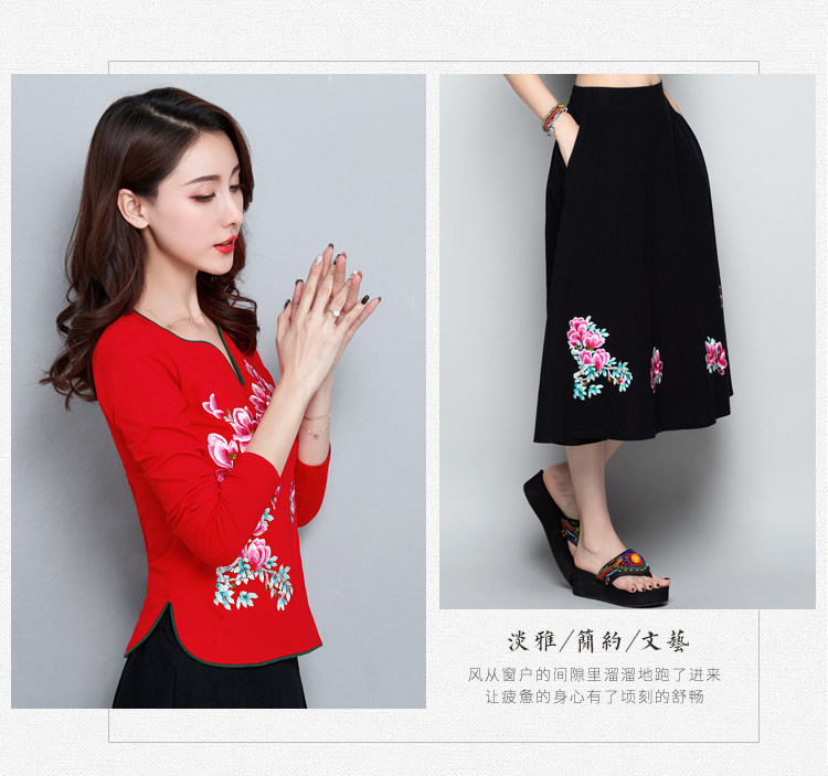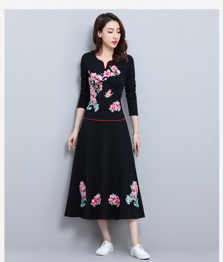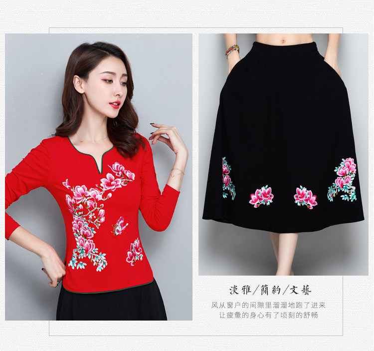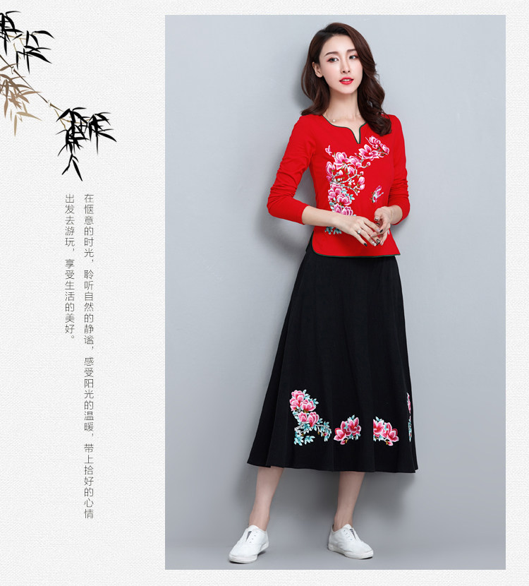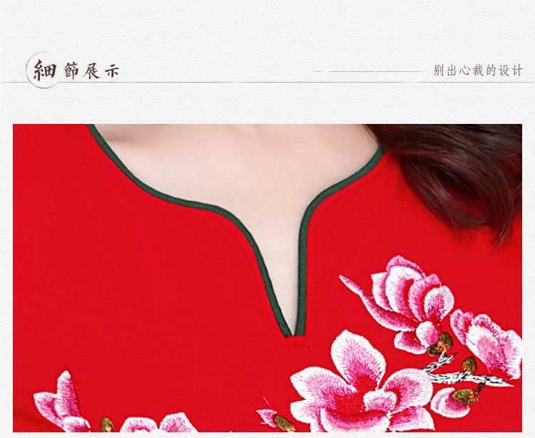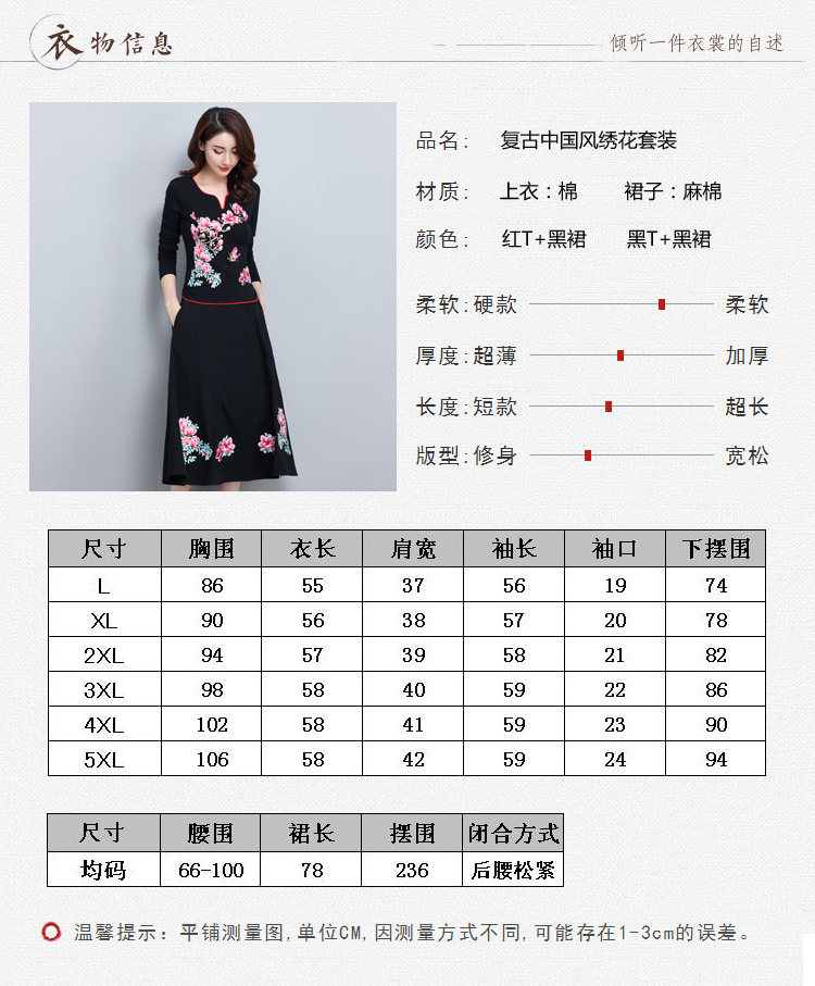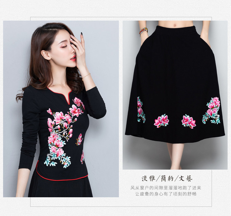 LFJR-TZ8748新品撞色V领复古民族绣花大码两件套