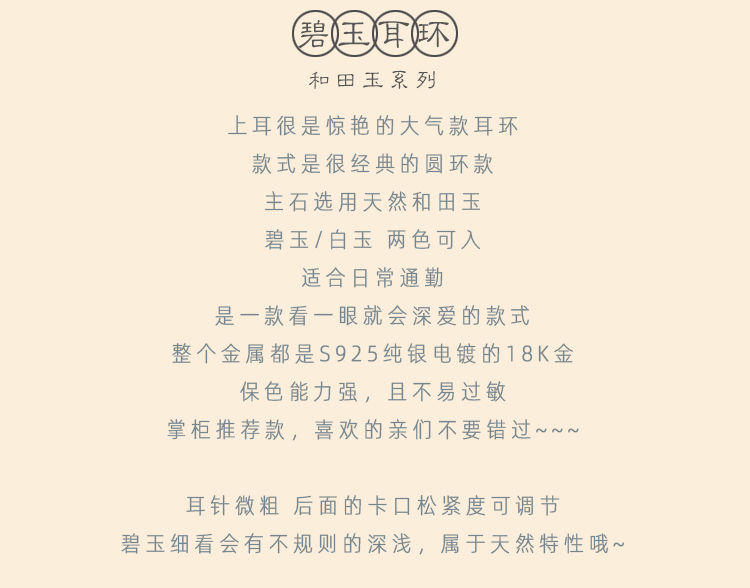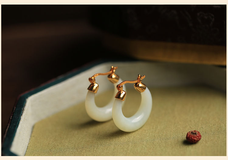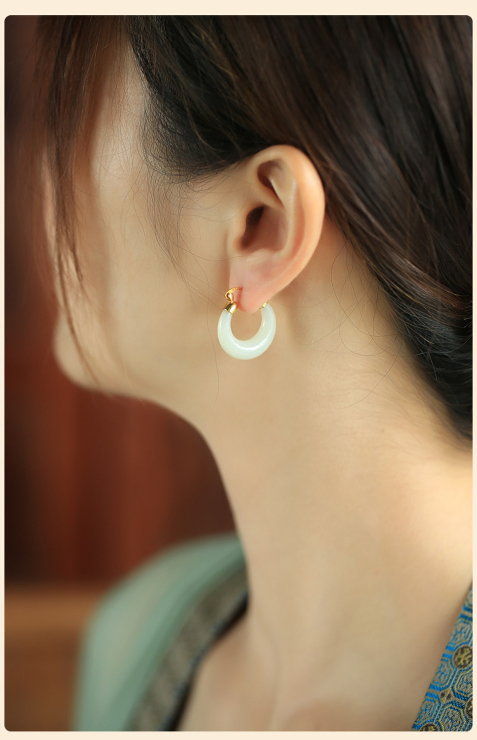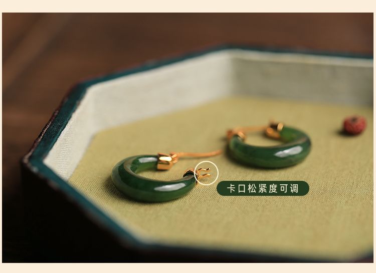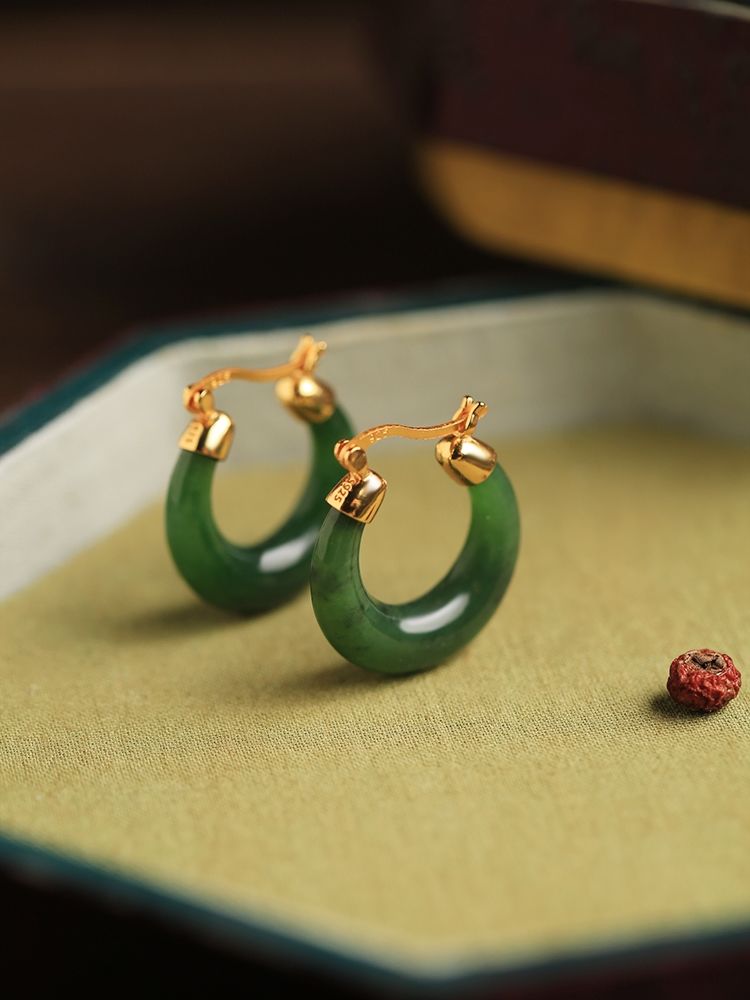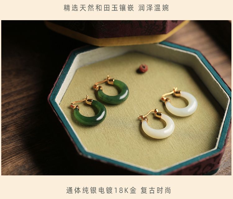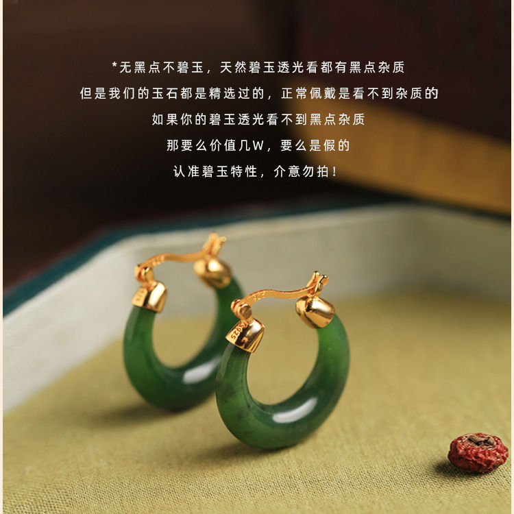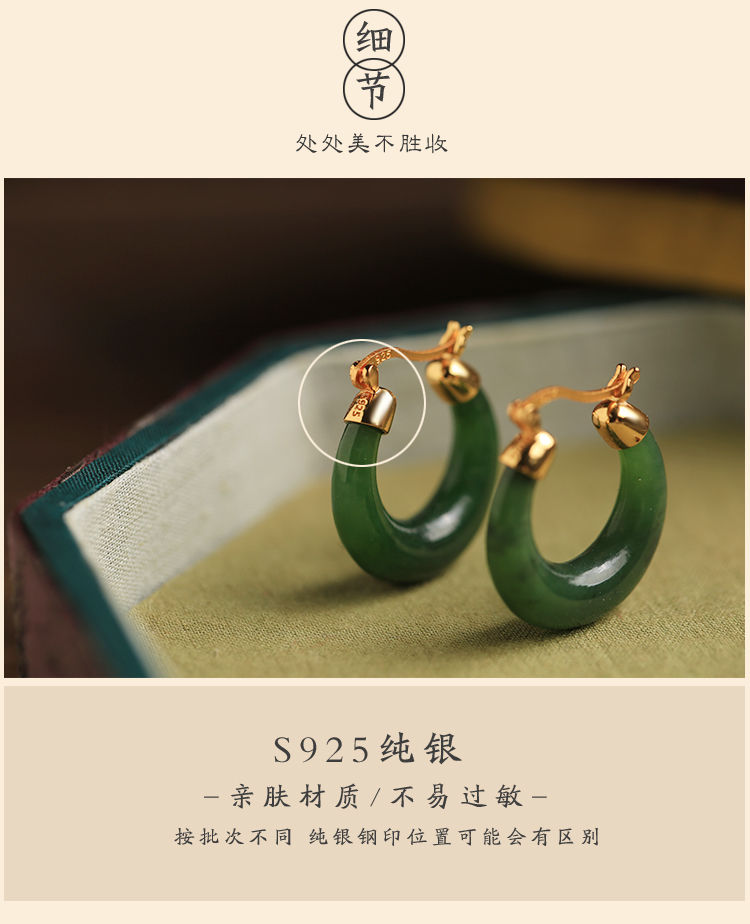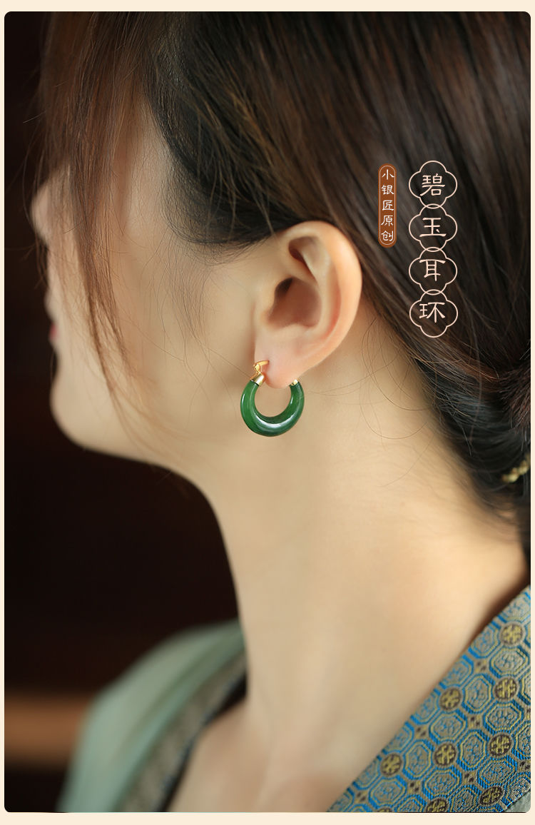 TZW-小银匠S925纯银耳环女中国风宫廷碧玉耳圈耳扣高级感故宫耳饰耳坠