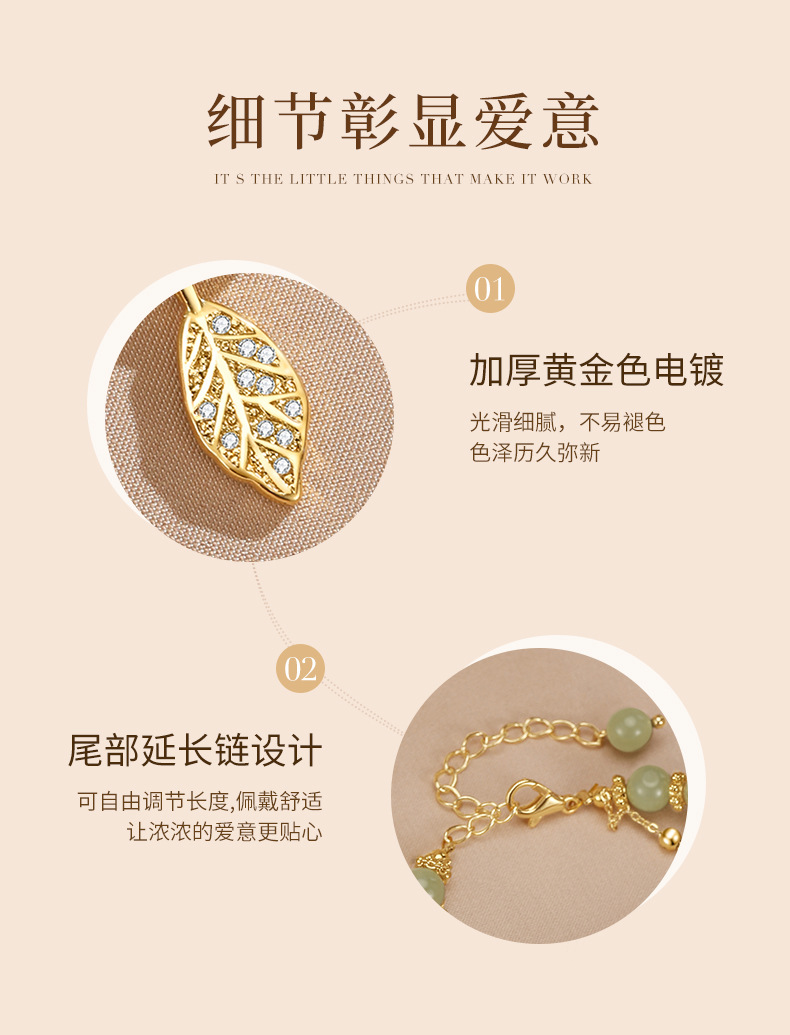 六鑫珠宝 和田玉金枝玉叶手链 s925银