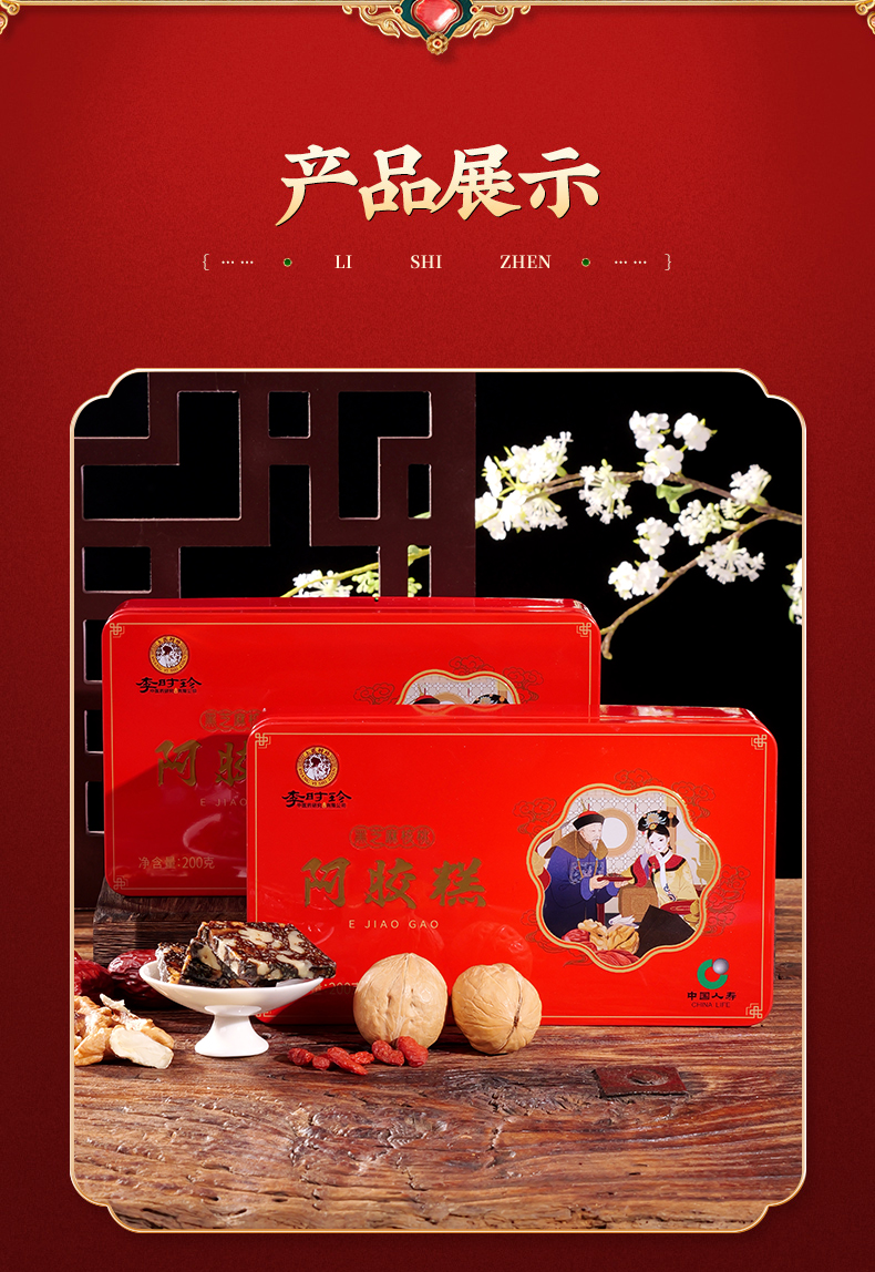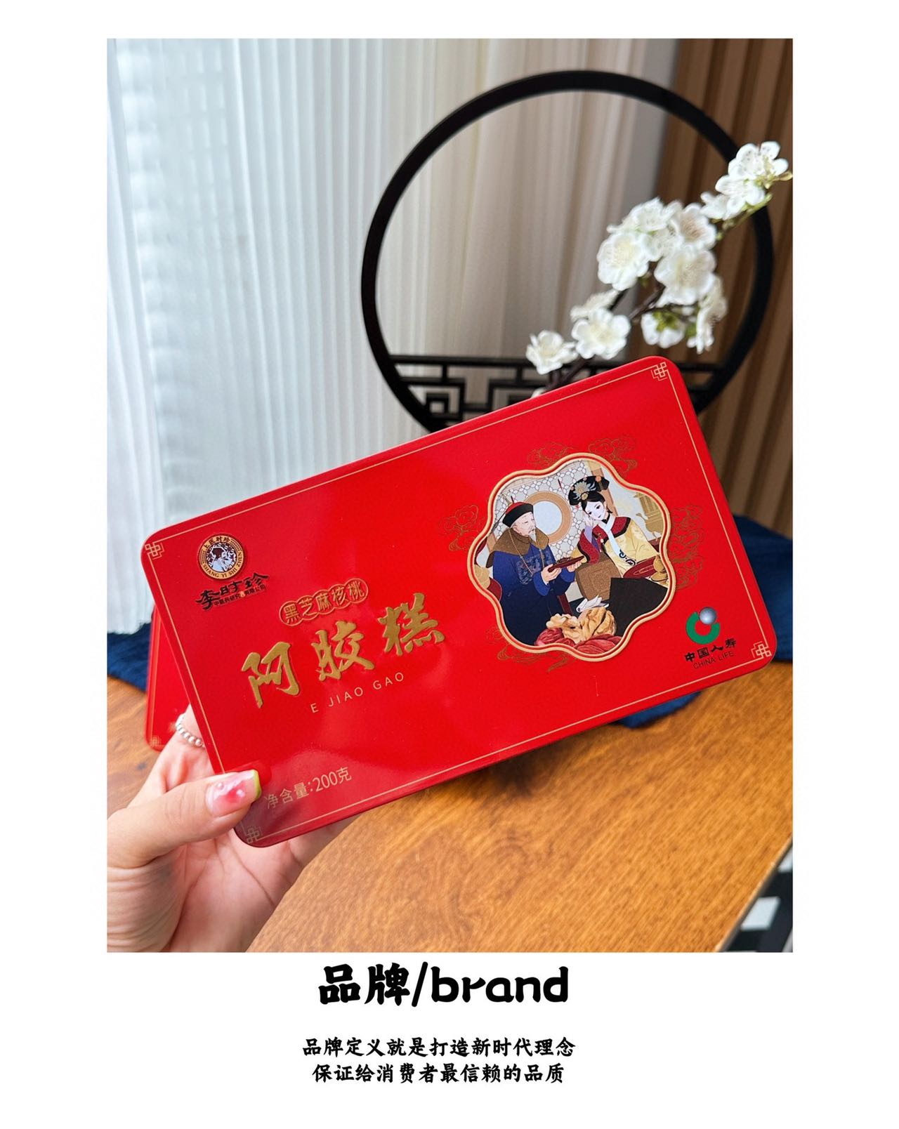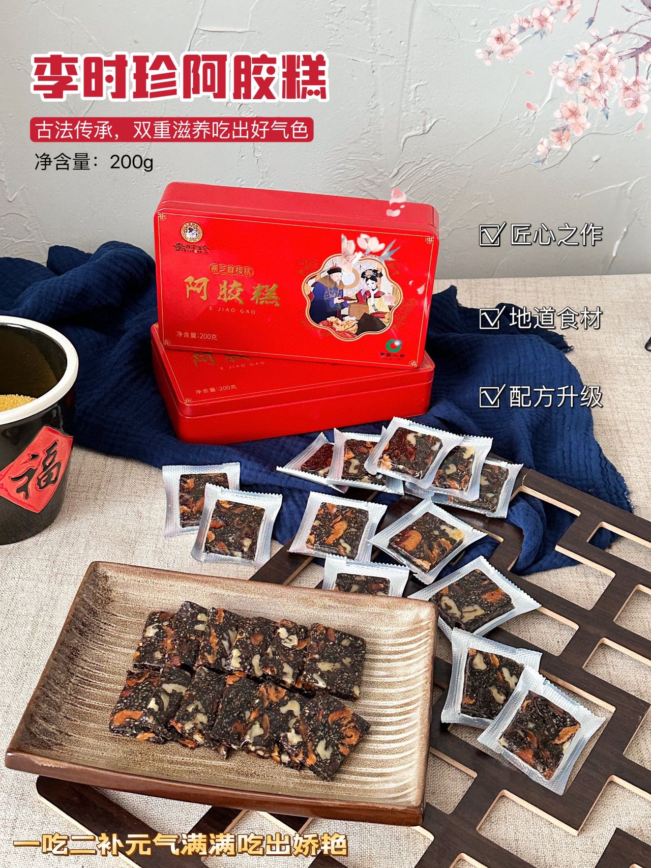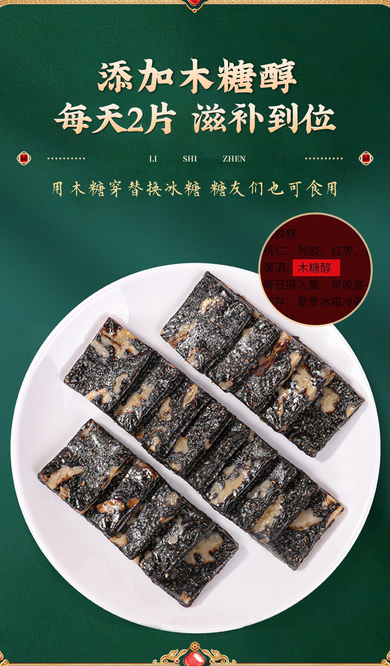 【非遗地道好阿胶 好吃又滋补】李时珍·黑芝麻核桃阿胶糕 正宗东阿阿胶 黑芝麻 核桃 枸杞 红枣 黄酒 5大辅料 7道工序熬制 滋补养颜 200g/盒