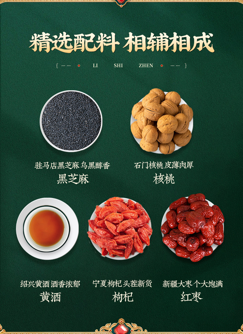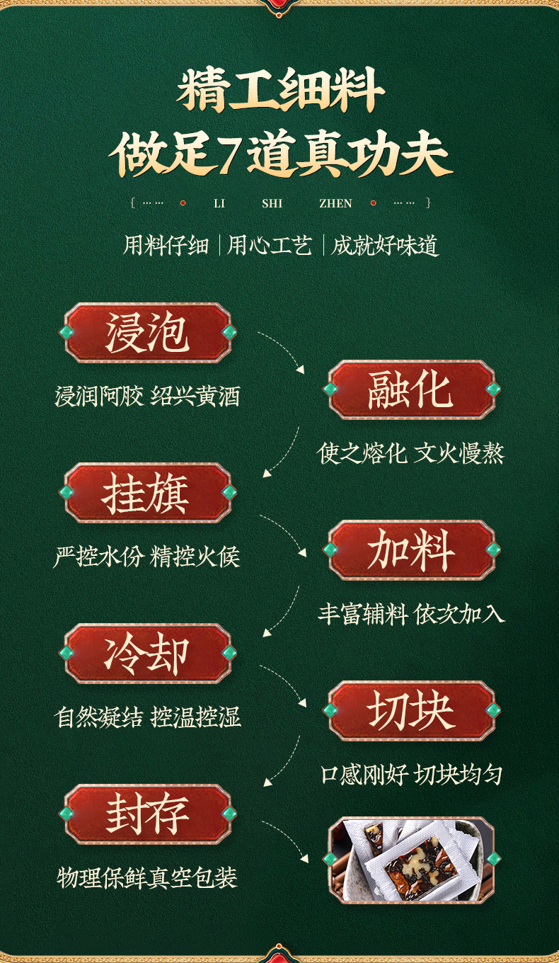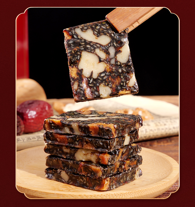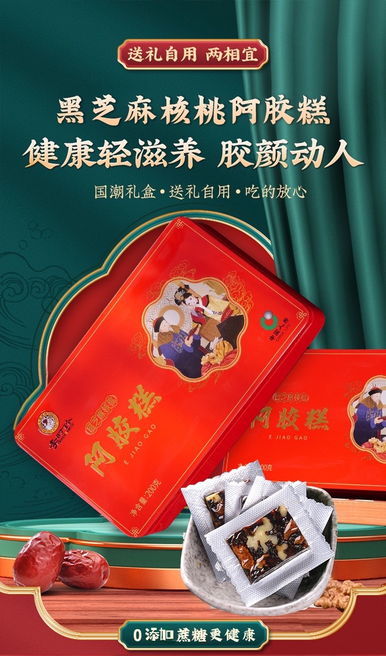 【非遗地道好阿胶 好吃又滋补】李时珍·黑芝麻核桃阿胶糕 正宗东阿阿胶 黑芝麻 核桃 枸杞 红枣 黄酒 5大辅料 7道工序熬制 滋补养颜 200g/盒