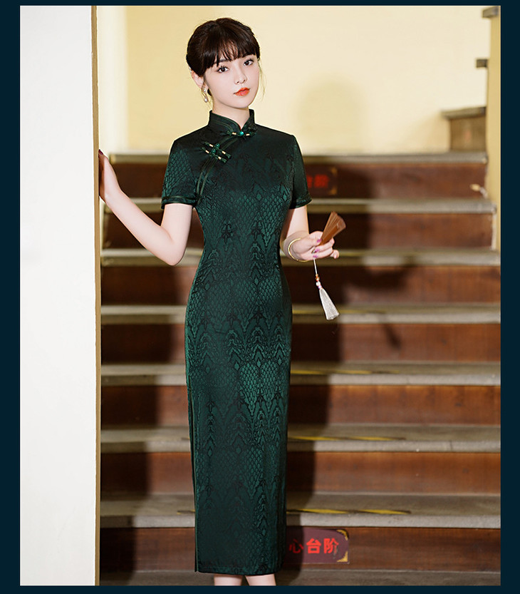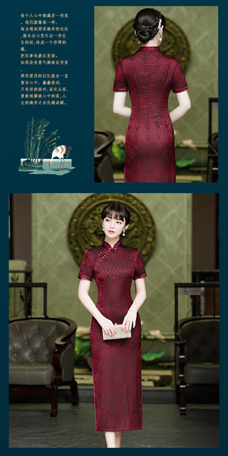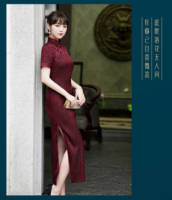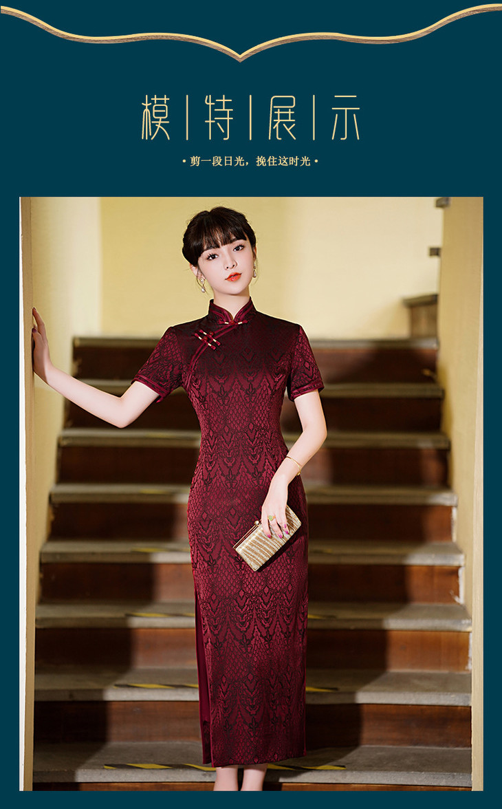 C9004春夏秋冬新款旗袍裙长款旗袍两件套表演礼服