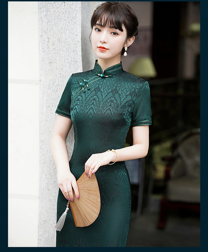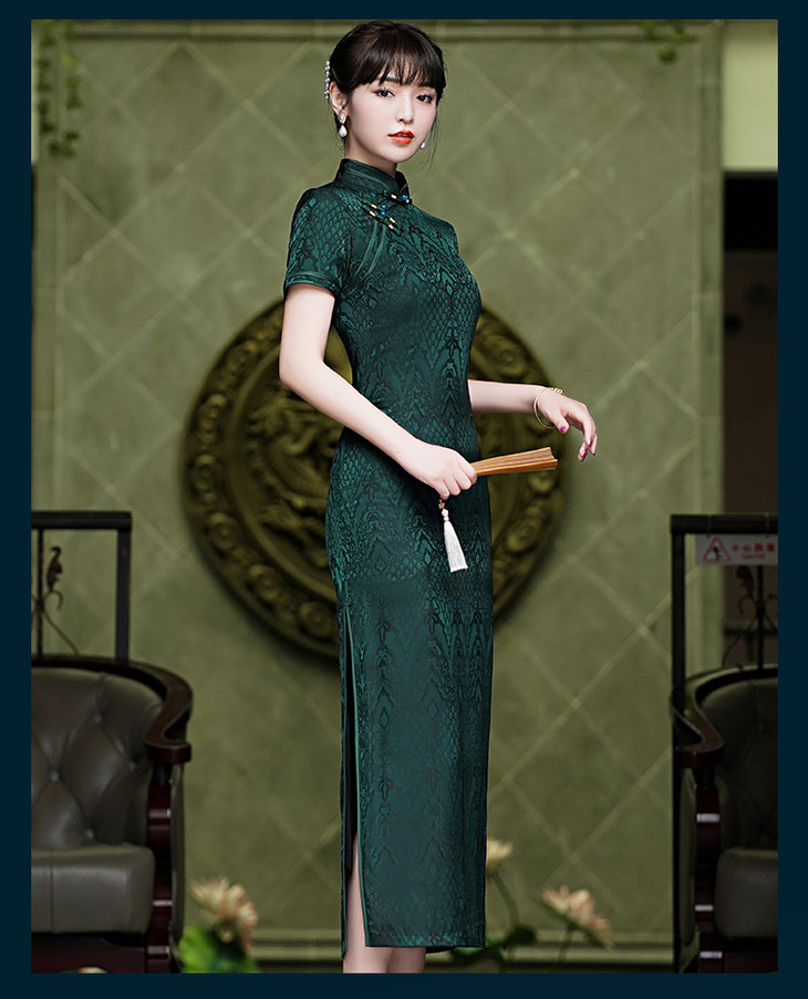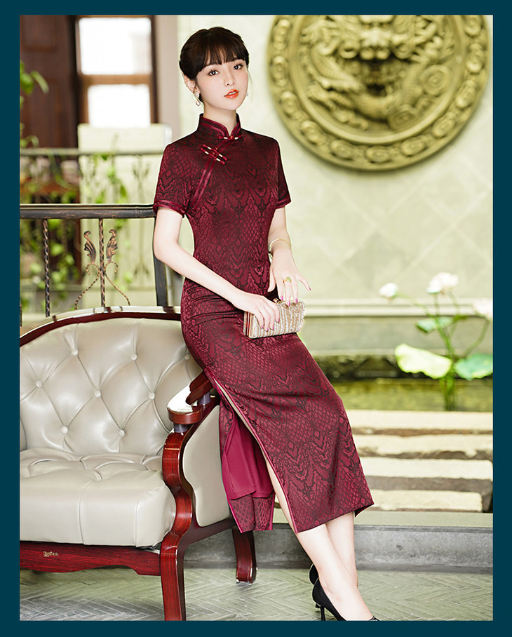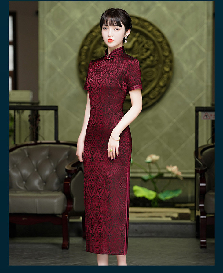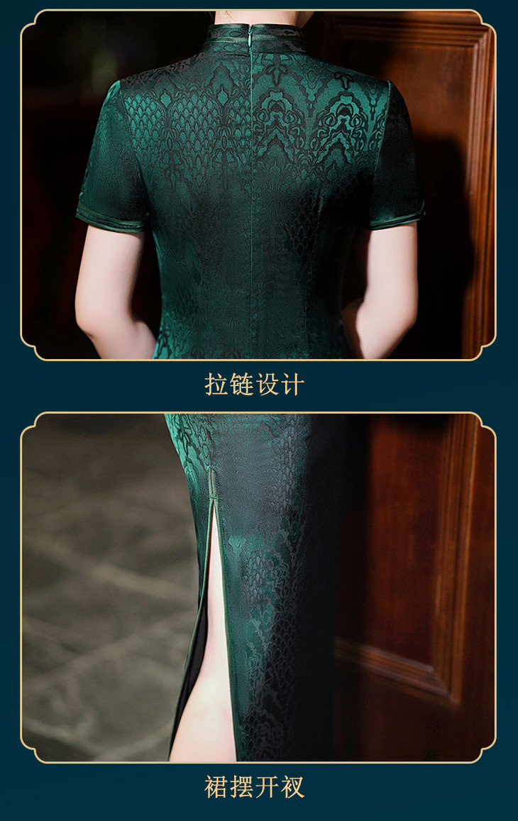C9004春夏秋冬新款旗袍裙长款旗袍两件套表演礼服