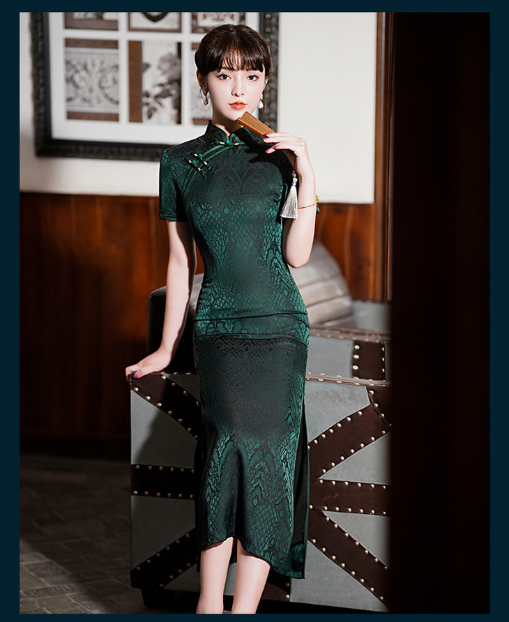 HH-H081 纯色复古老上海香云纱旗袍改良版