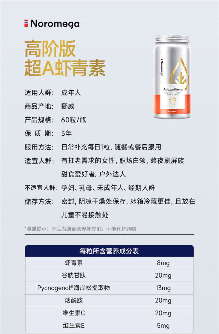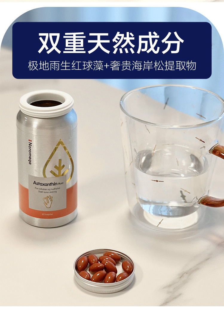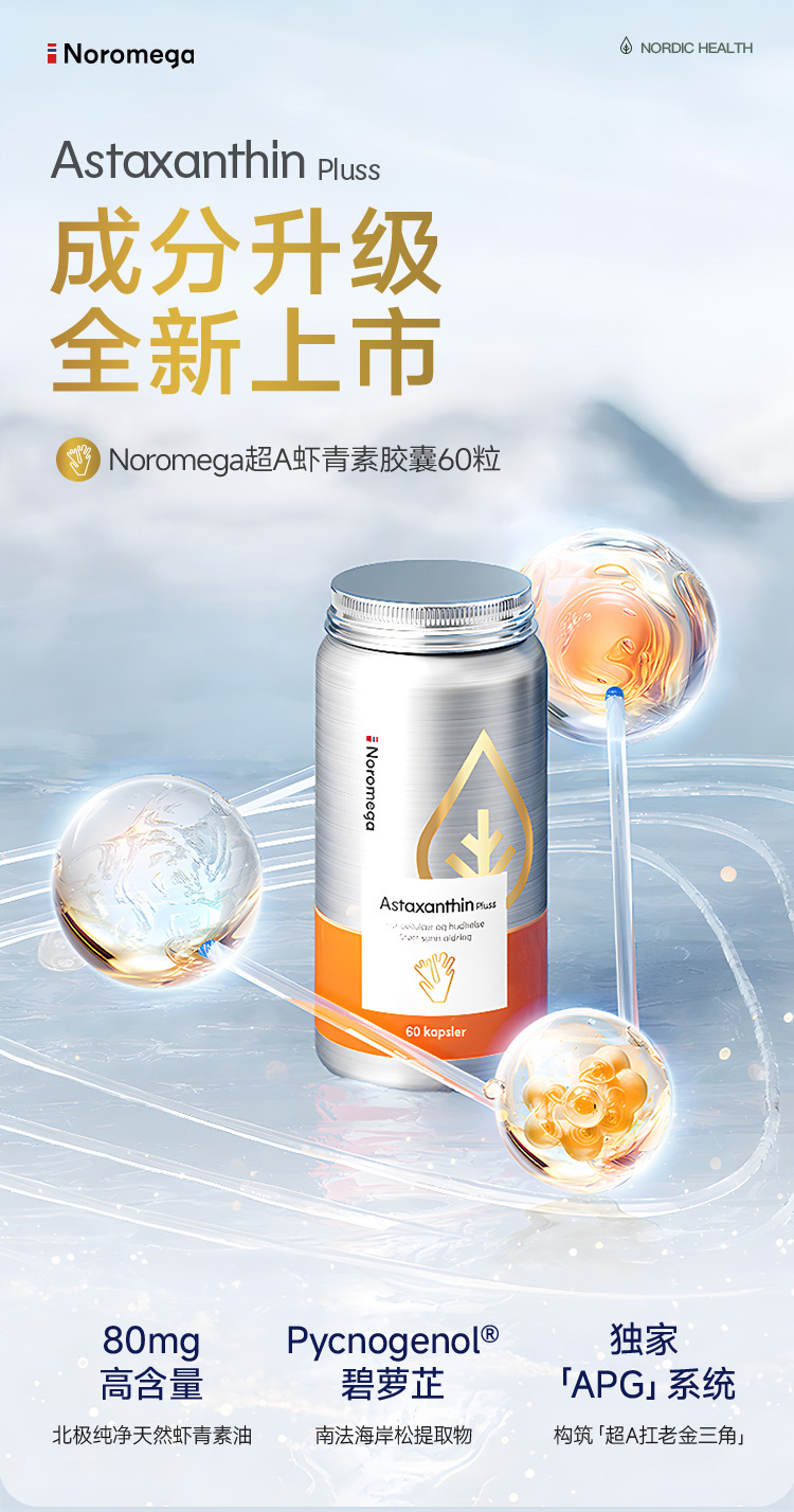 超A虾青素|Noromega超A虾青素60粒 每2粒8mg 挪威进口 超20倍御氧活性 烟酰胺 vc