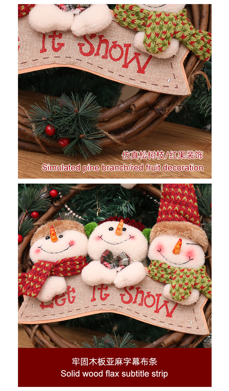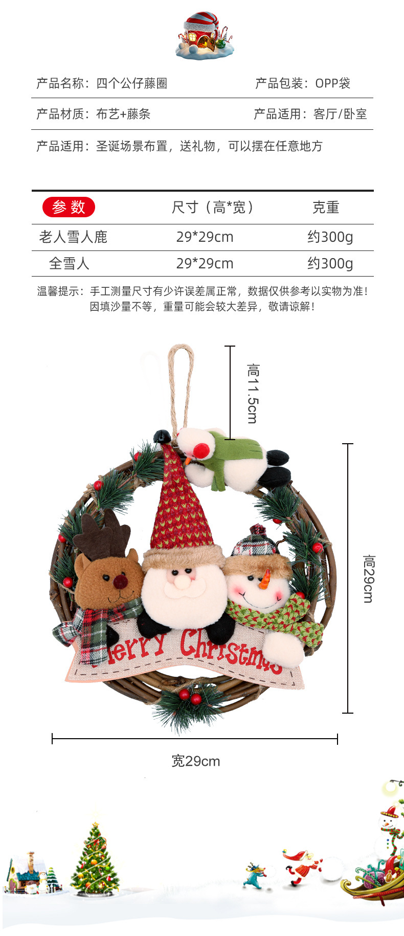 巧鼎圣诞节藤条花环(圣诞老人+雪人+鹿)/1件