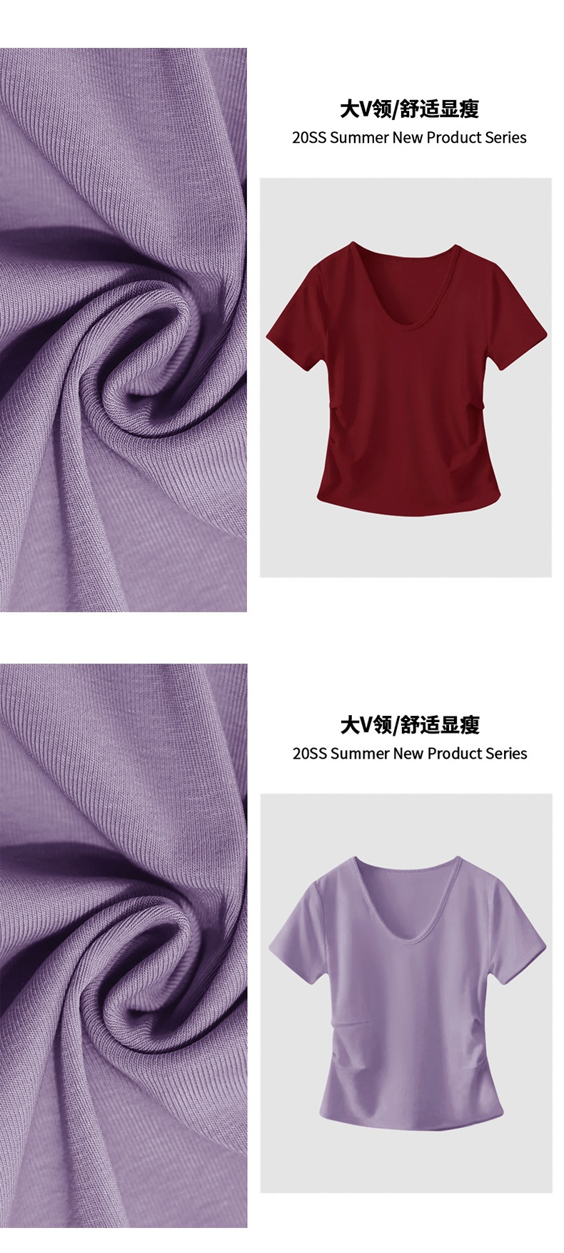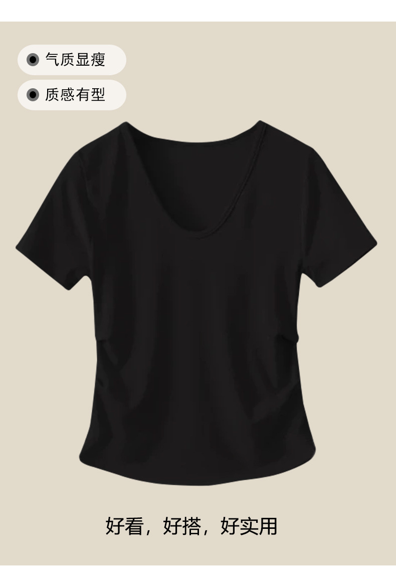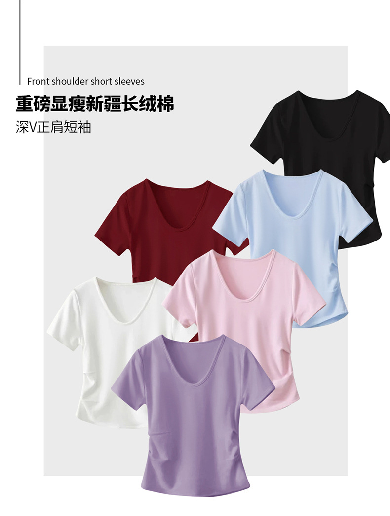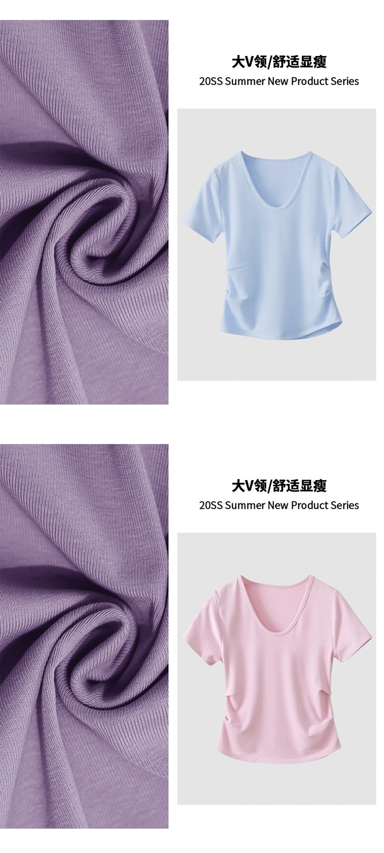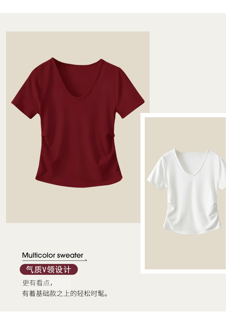 「自」全新升级【铂金会员109/天猫139/差价30】(95224)洛诗琳V领收腰T2025新款设计感褶皱收腰不规则下摆显瘦上衣
