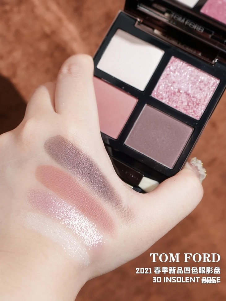 👑TF四色眼影#30(INSOLENT ROSE) 👍TF超好看的新色#30 孤傲玫瑰盘🌹 甜雅优美的烟粉玫瑰🌸,偏冷调,既高级又百搭 ✨其中一格亮片为粉色系,是那种让人抵挡不了的碎钻感 💕日常不浮夸,淡淡的微醺,微微闪的光泽感💫,其余的三格哑光也很受欢迎。 😄可日常可魅惑,春日必备,非常实用。 💥粉质也是一如既往的高水准,质感爆裂,细腻又不飞粉,干湿两用,使用感满分💯