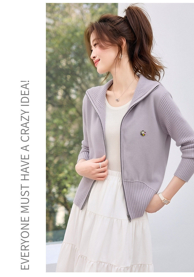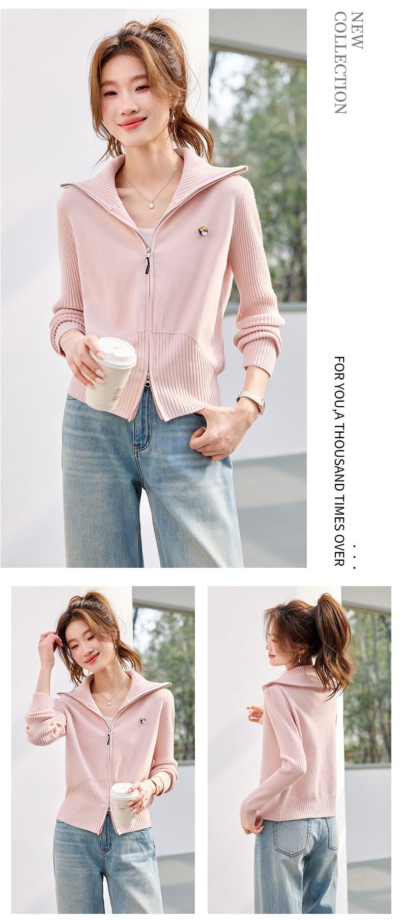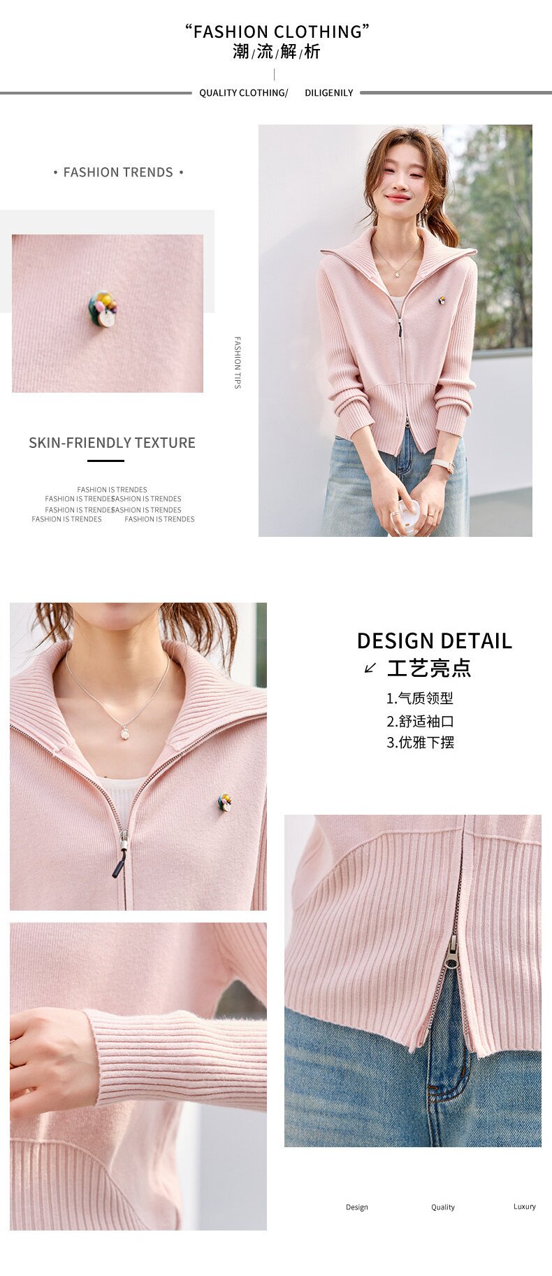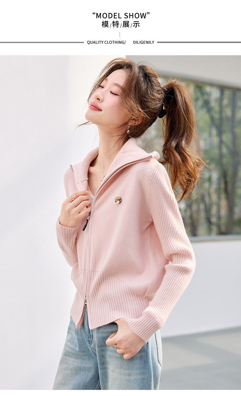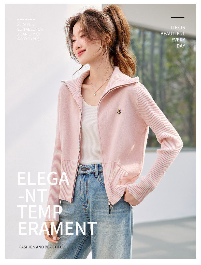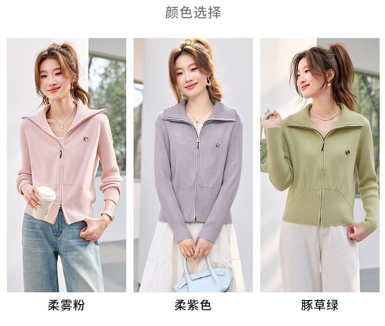 「自」全新升级【铂金会员183/天猫249/差价66】(13509)洛诗琳高级感拉链针织开衫2026春季翻领小个子百搭短外套