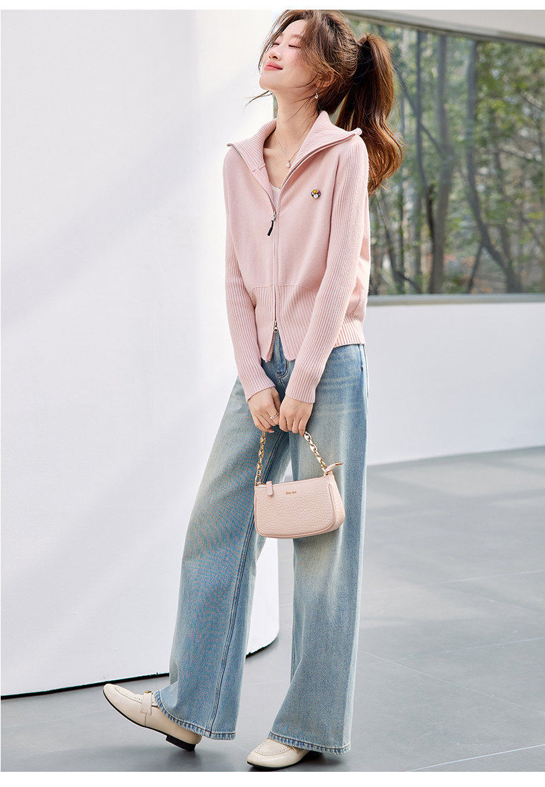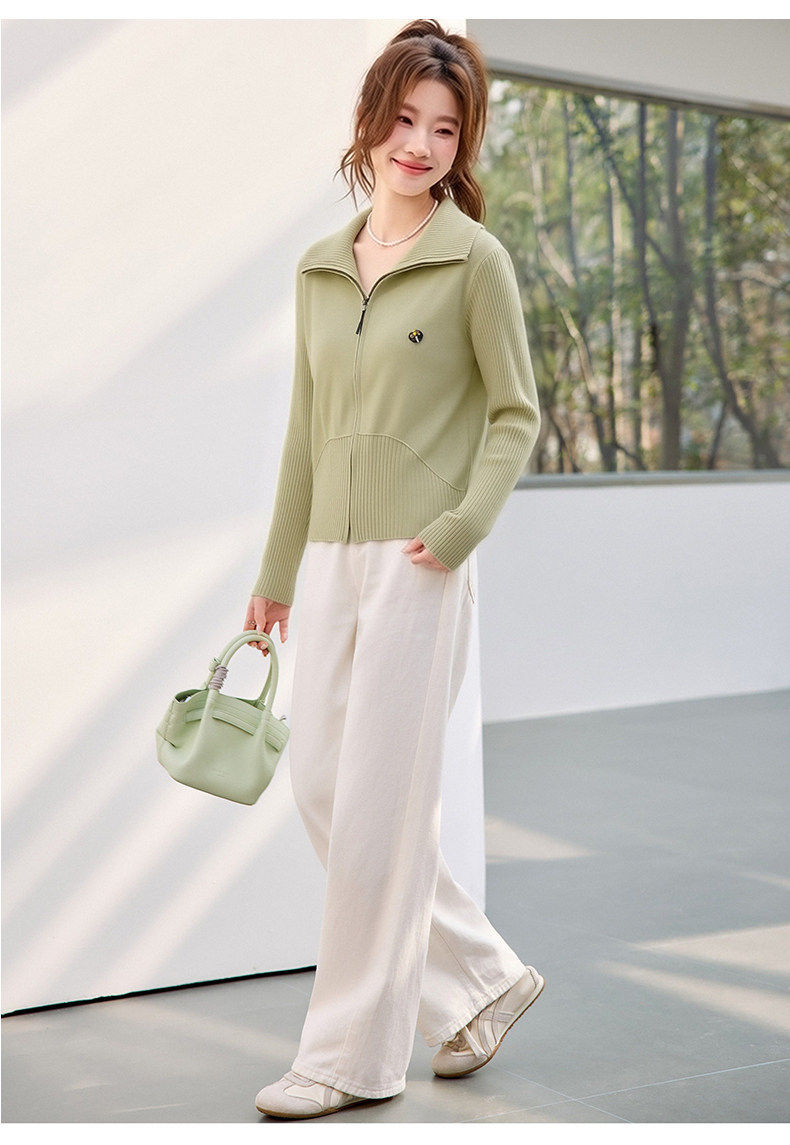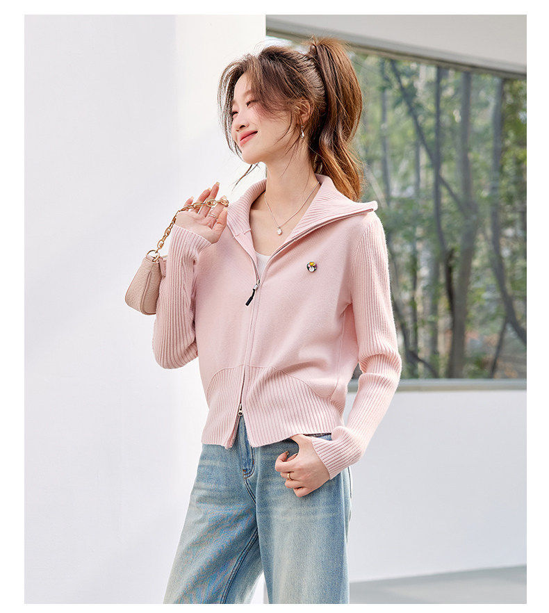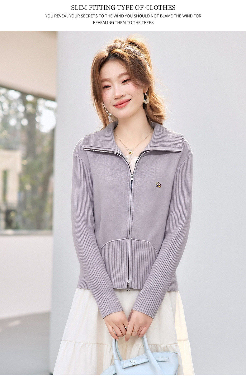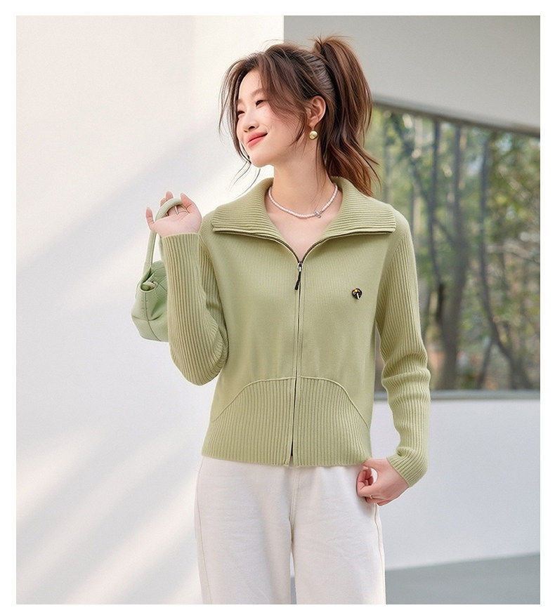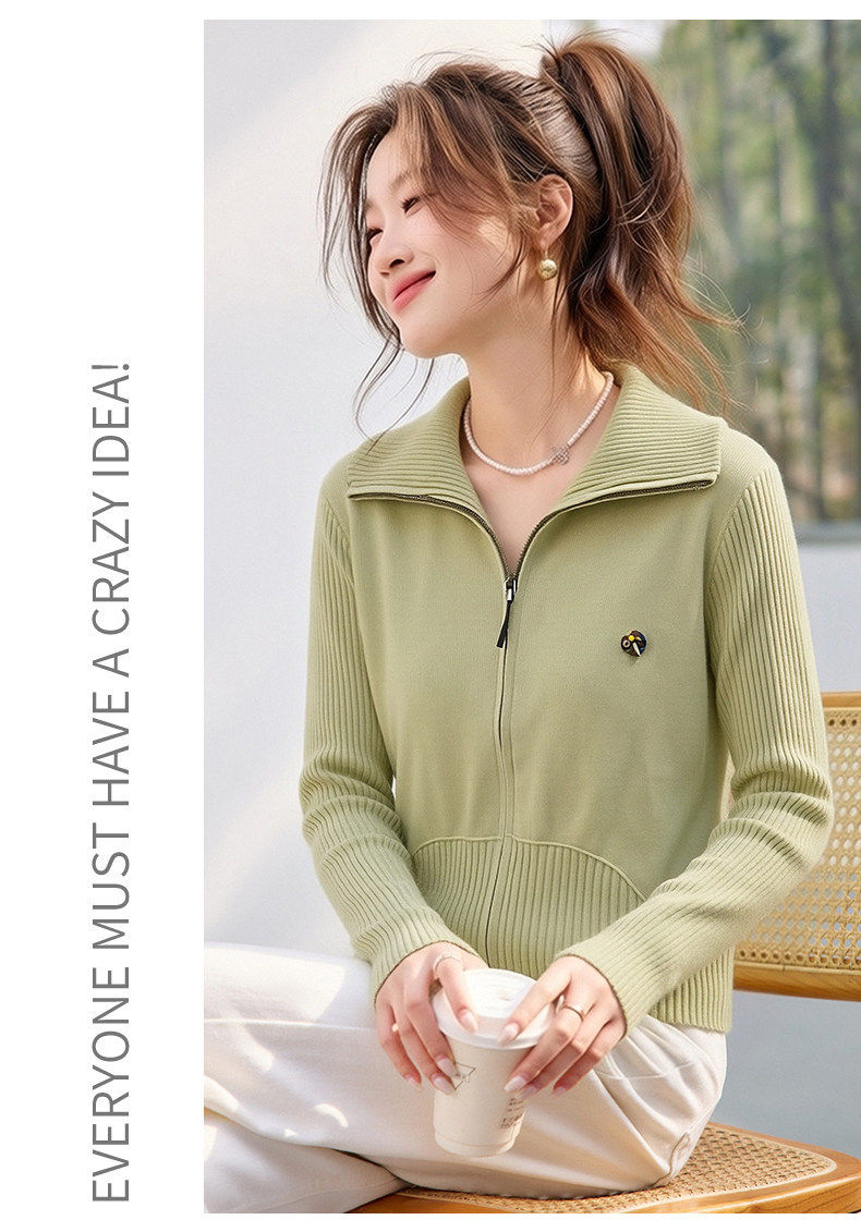 「自」全新升级【铂金会员183/天猫249/差价66】(13509)洛诗琳高级感拉链针织开衫2026春季翻领小个子百搭短外套