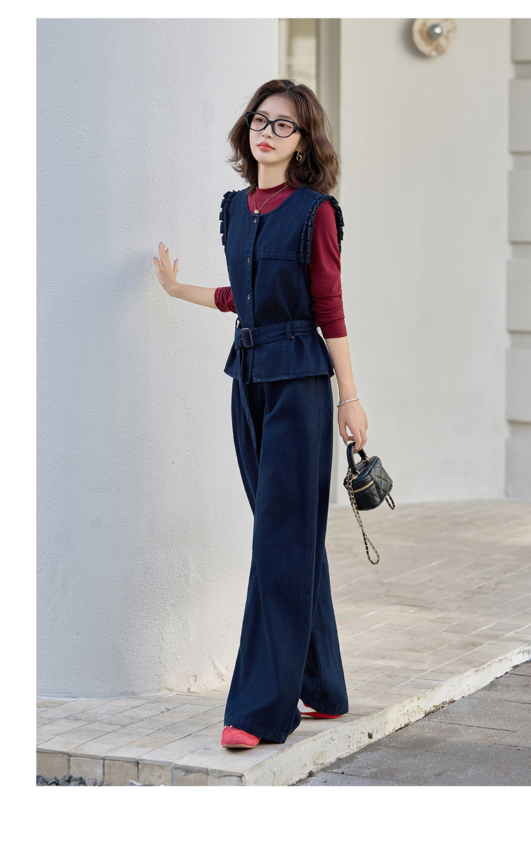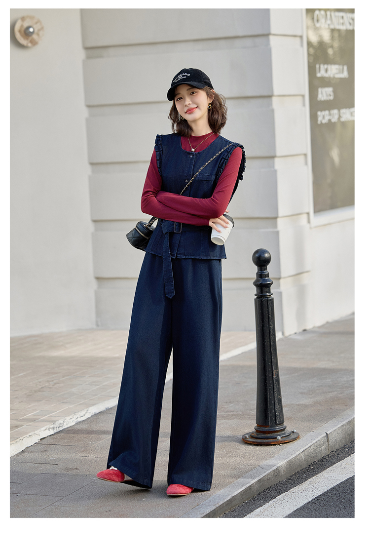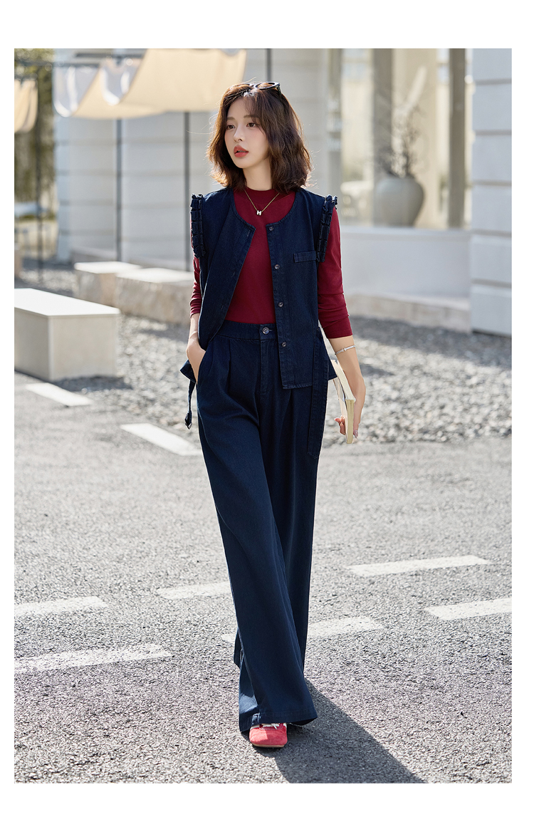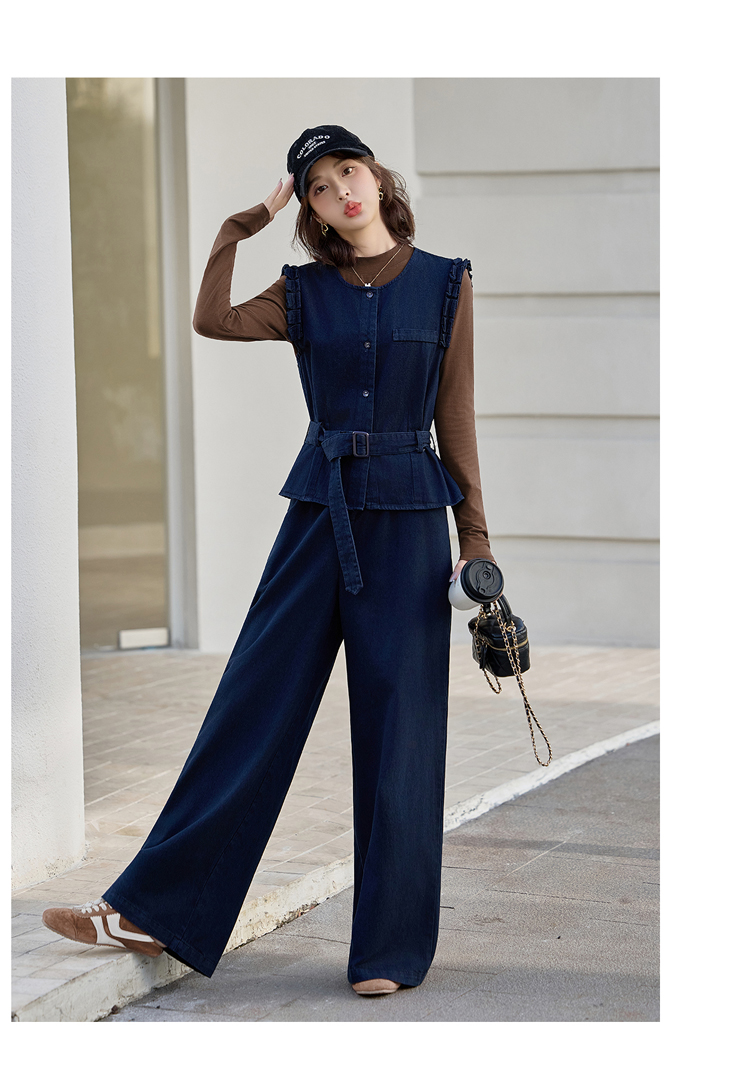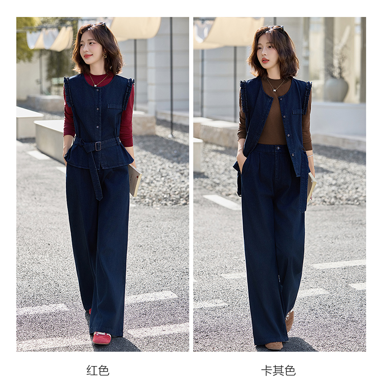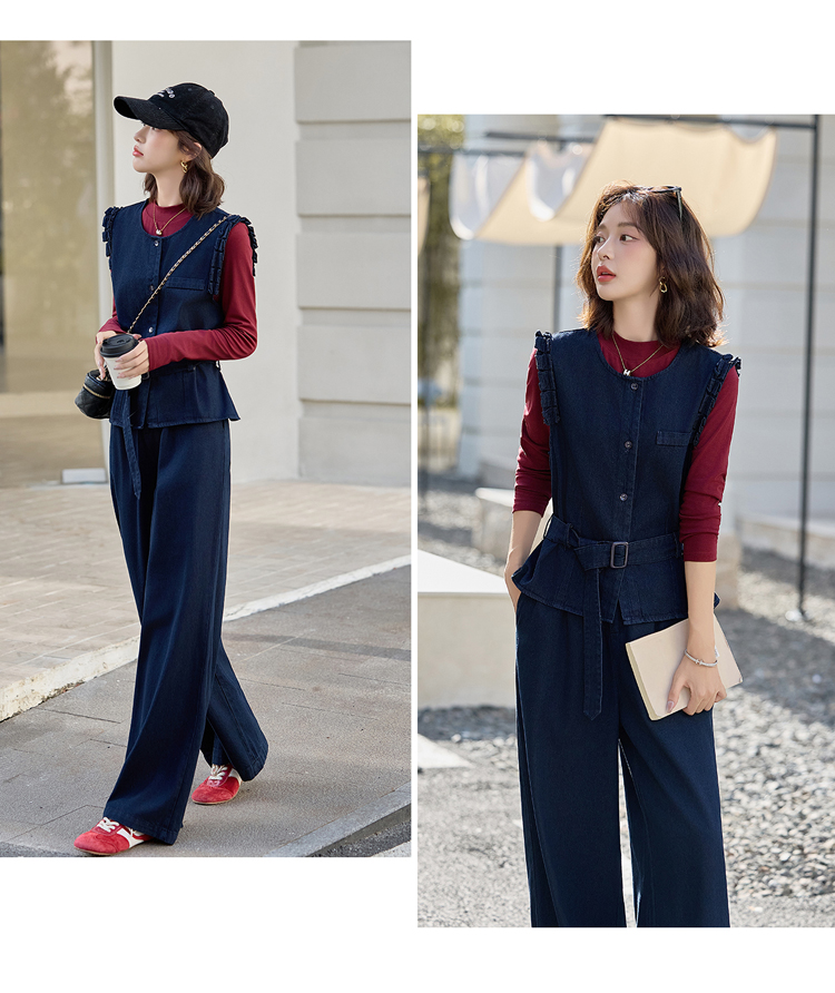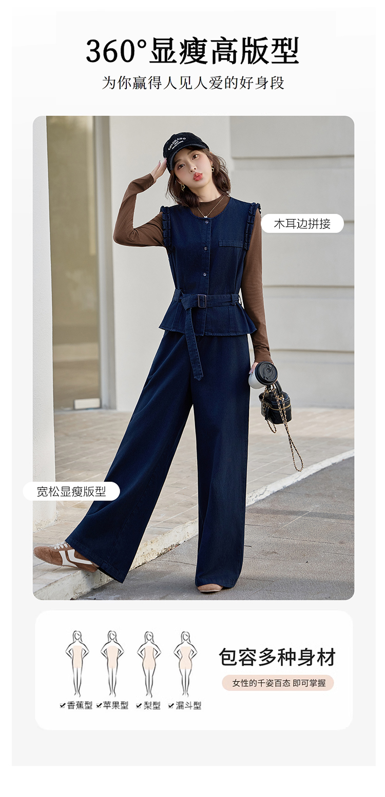 韩系时尚套装女2025秋季新款洋气上衣轻熟风牛仔马甲阔腿裤三件套YLFS9038