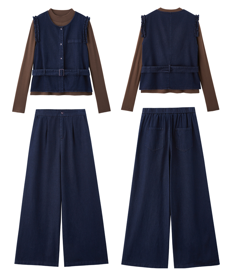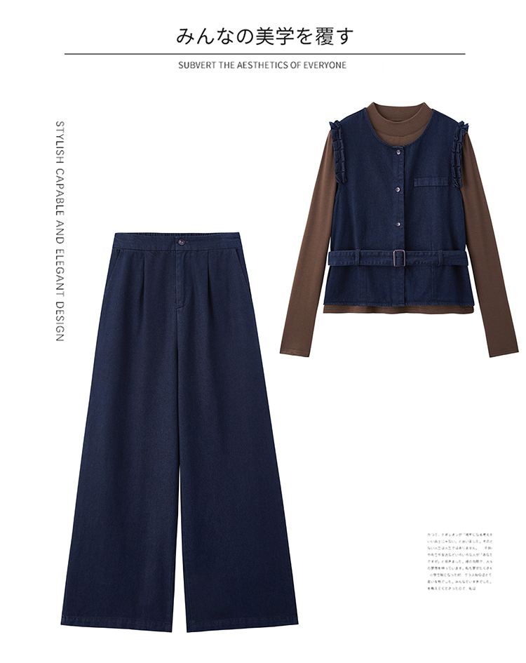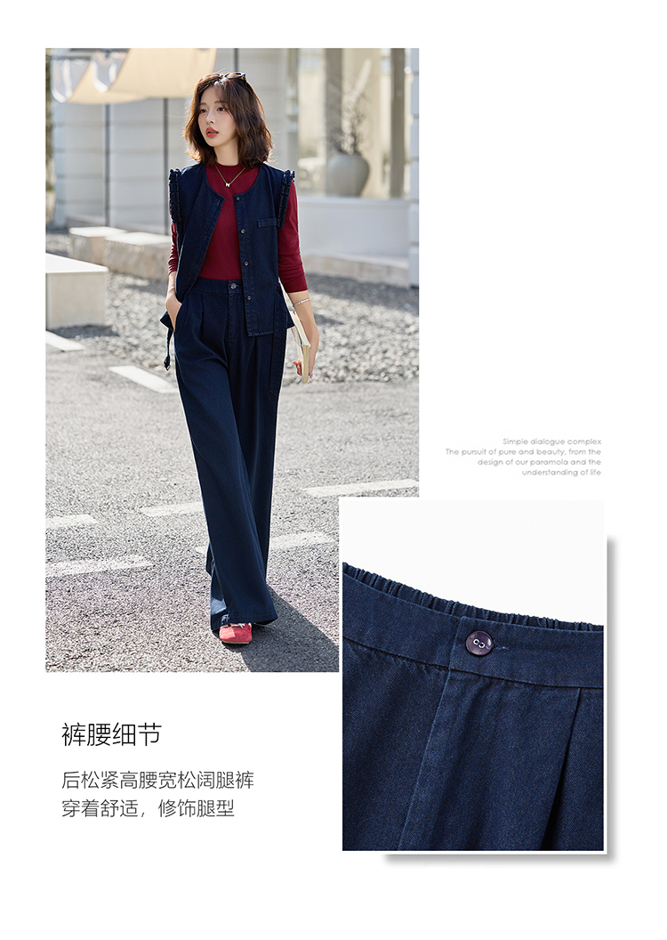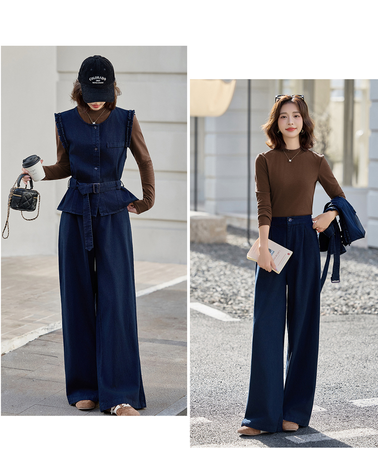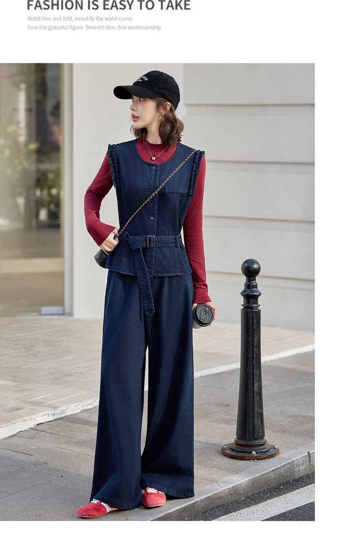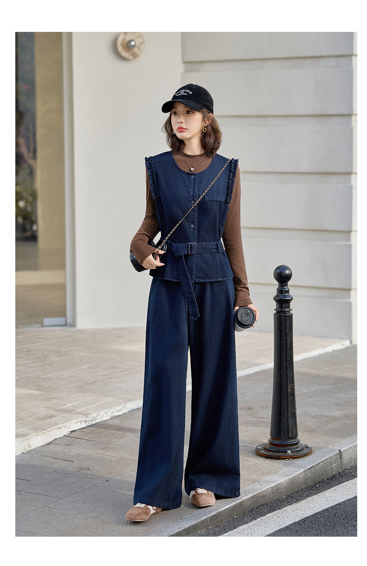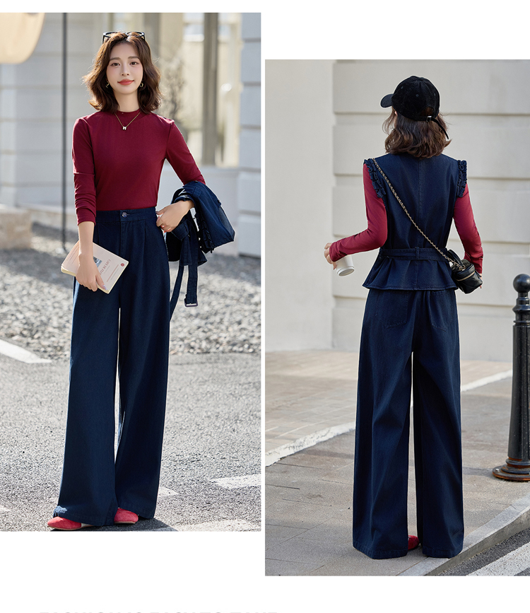韩系时尚套装女2025秋季新款洋气上衣轻熟风牛仔马甲阔腿裤三件套YLFS9038