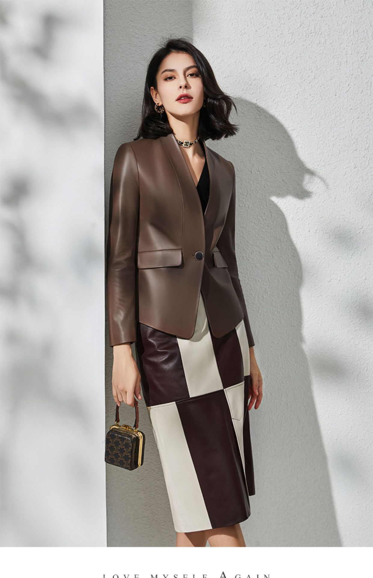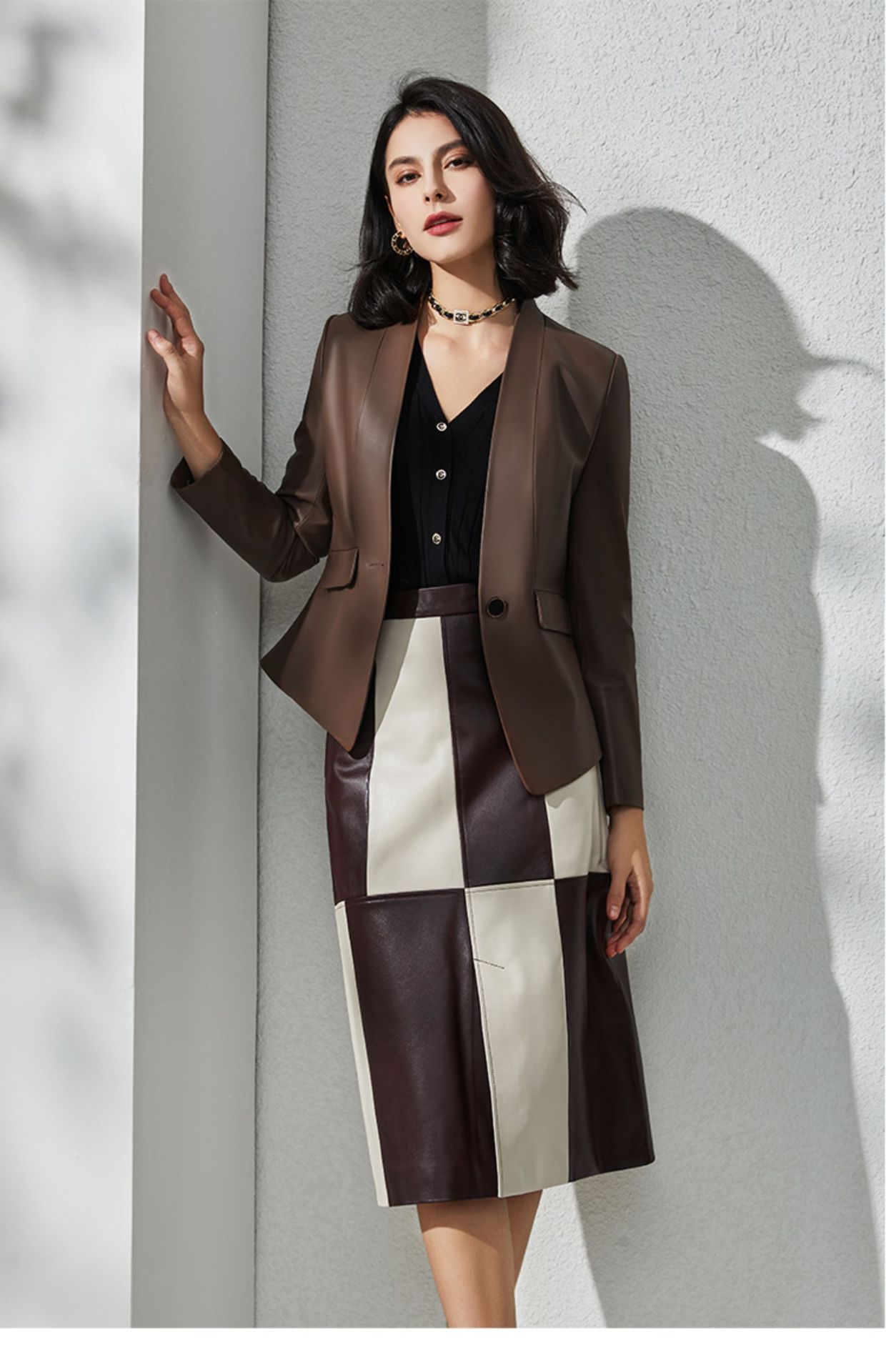 丁摩 绵羊皮真皮皮衣V领修身一粒扣真皮外套SG22026