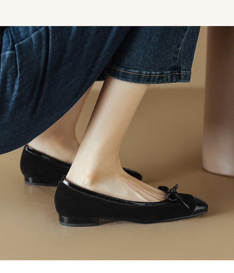 丁摩 羊皮大码女鞋真皮新款春季方头单鞋女平底鞋船鞋瓢鞋5ZF-4072