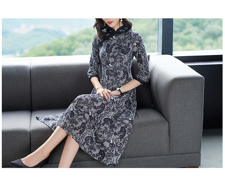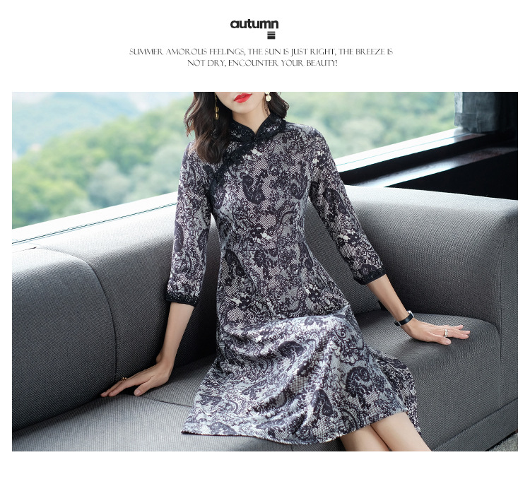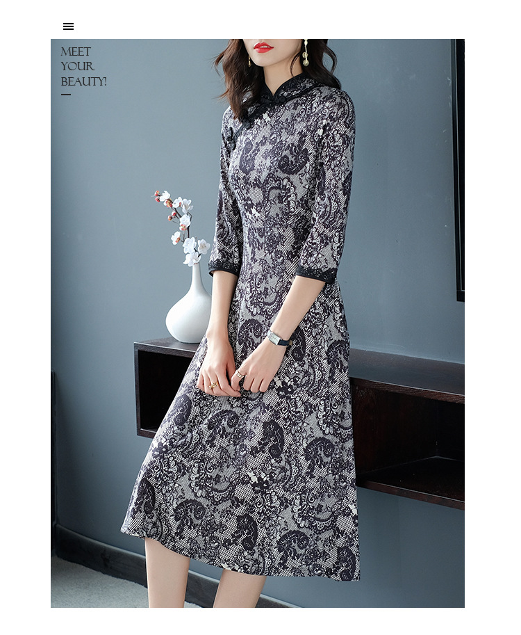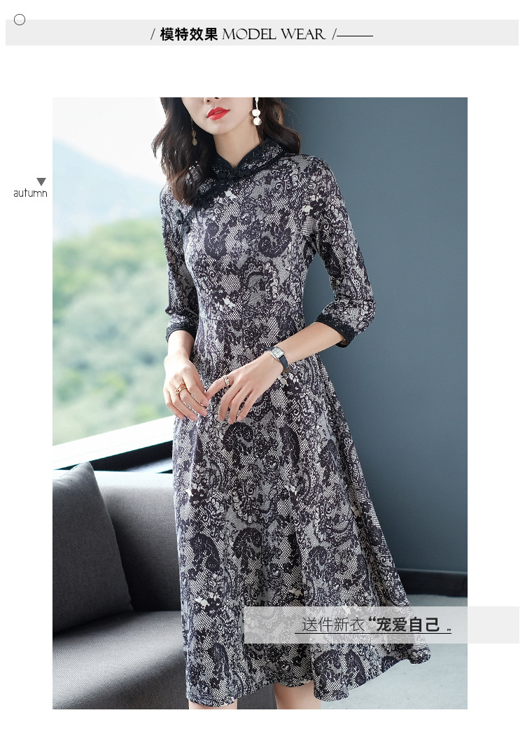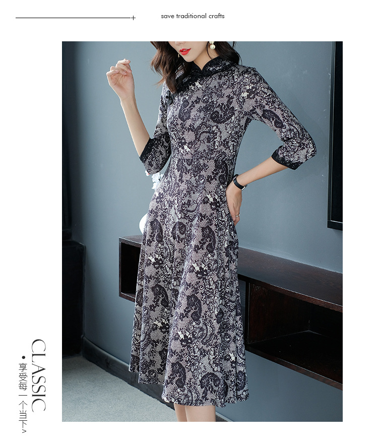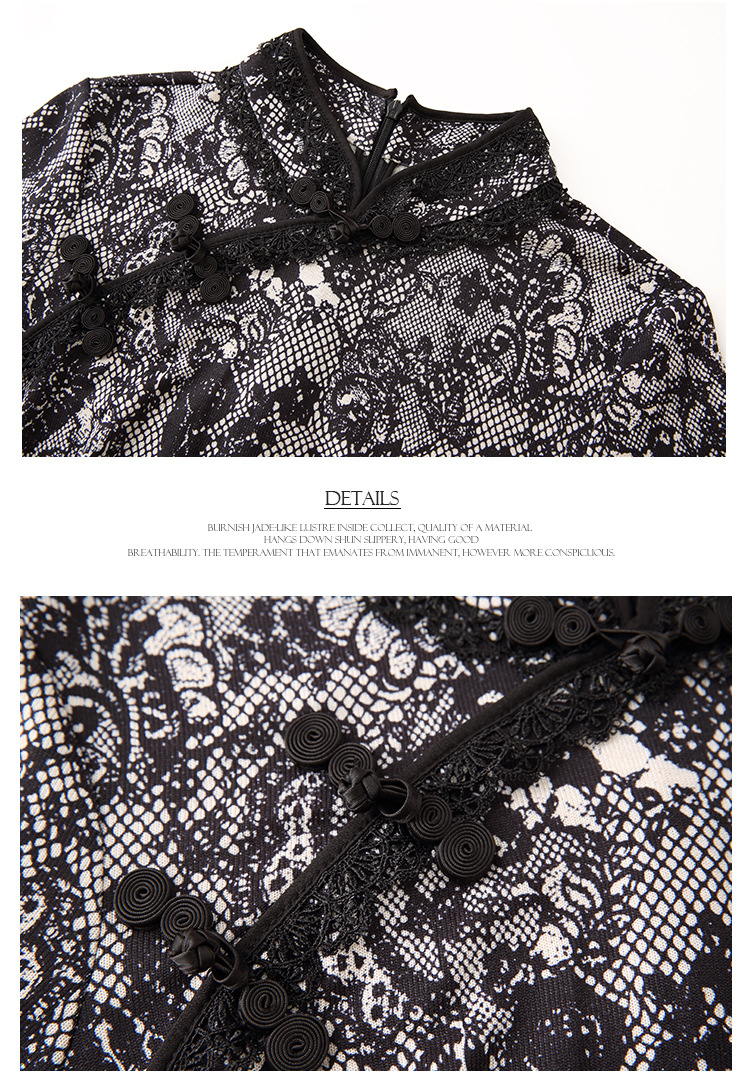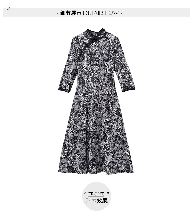 CS-19548手工3粒盘扣蕾丝边连衣裙