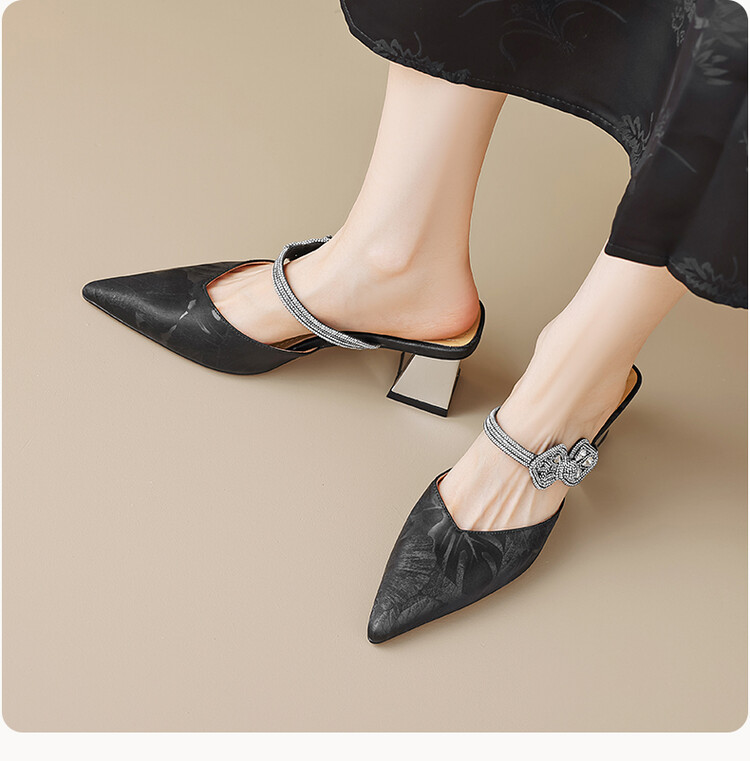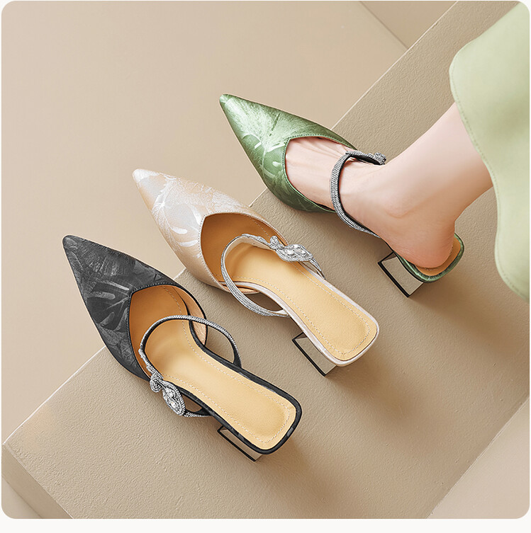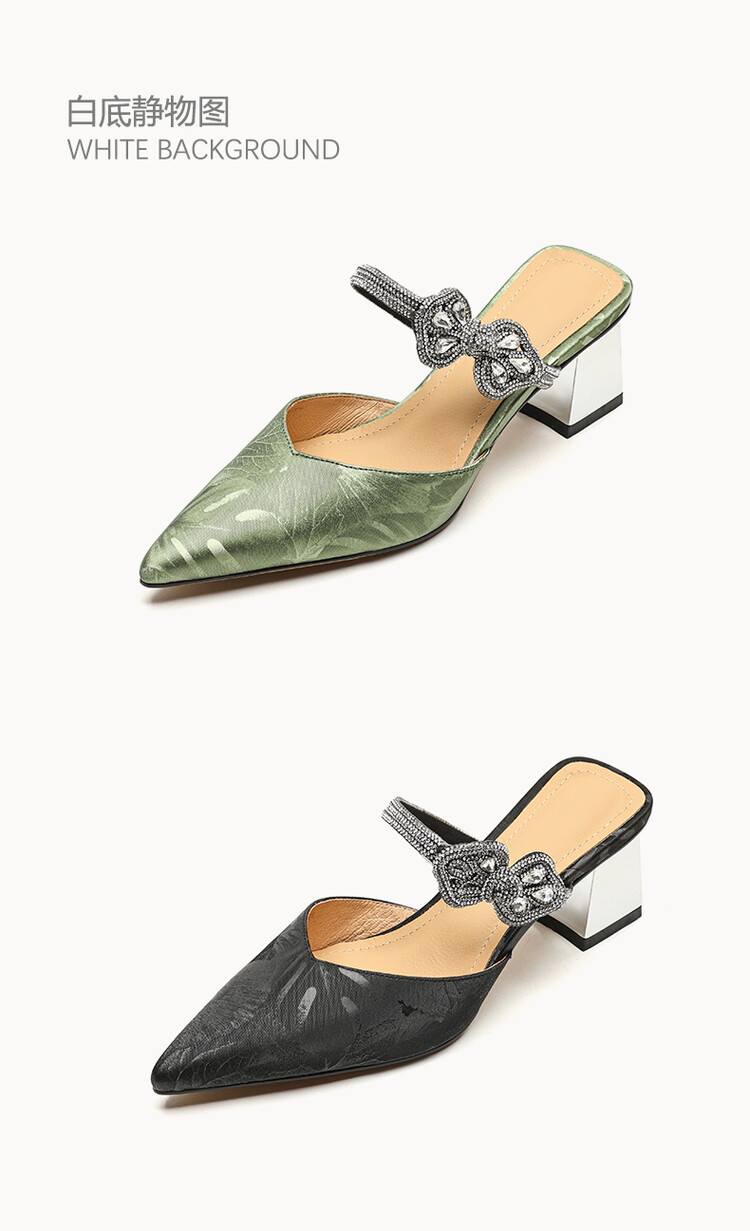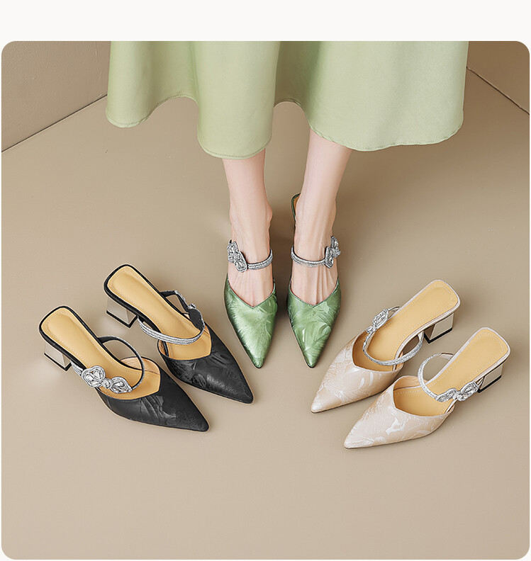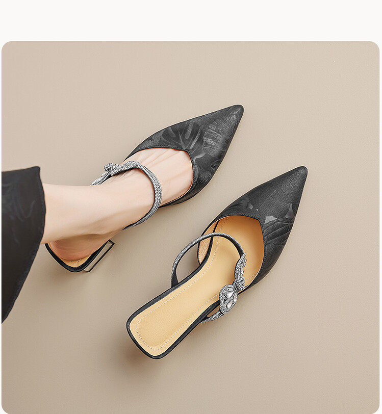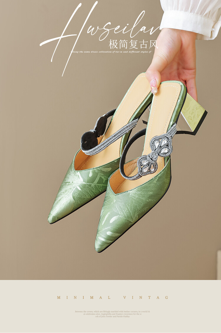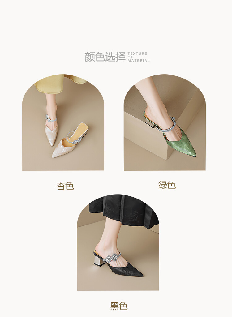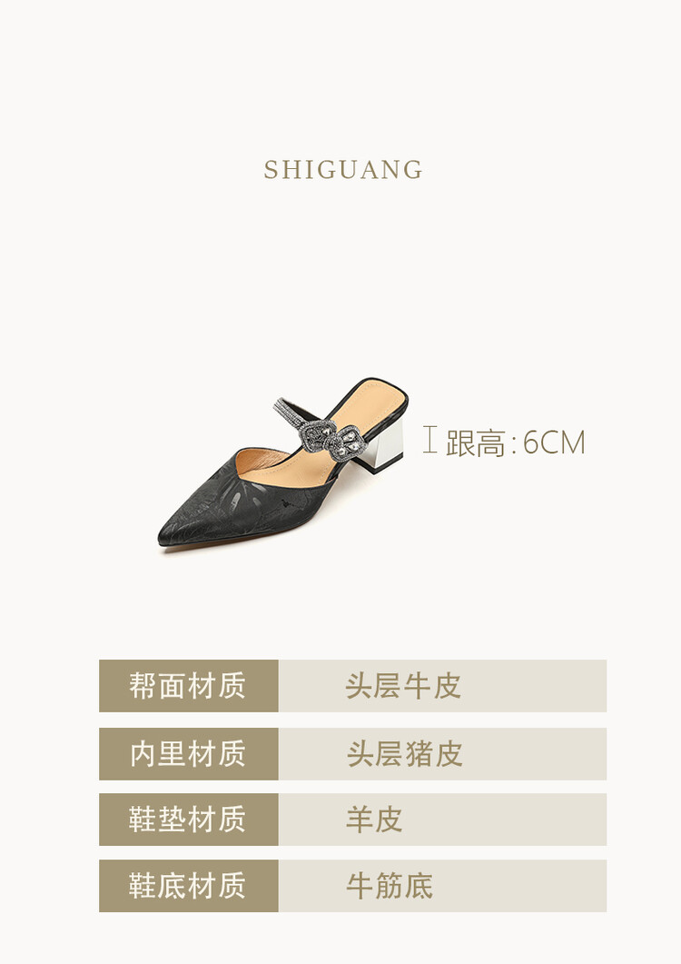 【预售5天】优雅淑女风一字带真皮包头半拖鞋女法式外穿粗高跟鞋LGYZNX&388-3