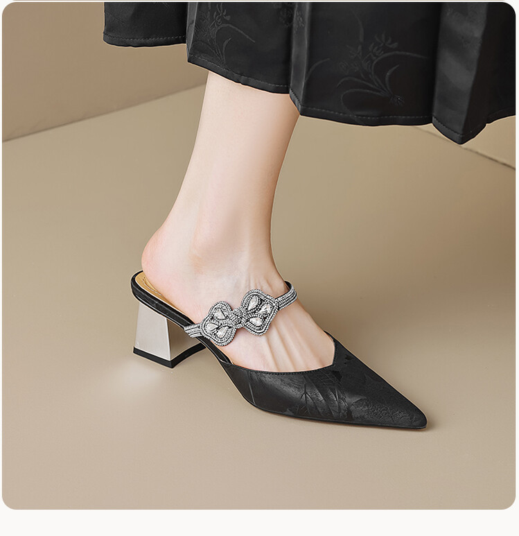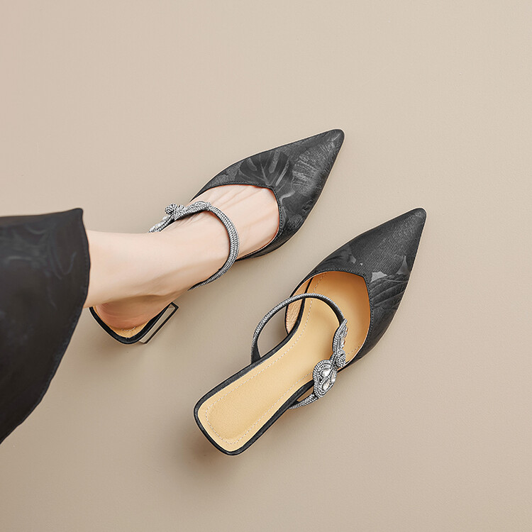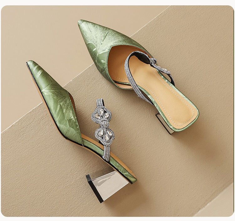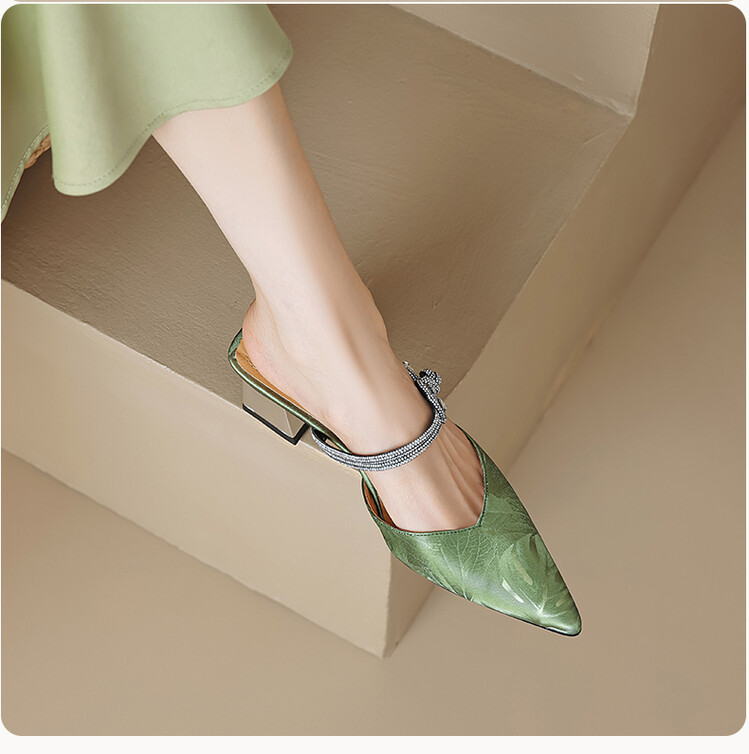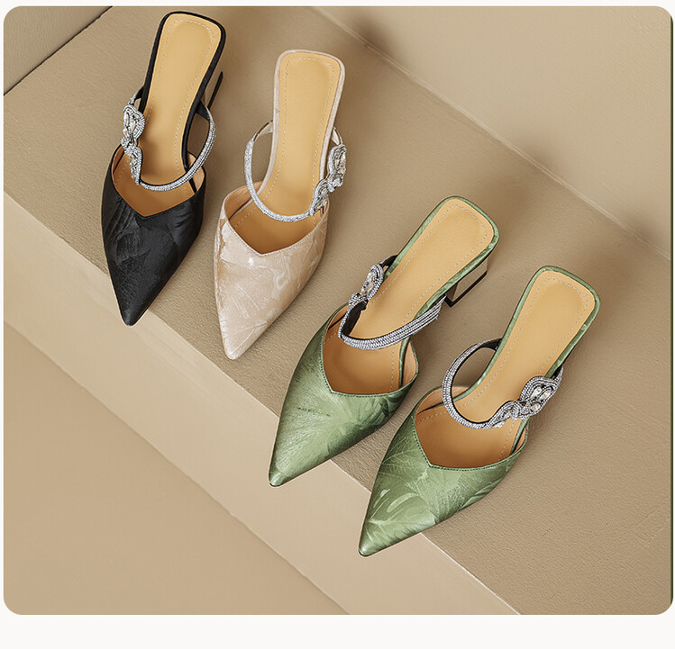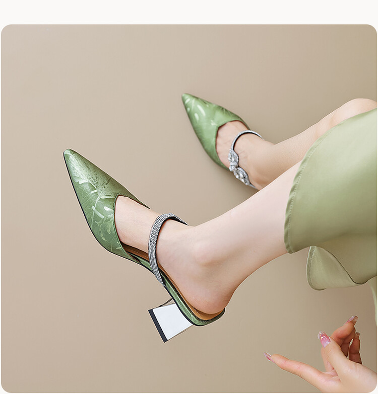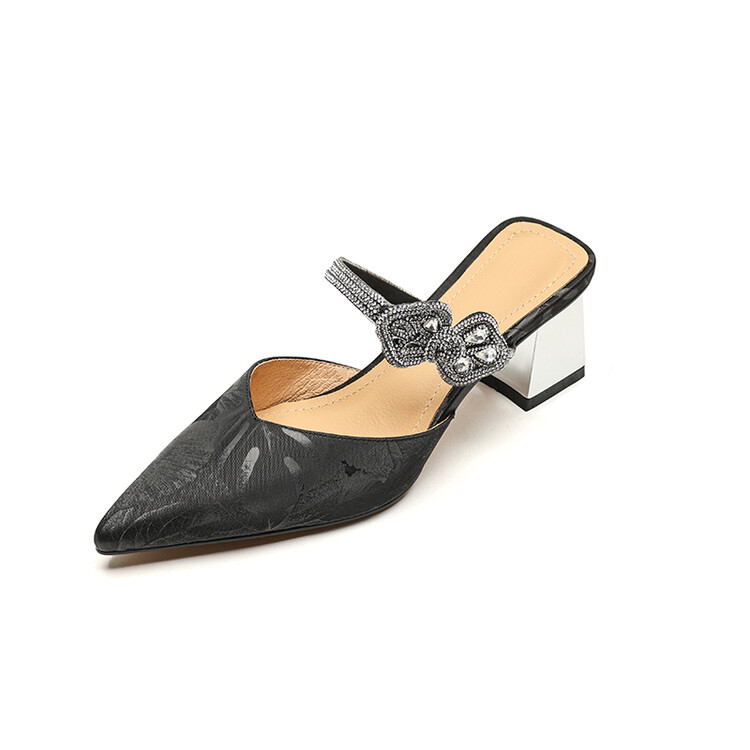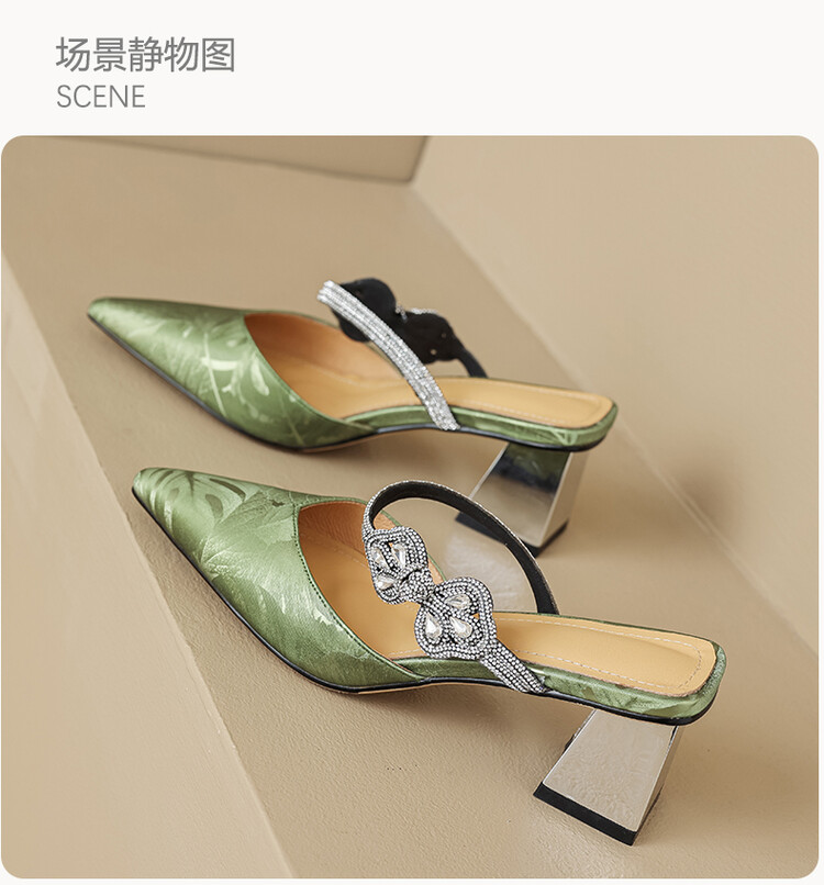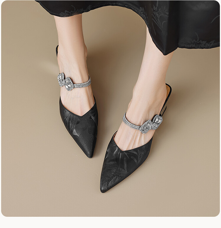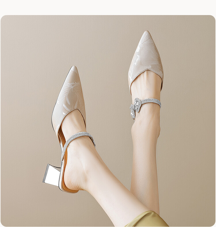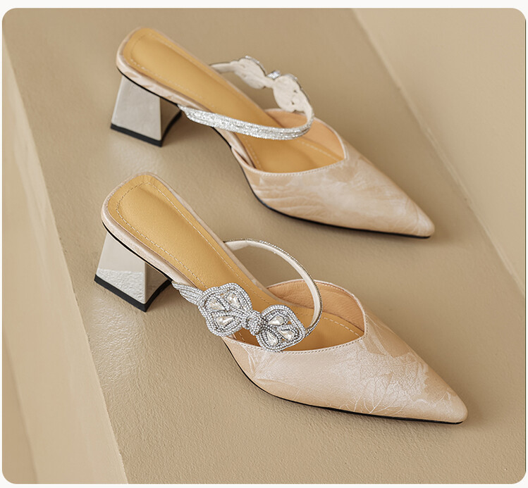 【预售5天】优雅淑女风一字带真皮包头半拖鞋女法式外穿粗高跟鞋LGYZNX&388-3
