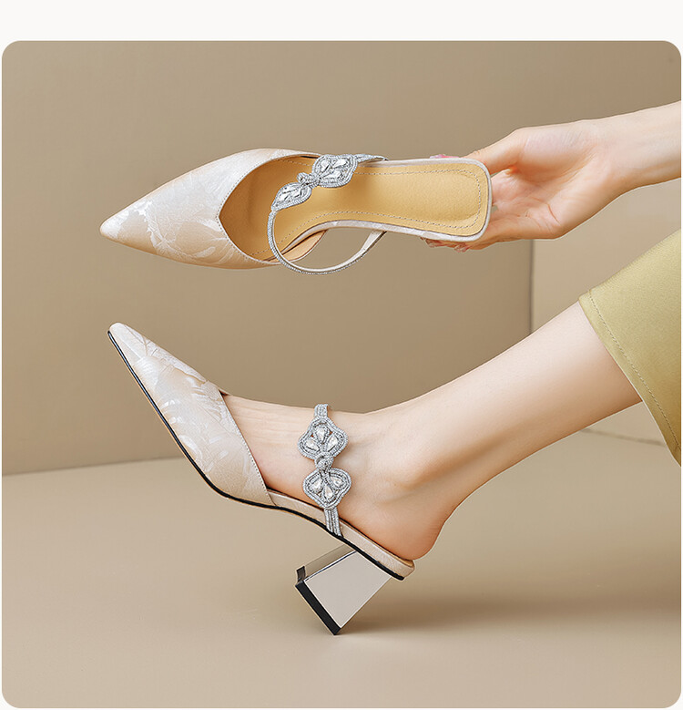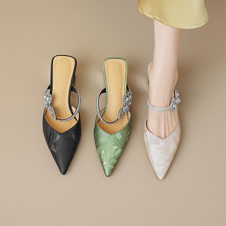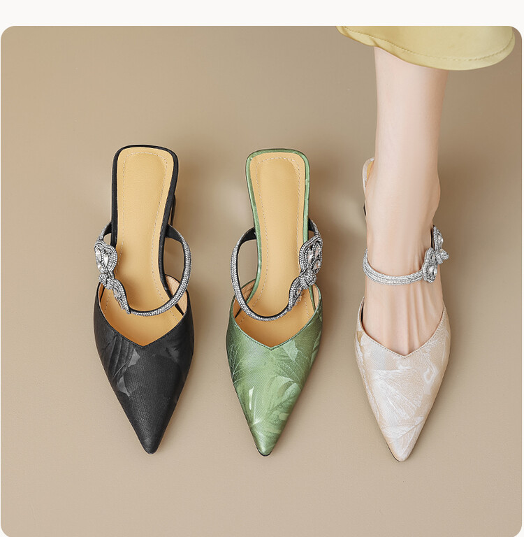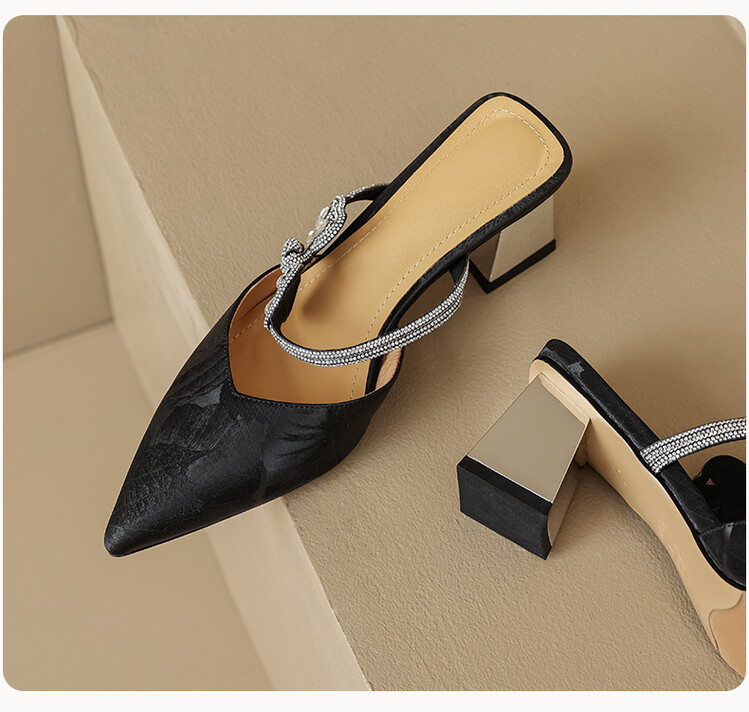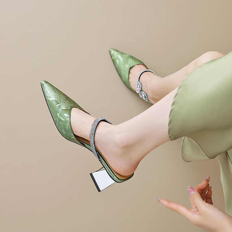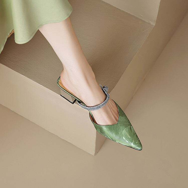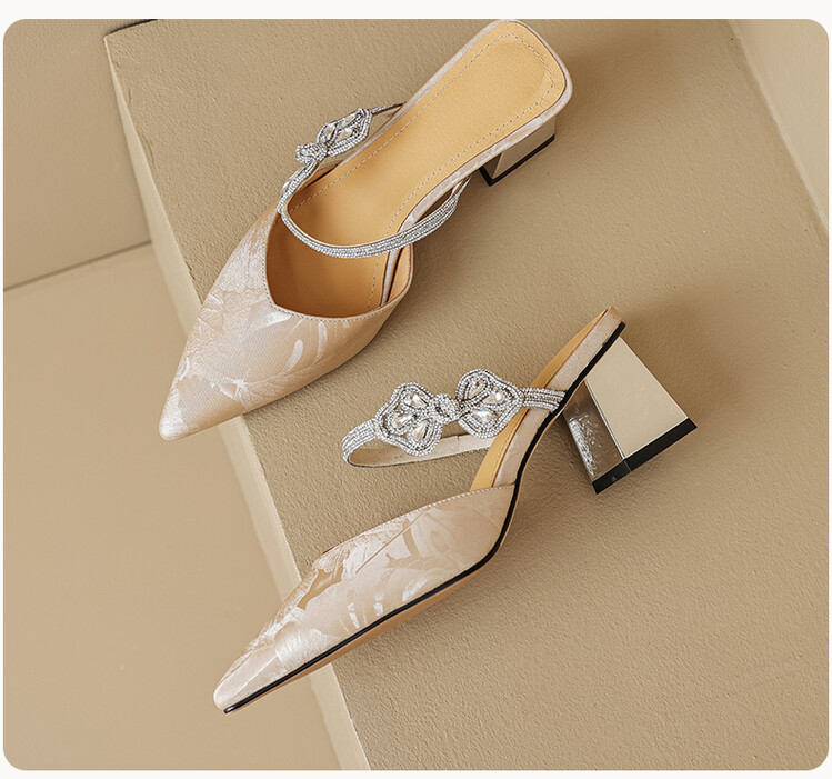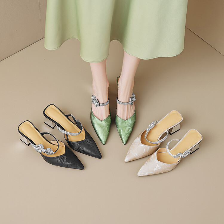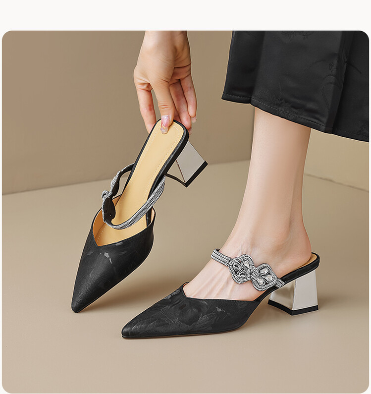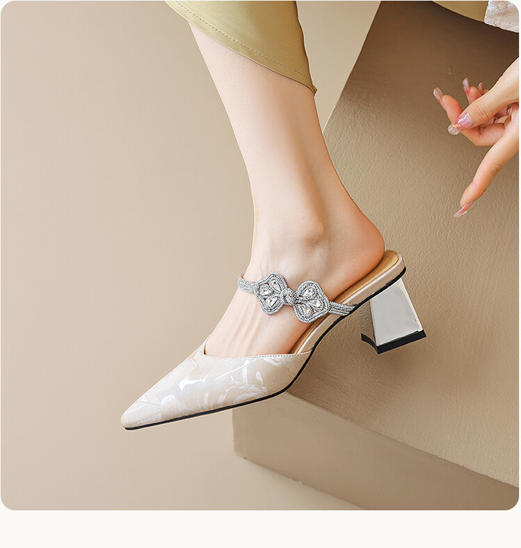 【预售5天】优雅淑女风一字带真皮包头半拖鞋女法式外穿粗高跟鞋LGYZNX&388-3