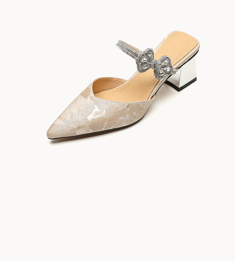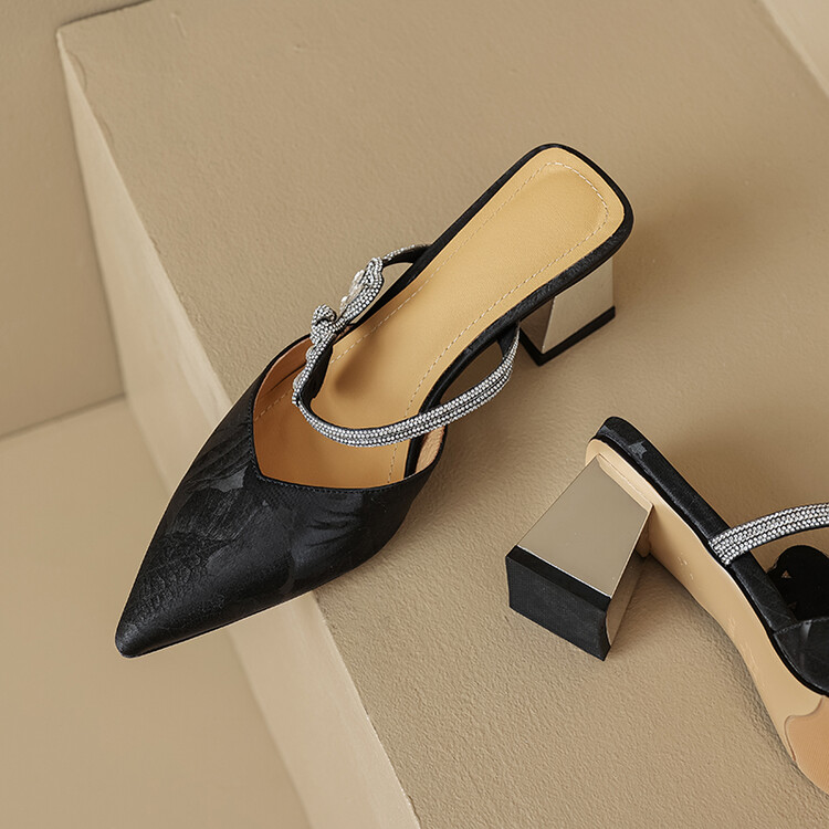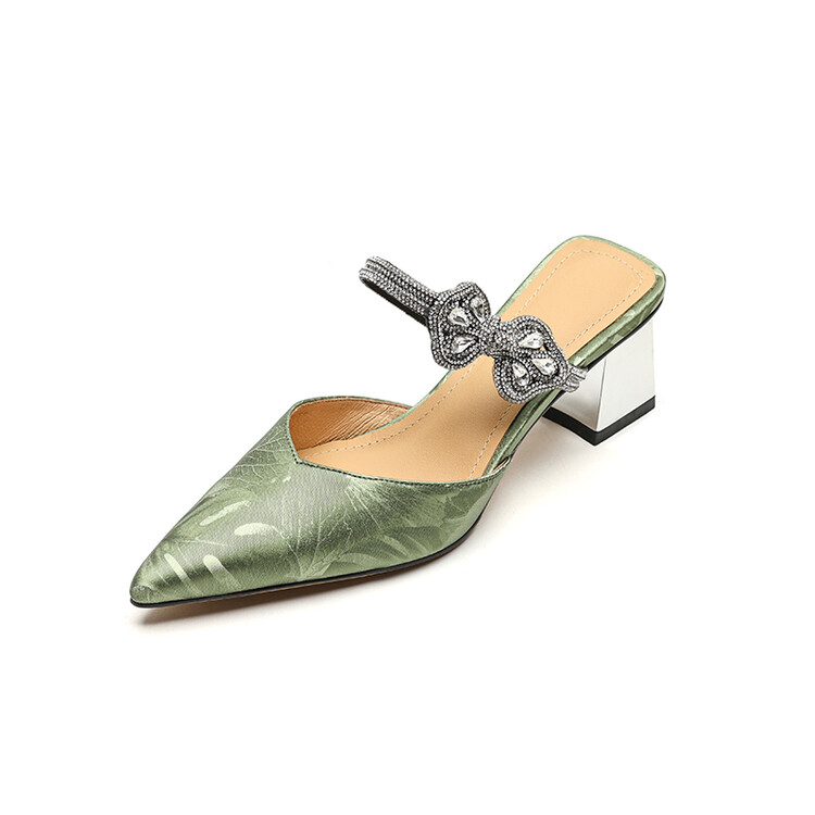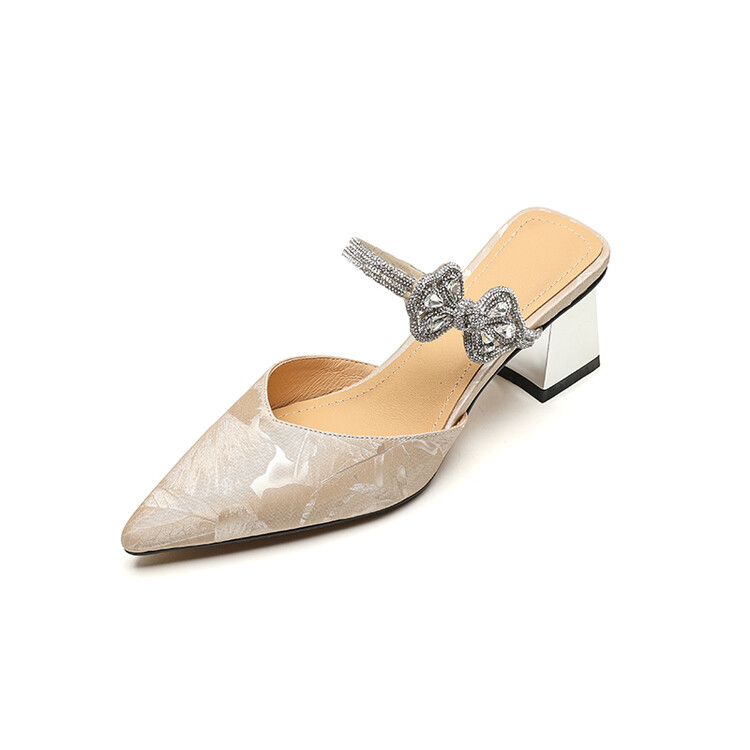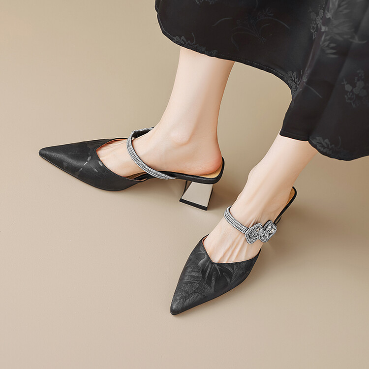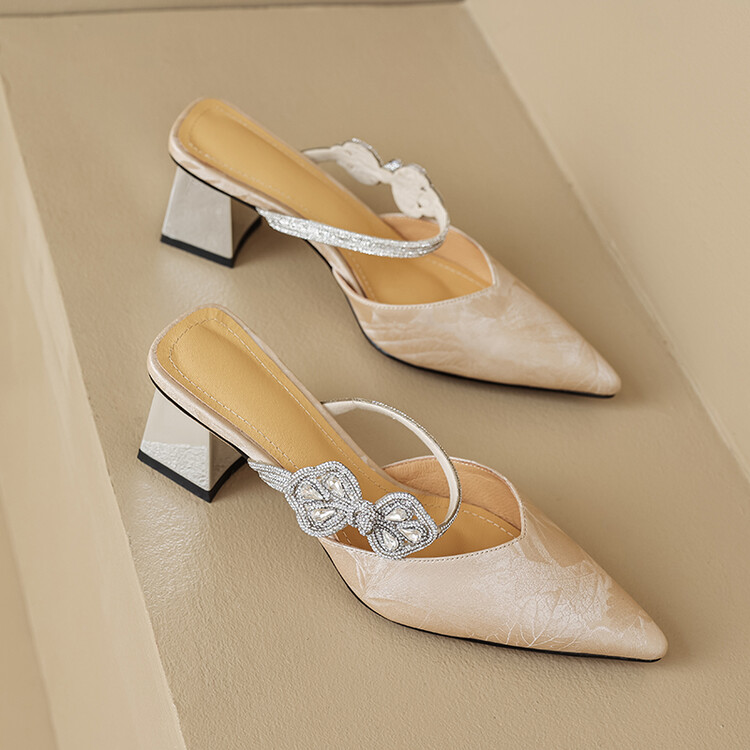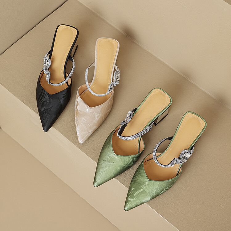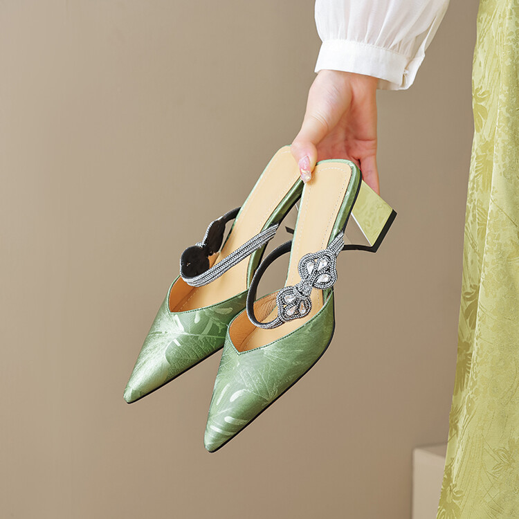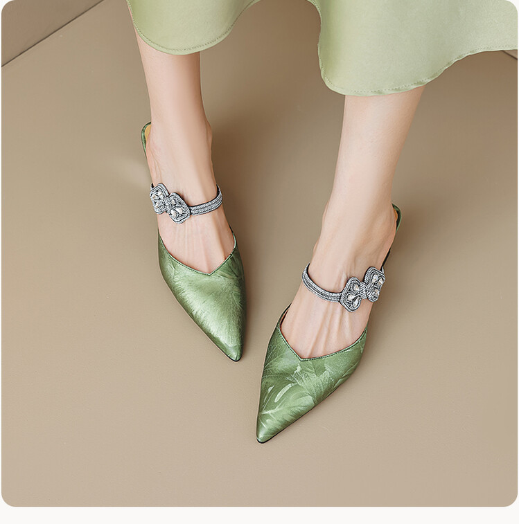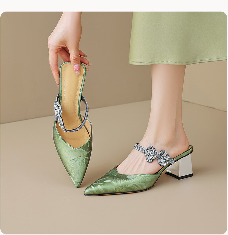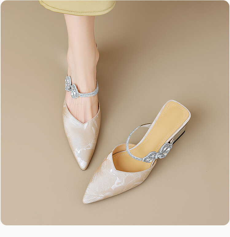 【预售5天】优雅淑女风一字带真皮包头半拖鞋女法式外穿粗高跟鞋LGYZNX&388-3