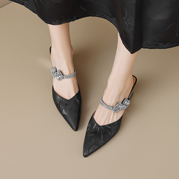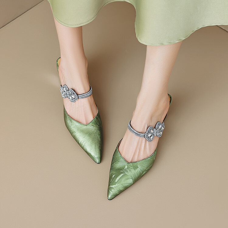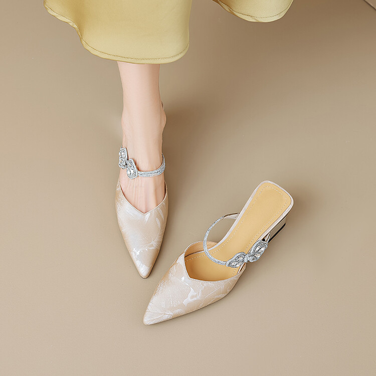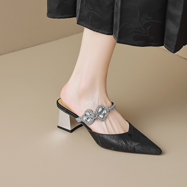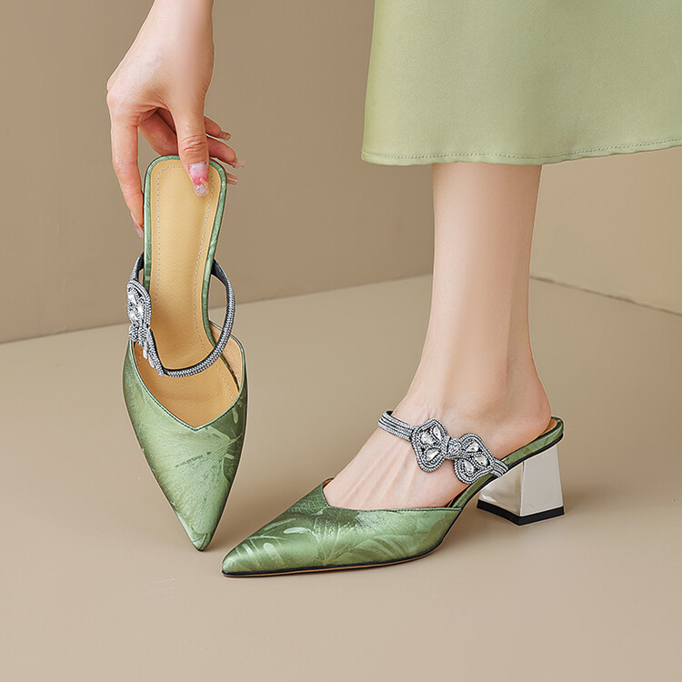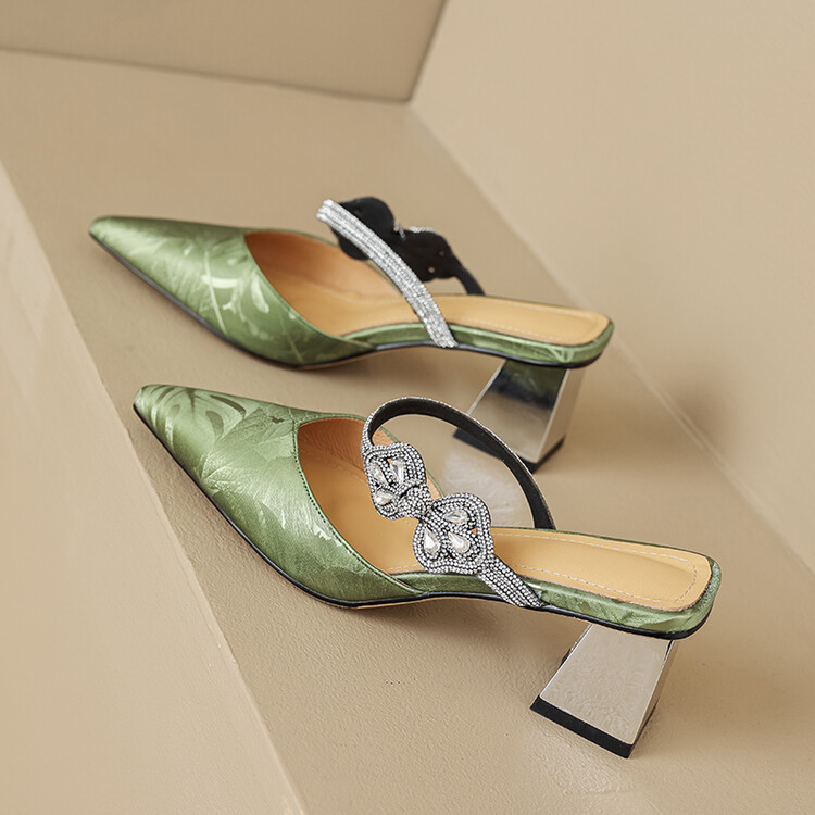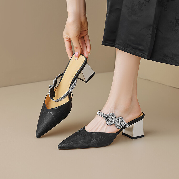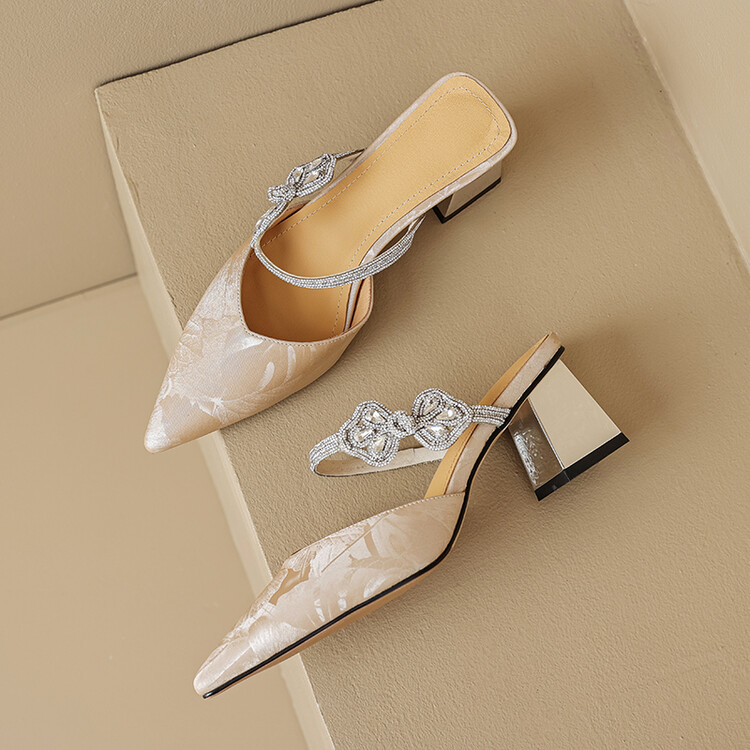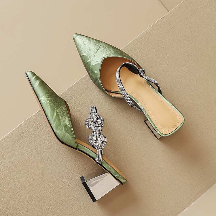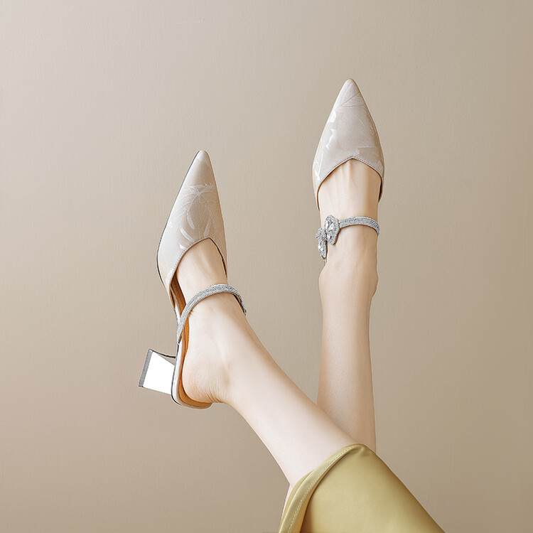 【预售5天】优雅淑女风一字带真皮包头半拖鞋女法式外穿粗高跟鞋LGYZNX&388-3