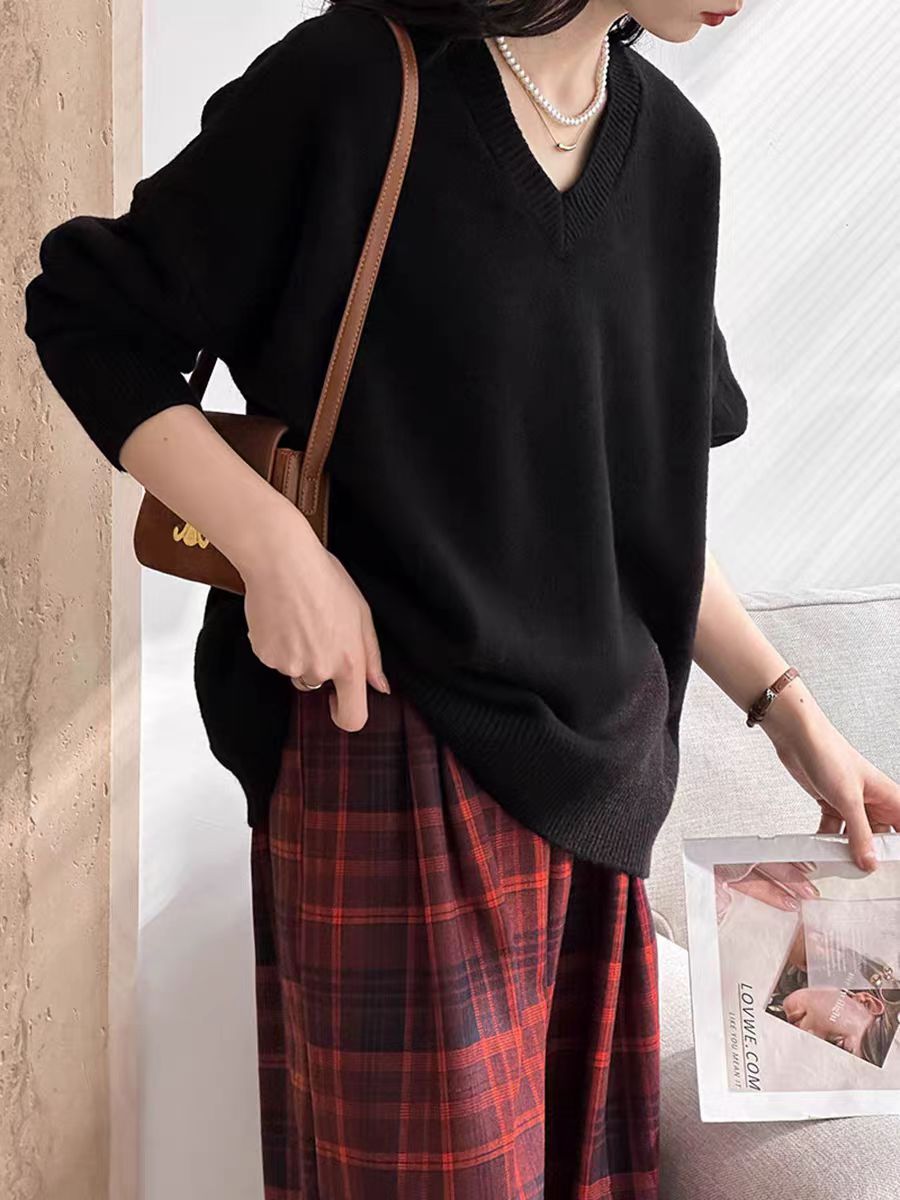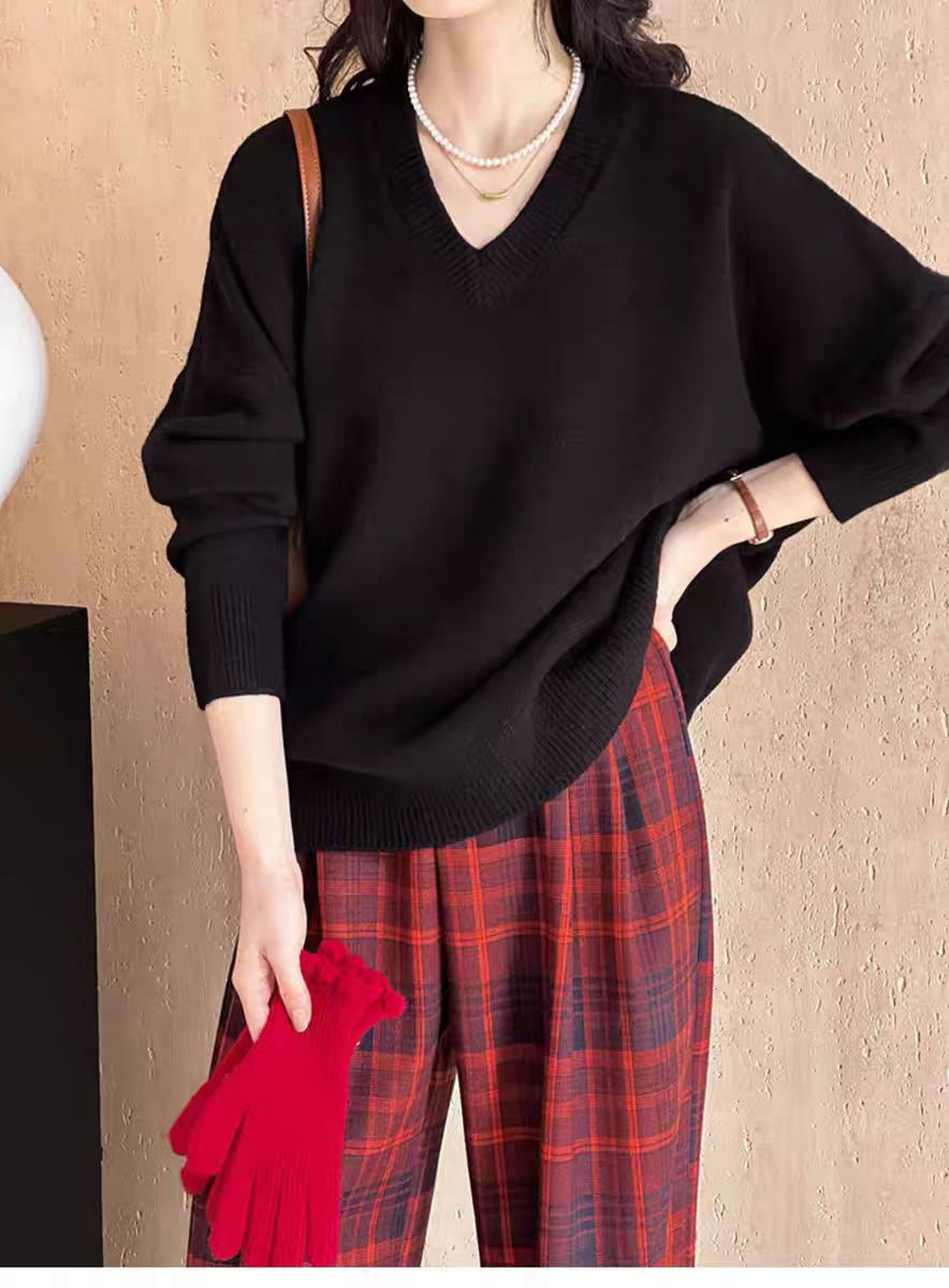 【孤品捡漏】G233黑色V领针织毛衫-喜出