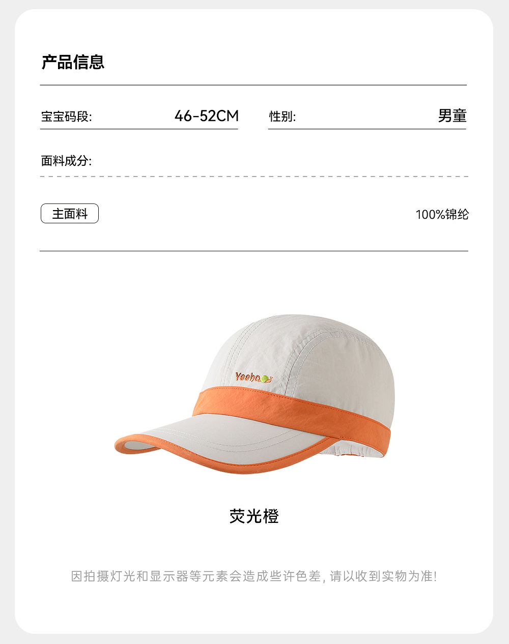 【商场同款】英氏儿童帽子夏季男童遮阳鸭舌帽2025新款防晒太阳帽