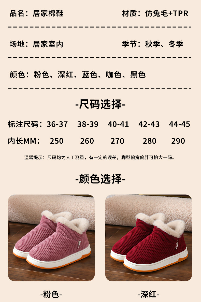 雀说 保暖包跟棉鞋女冬季加绒厚底防滑情侣棉鞋