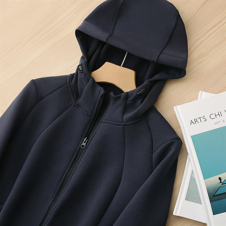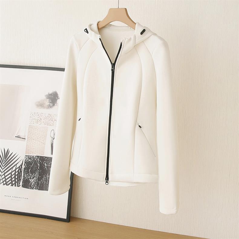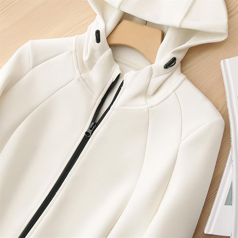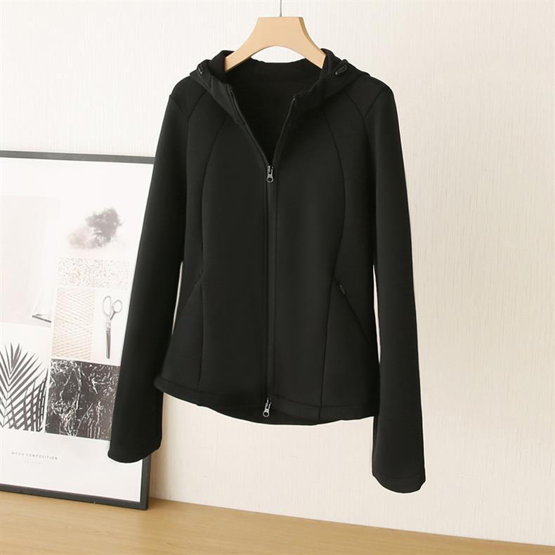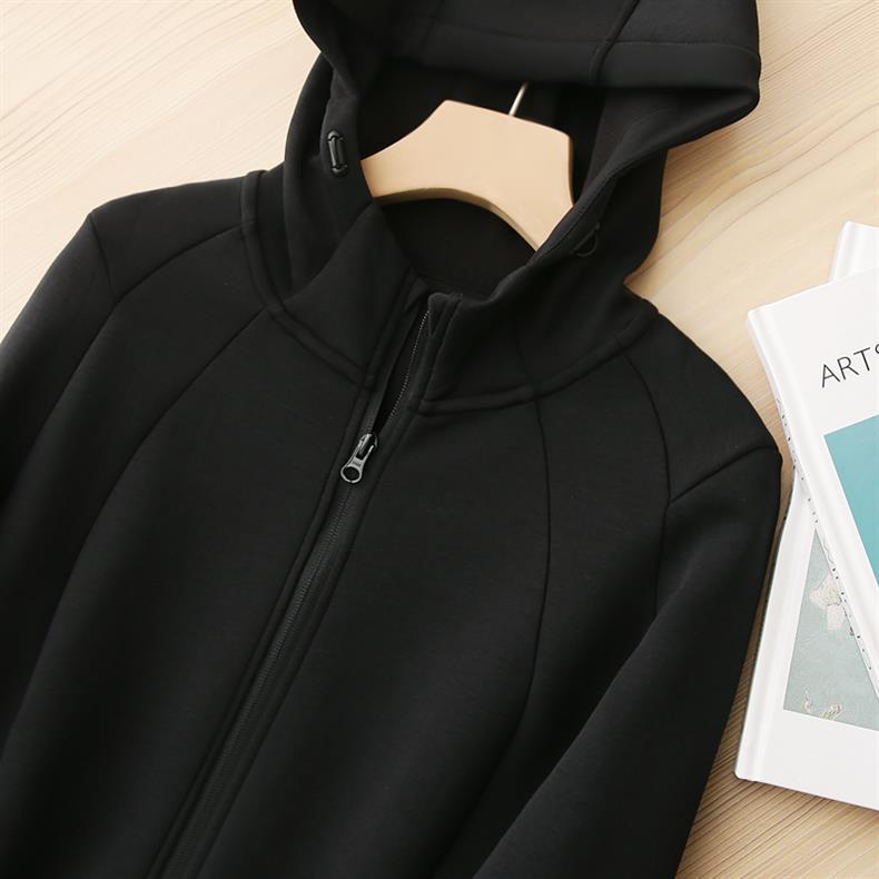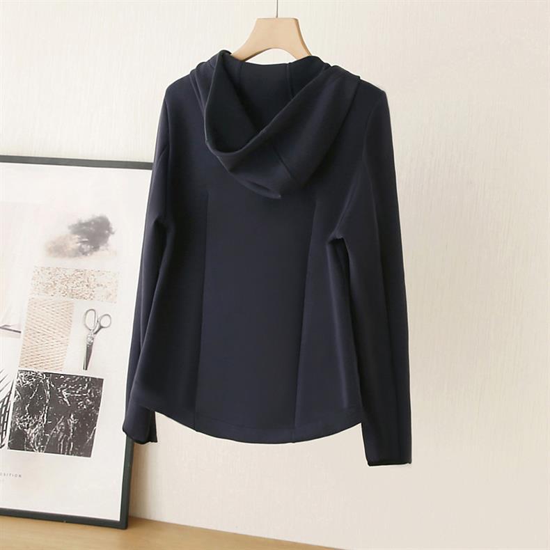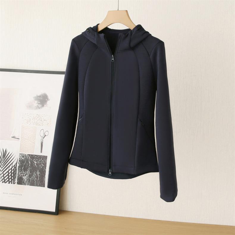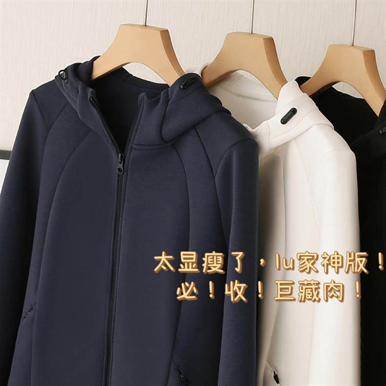 丁摩 LU家,巨显瘦!春秋修身双拉链开衫空气棉卫衣连帽外套女上衣5ZF-52027