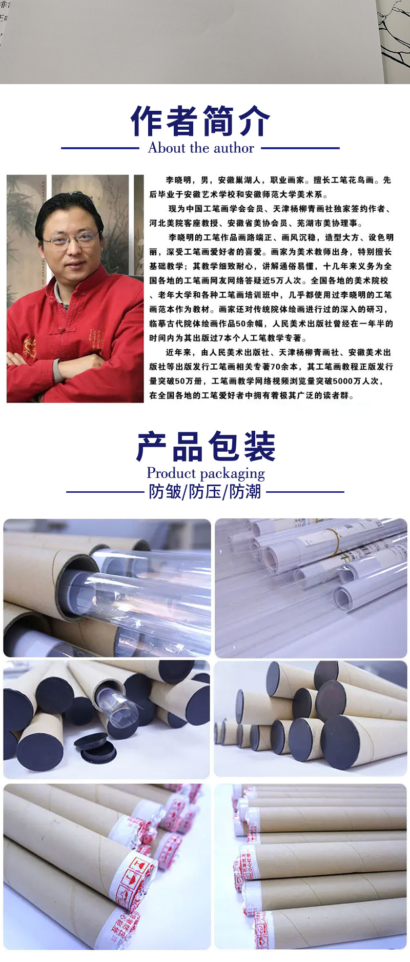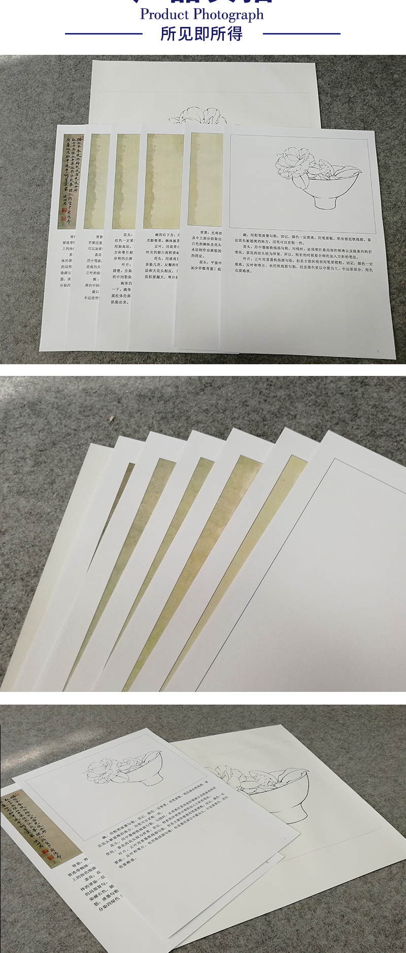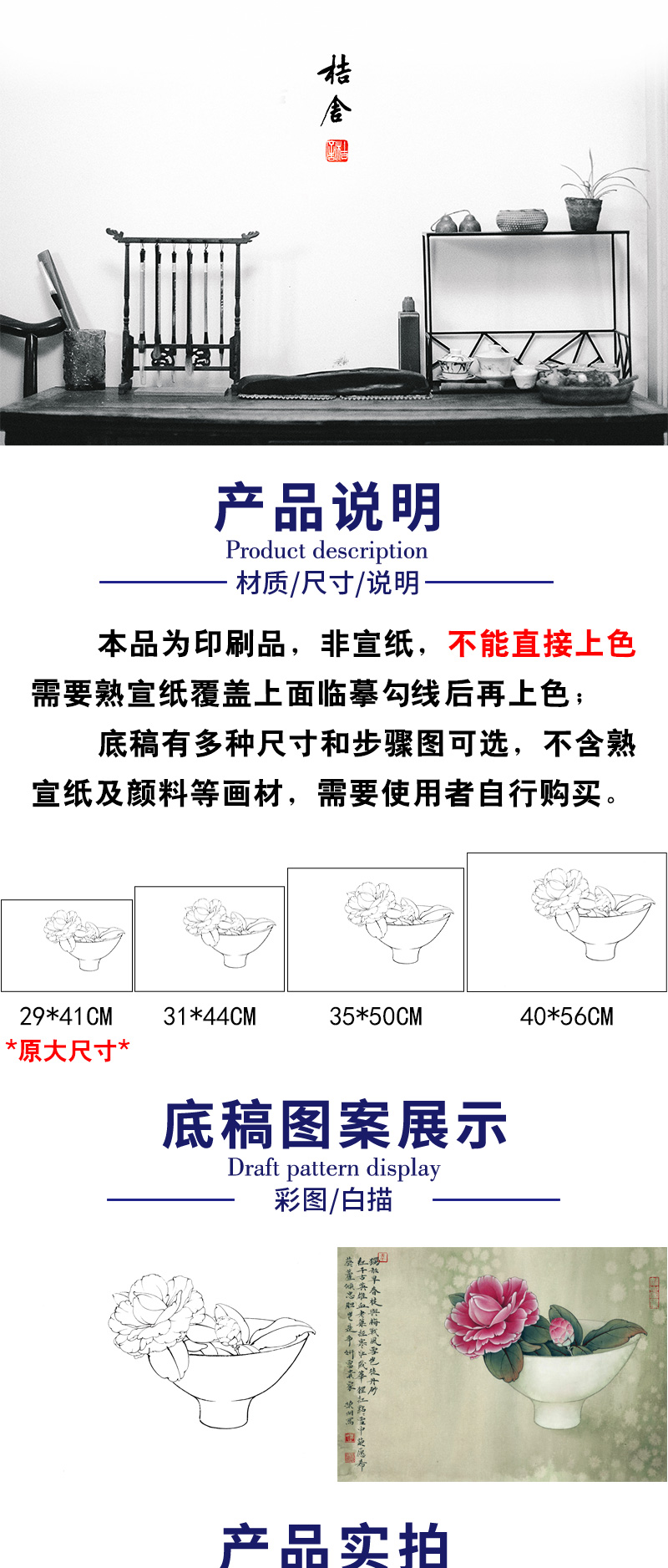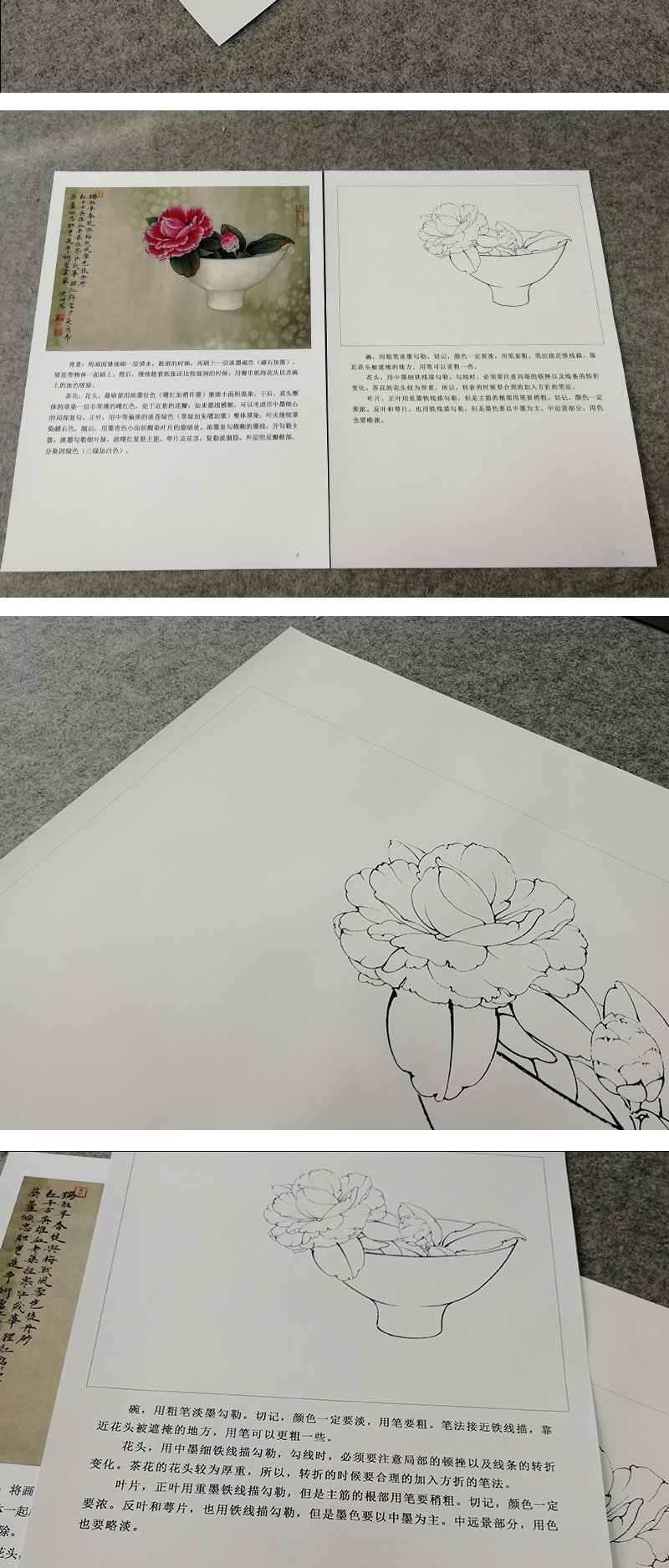 【有步骤、大彩图】李晓明工笔画白描底稿斗方小品《茶花写生图》初学者临摹勾线花鸟线稿KB11