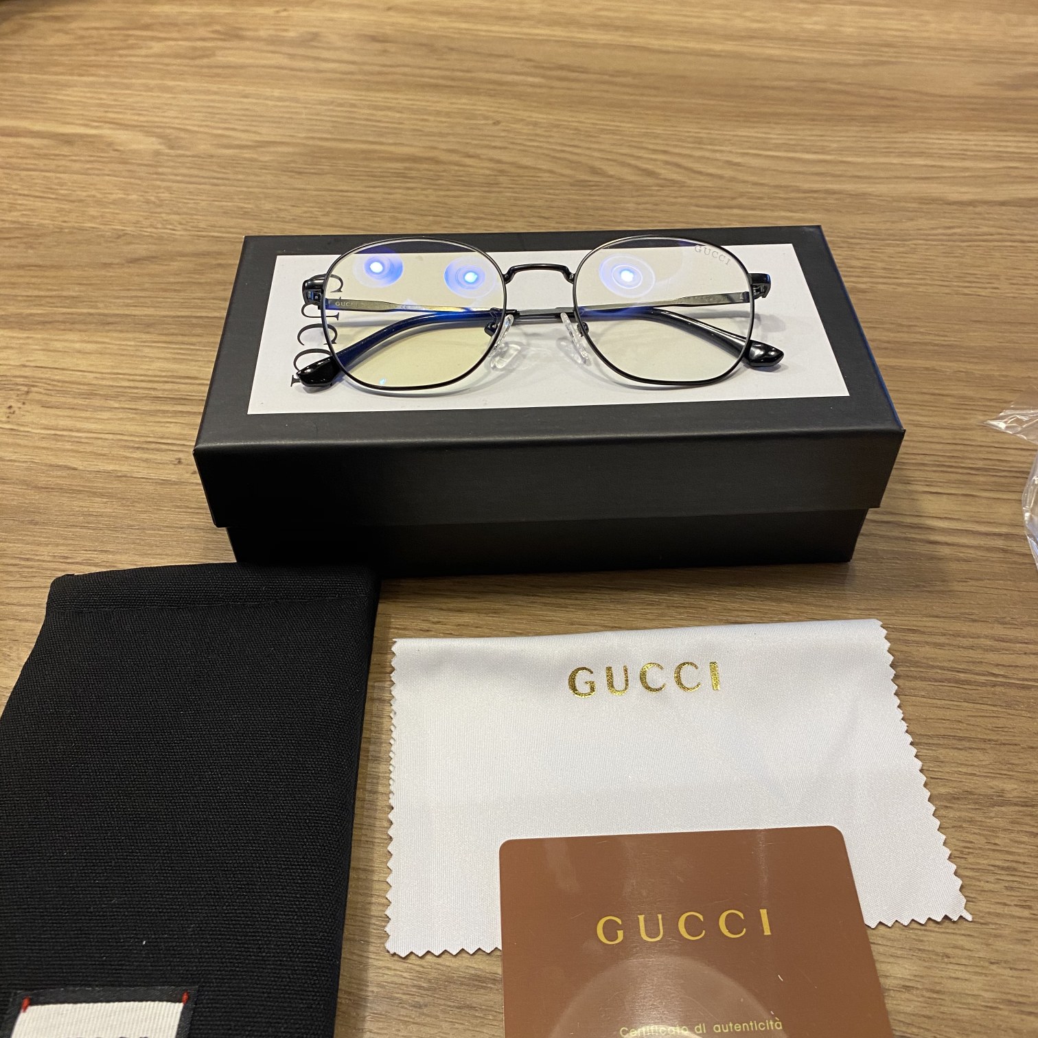 古奇防蓝光平光眼镜,今年大火的古家款,大牌设计感超级浓重,一点也不挑脸型,反而戴上以后很显脸小,今年最🔥爆款!镜腿还有品牌Logo,镜框很轻完全不用担心有压迫感,颜值爆表,简直是素颜神器,不爱化妆的小姐姐必备!