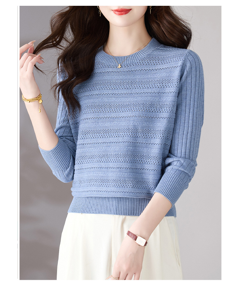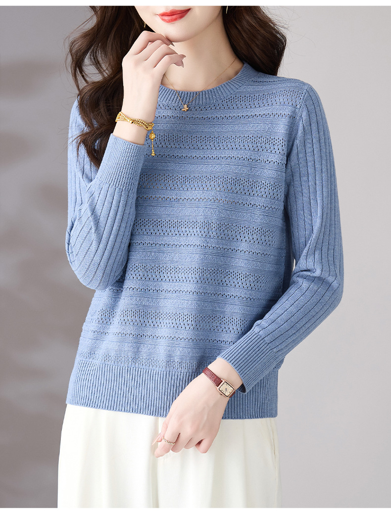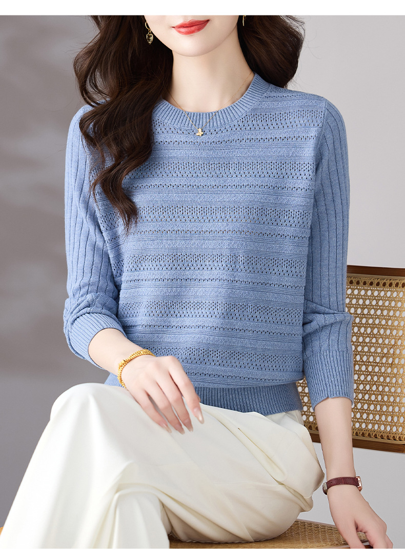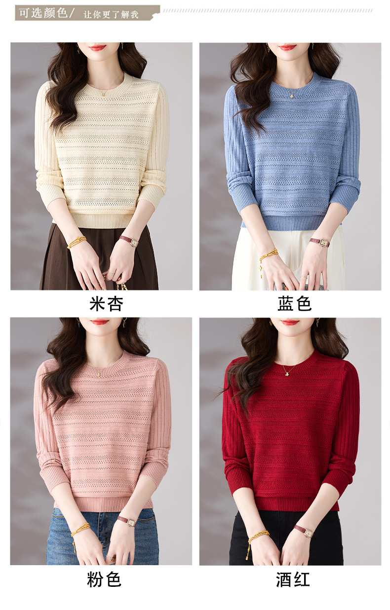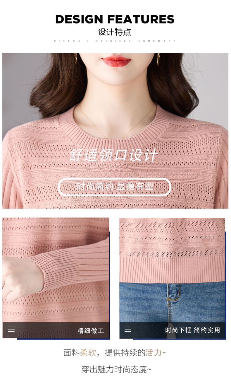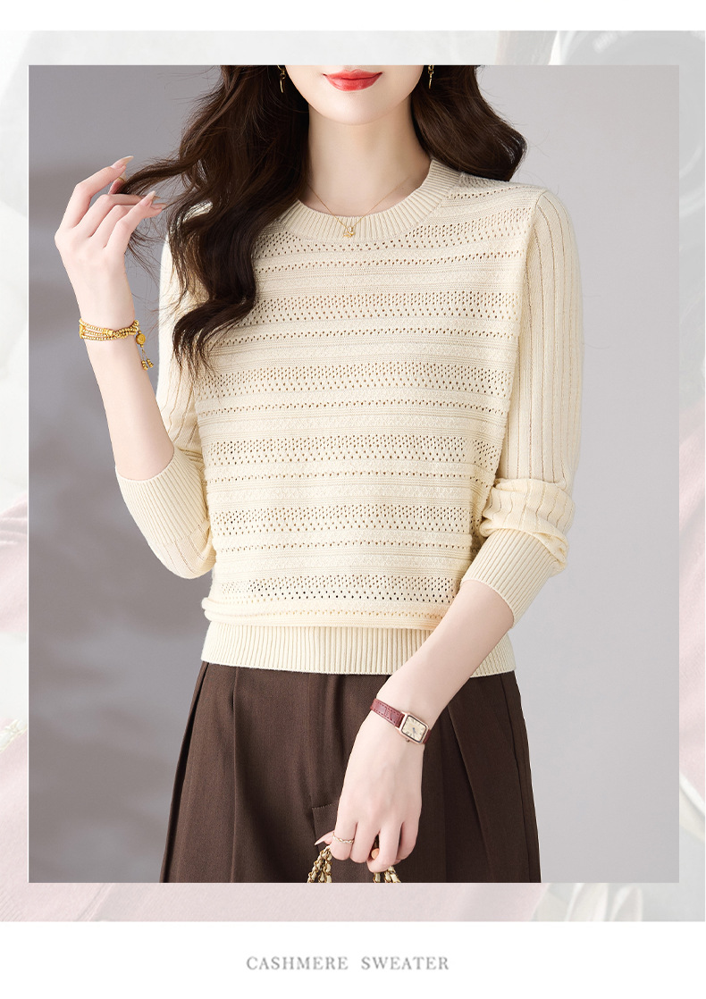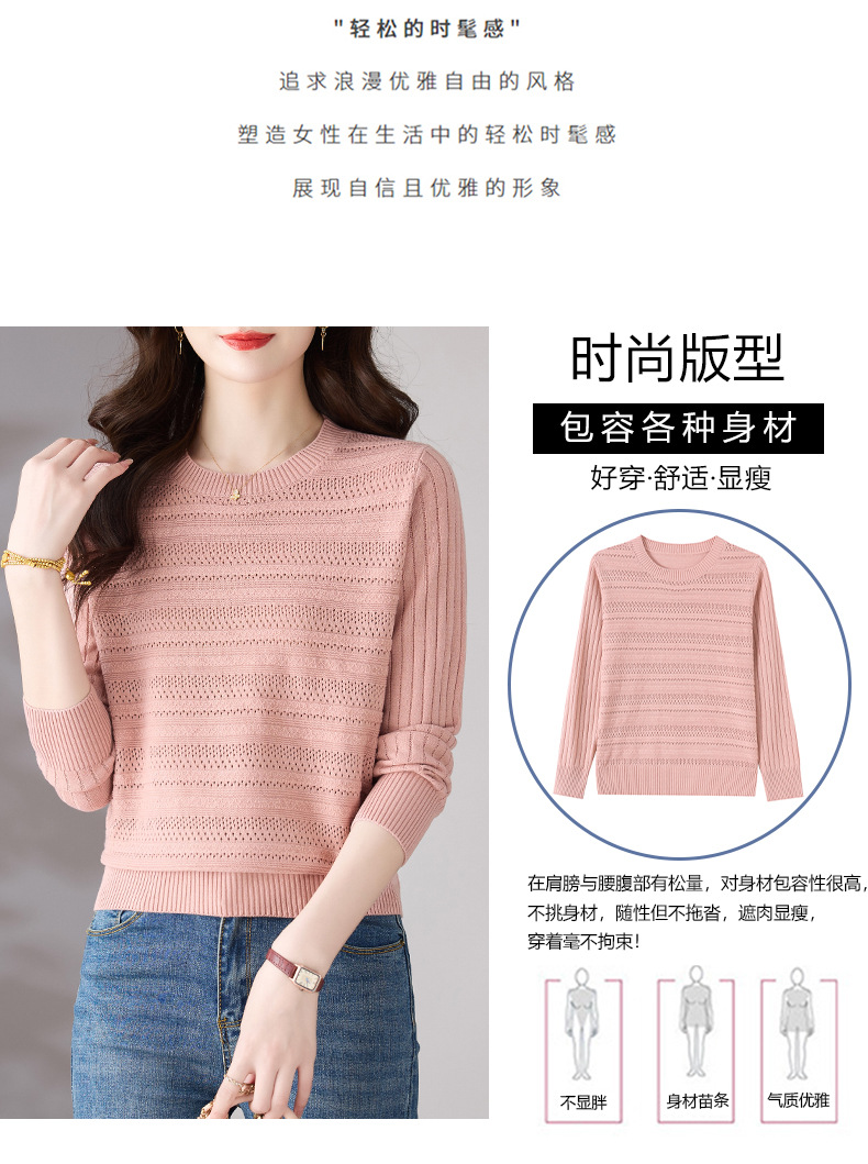 CC早秋薄款镂空长袖针织上衣女秋装2025新款圆领毛衣春秋打底衫