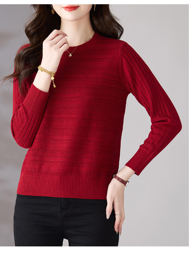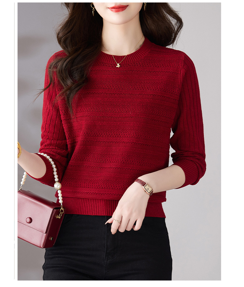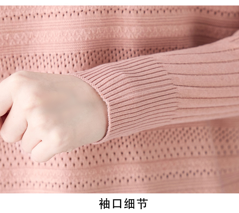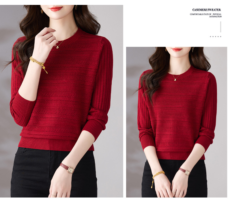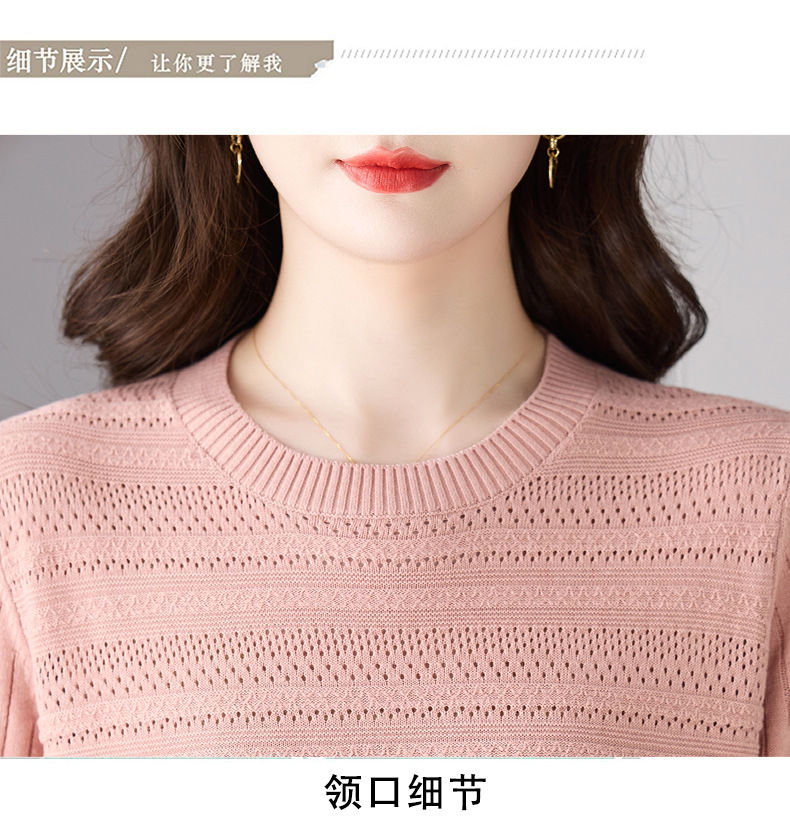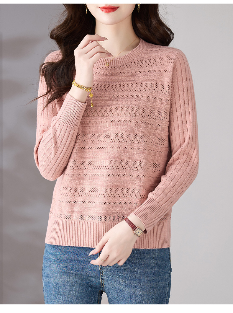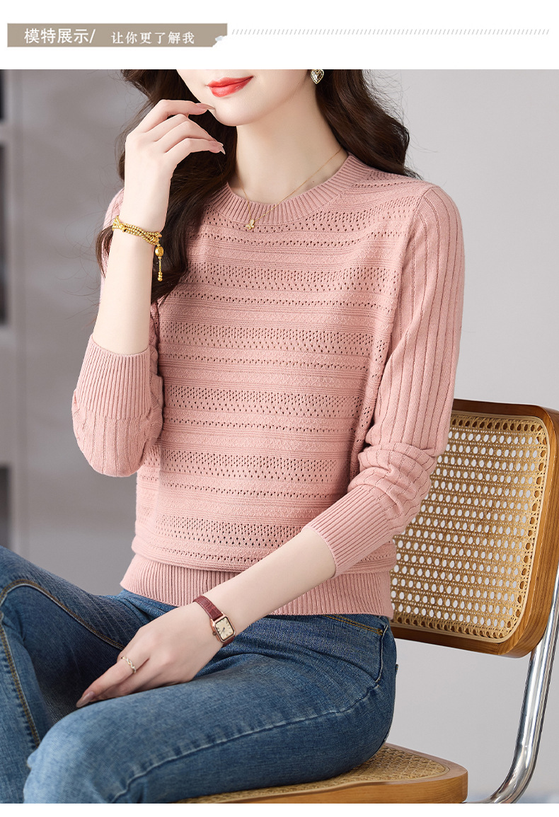 CC早秋薄款镂空长袖针织上衣女秋装2025新款圆领毛衣春秋打底衫