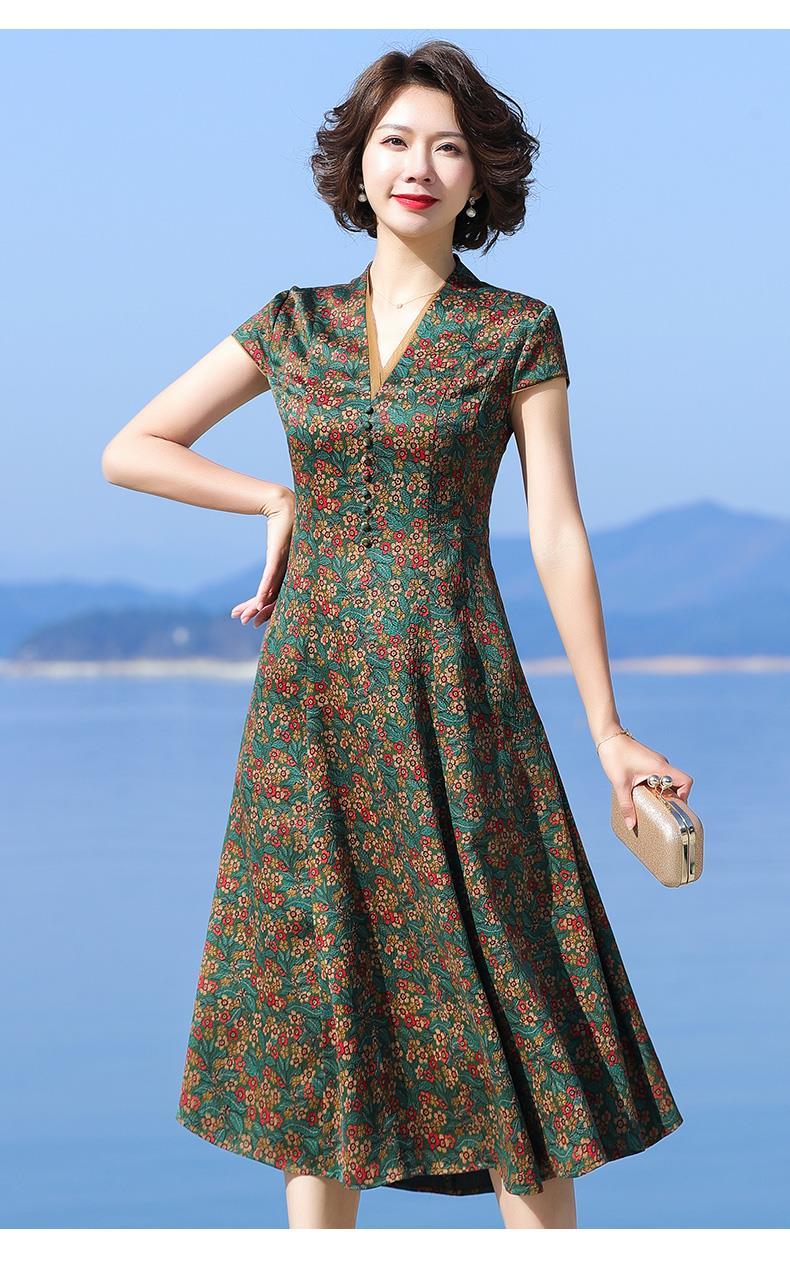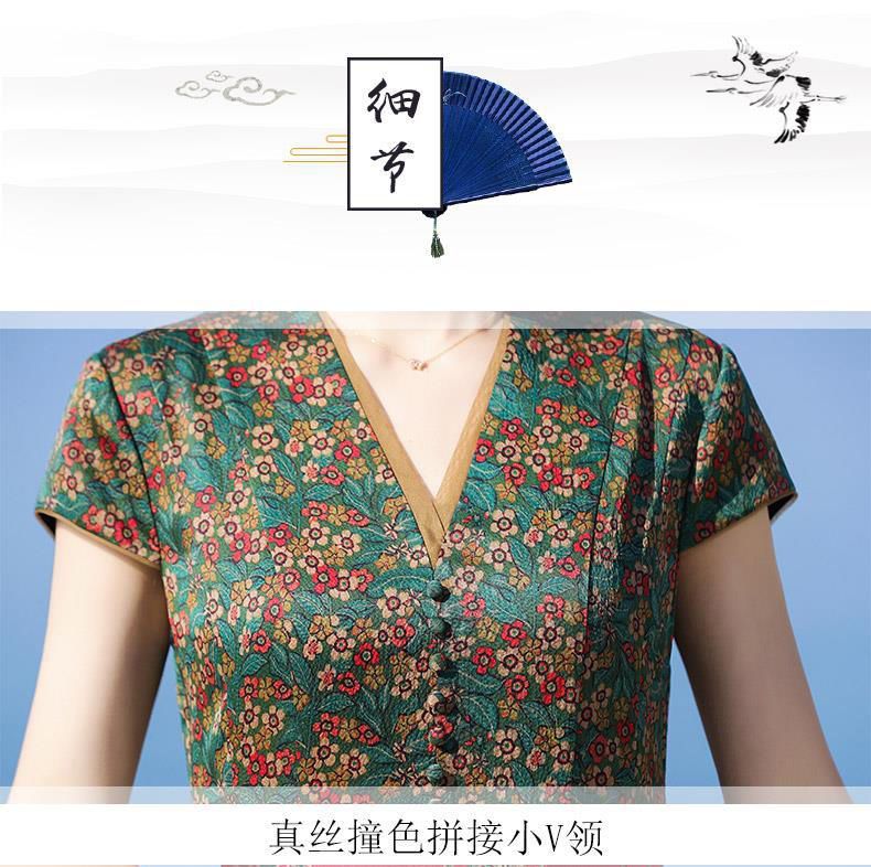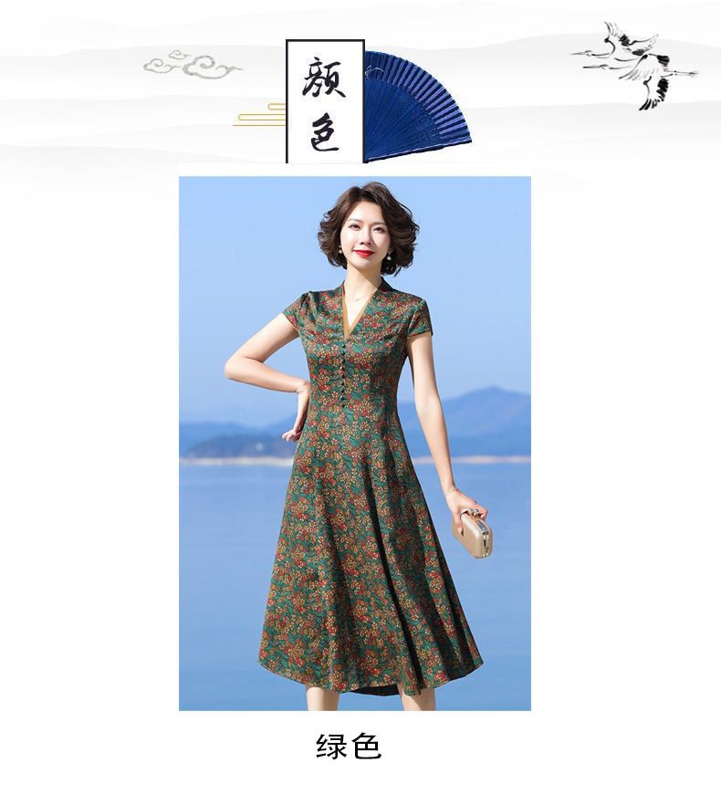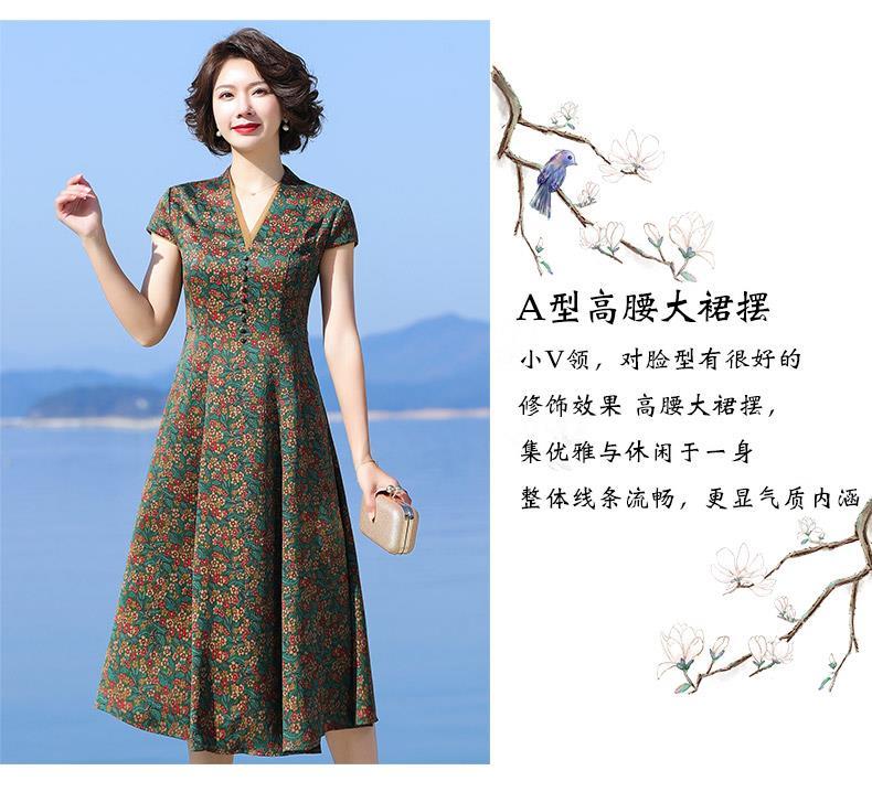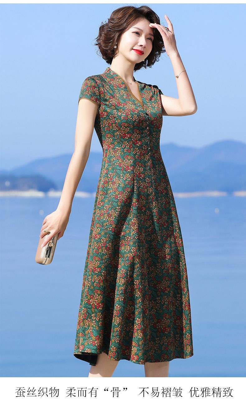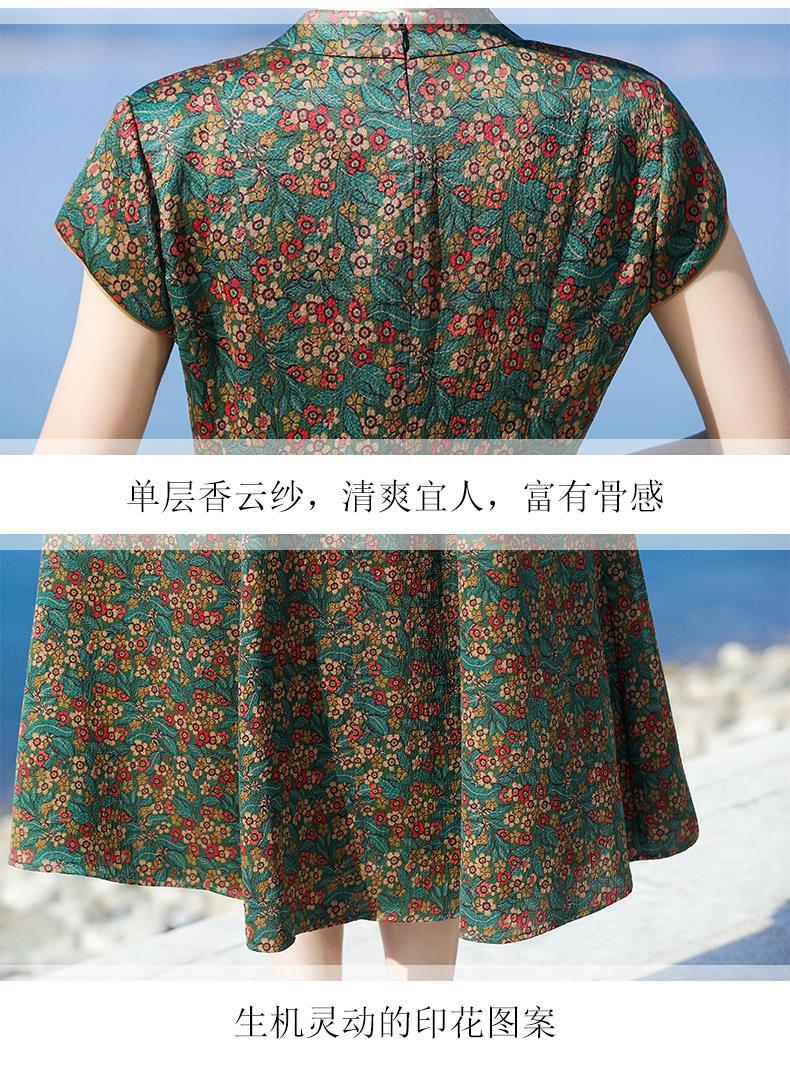 A686香云纱真丝连衣裙高档旗袍2021新款大牌桑蚕丝收腰绿色碎花裙子夏