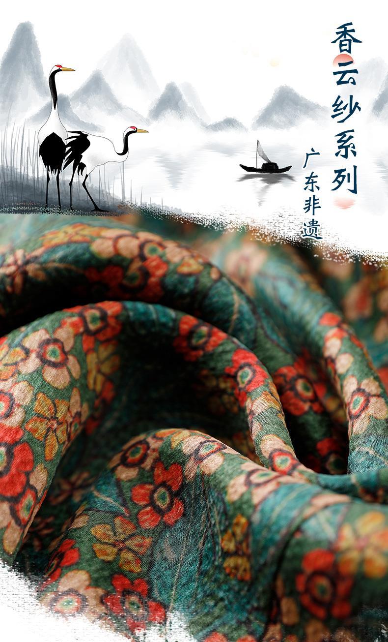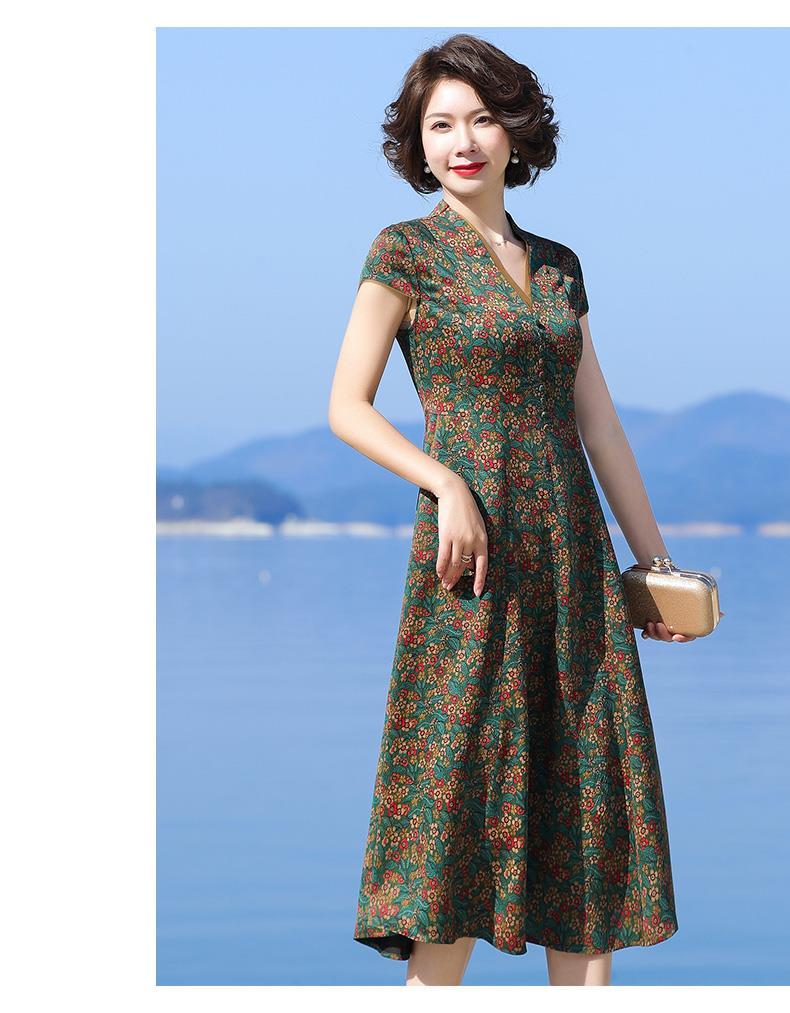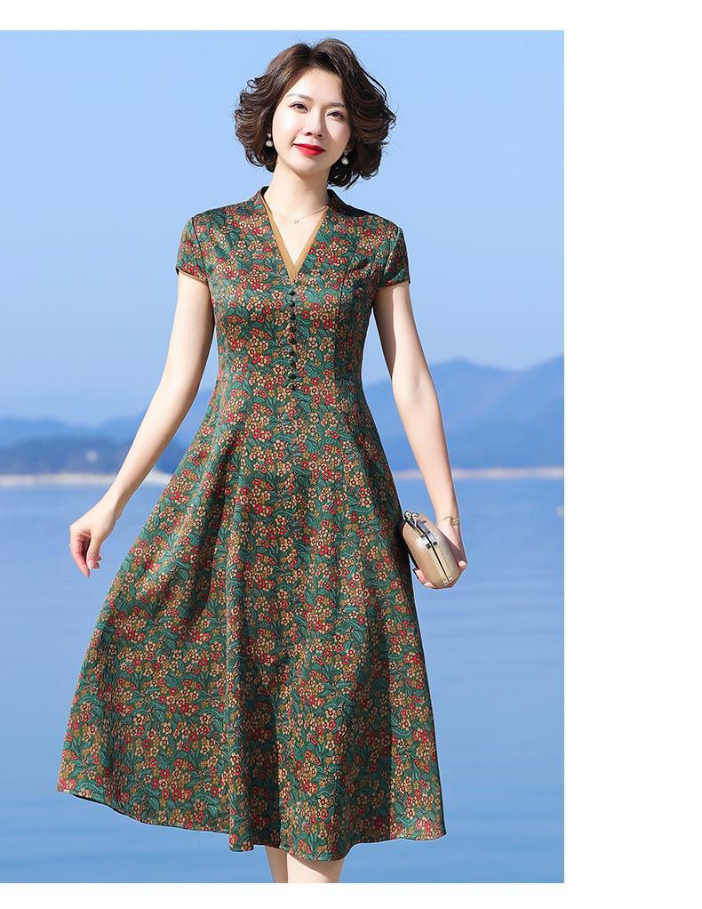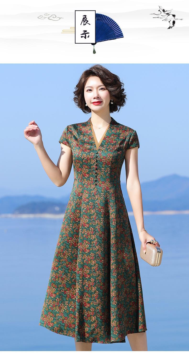 A686香云纱真丝连衣裙高档旗袍2021新款大牌桑蚕丝收腰绿色碎花裙子夏
