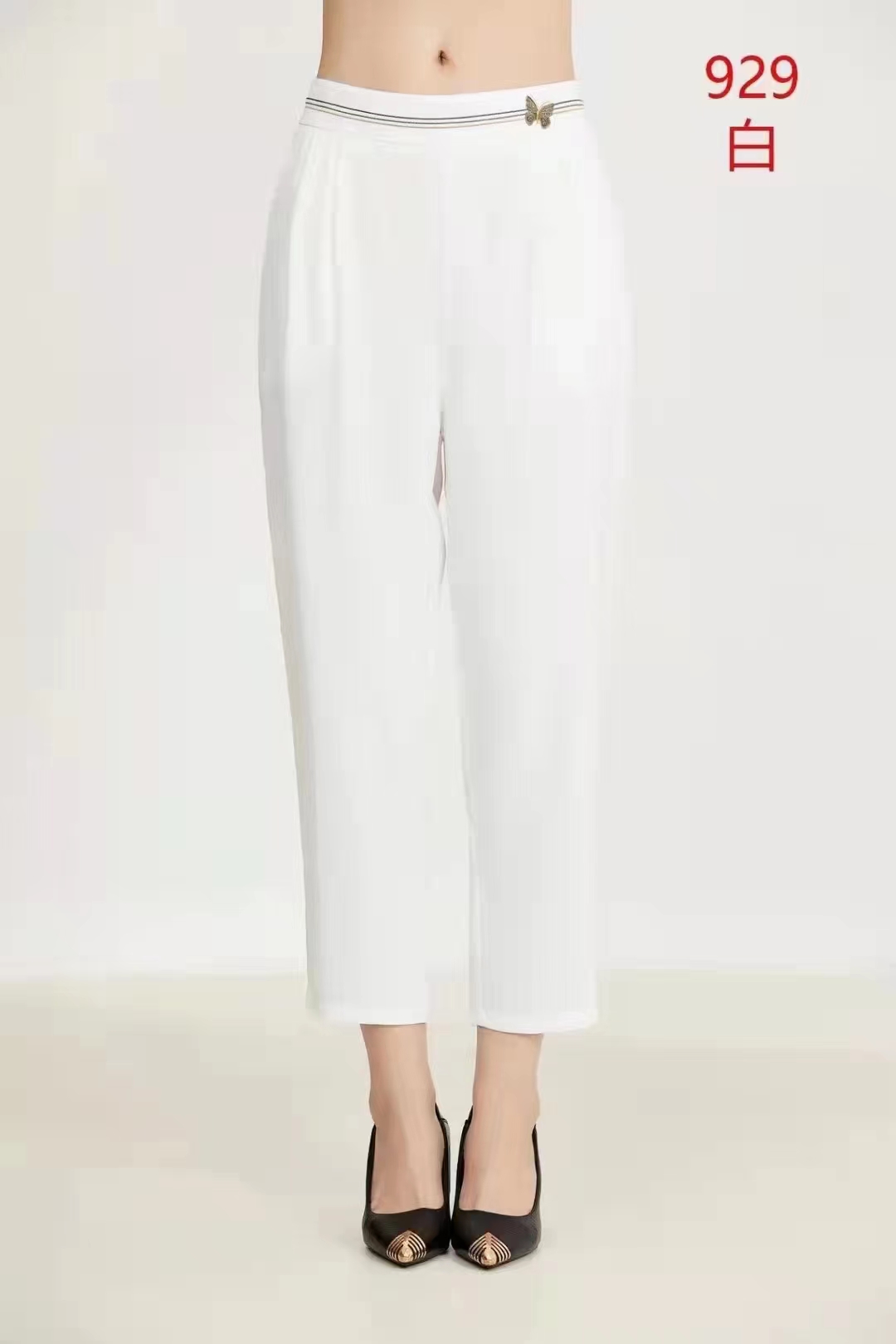 【品名】FS竹纤维女士腰头绣花休闲长直筒裤929