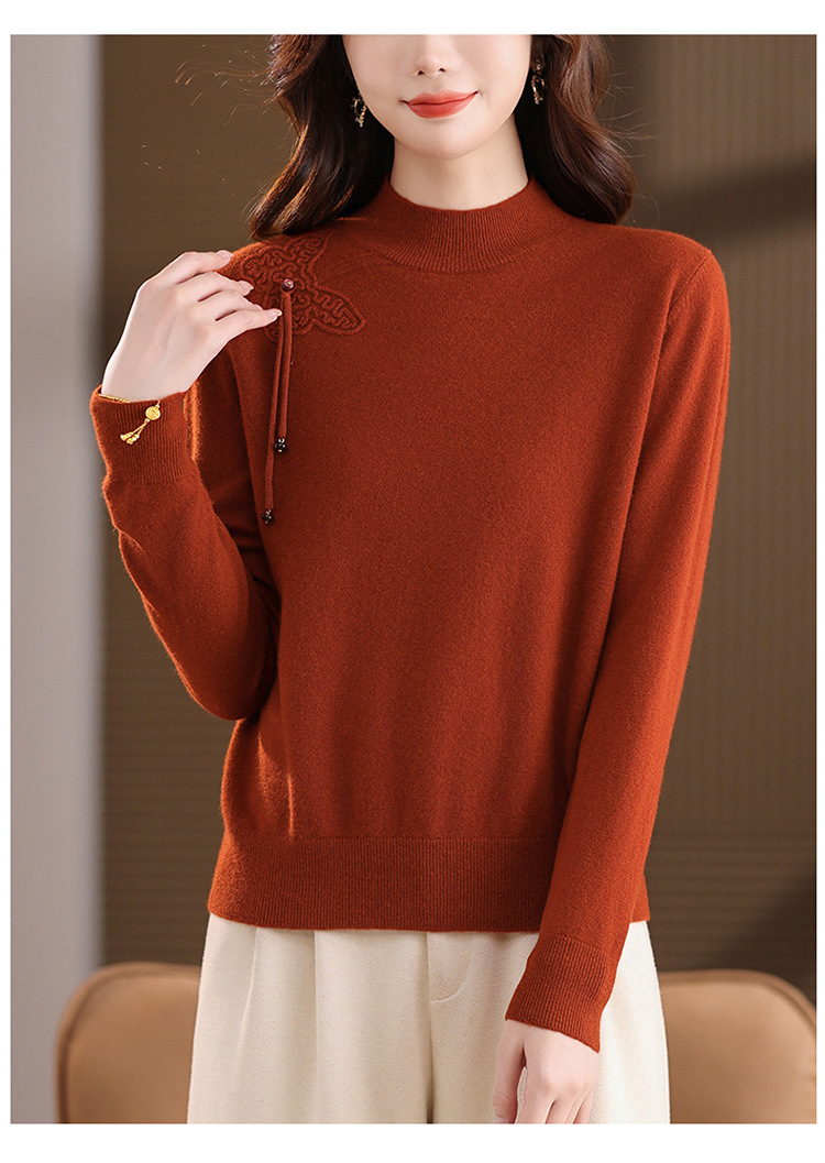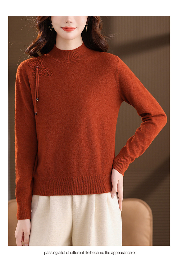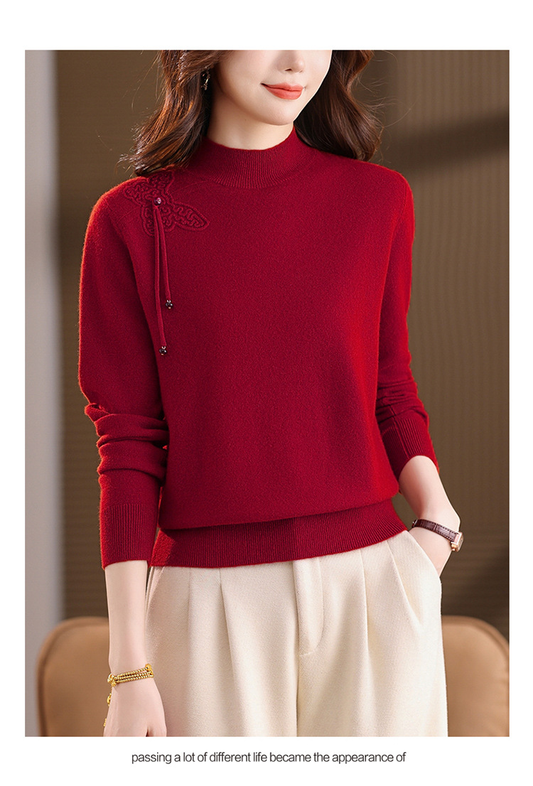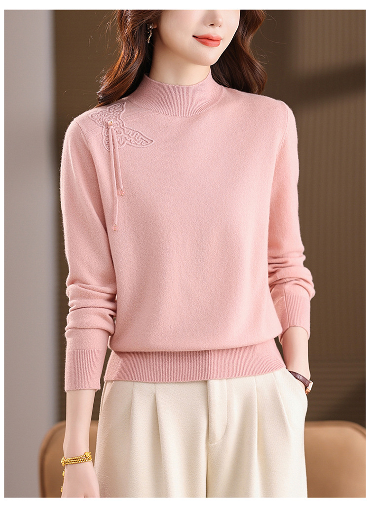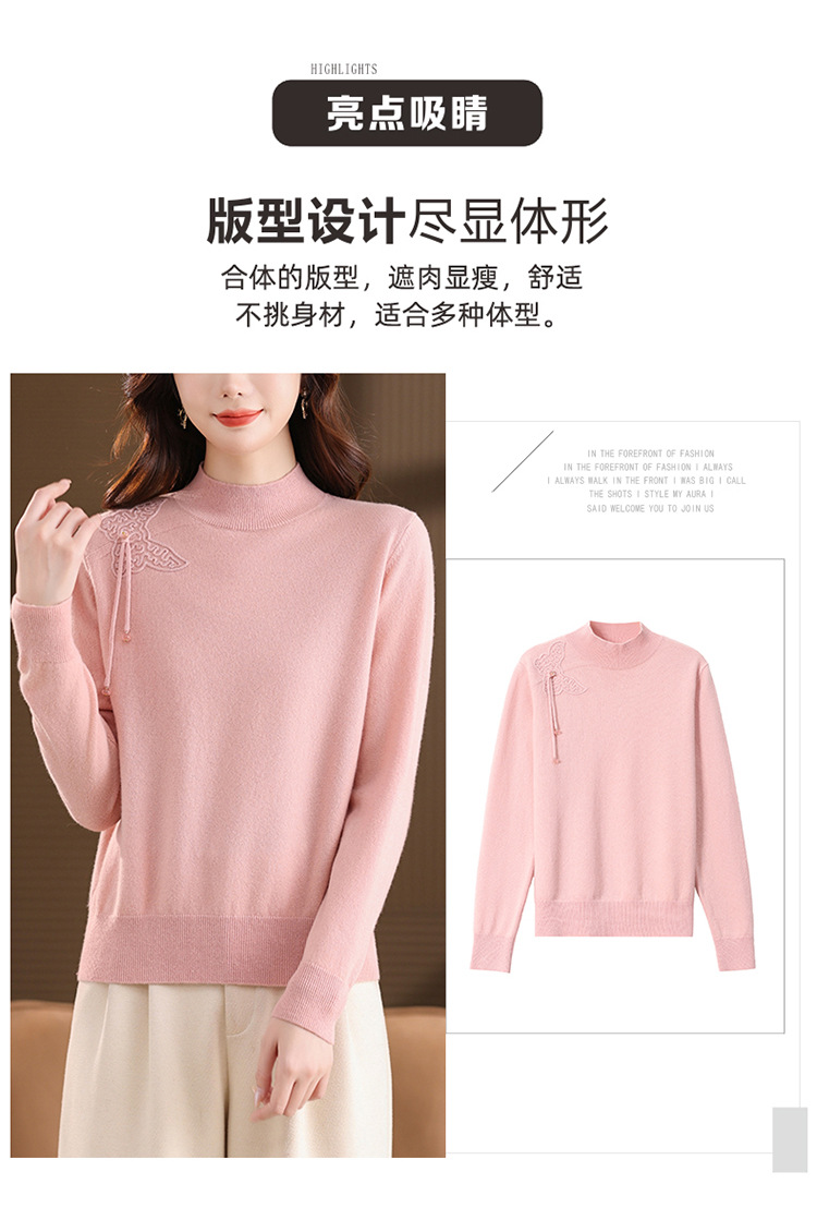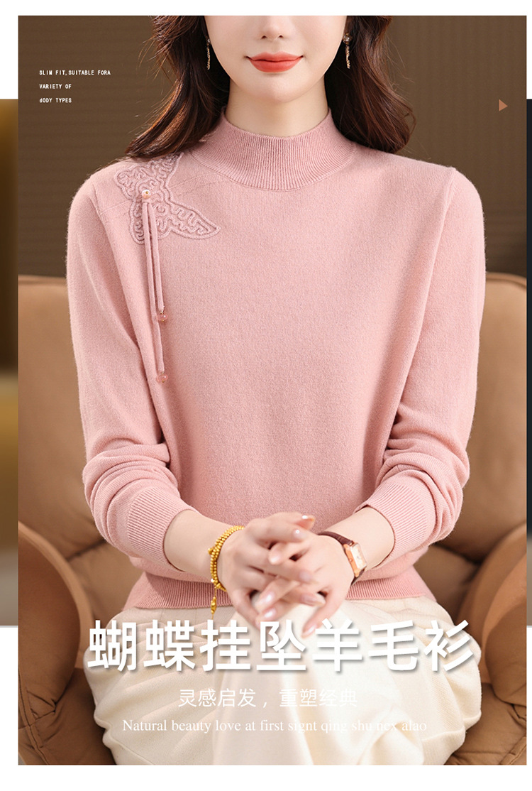 「自」全新升级【铂金会员284/天猫379/差价95】(13032)洛诗琳蝴蝶结纯色半高领帽衫2025秋冬新款套头宽松针织毛衣