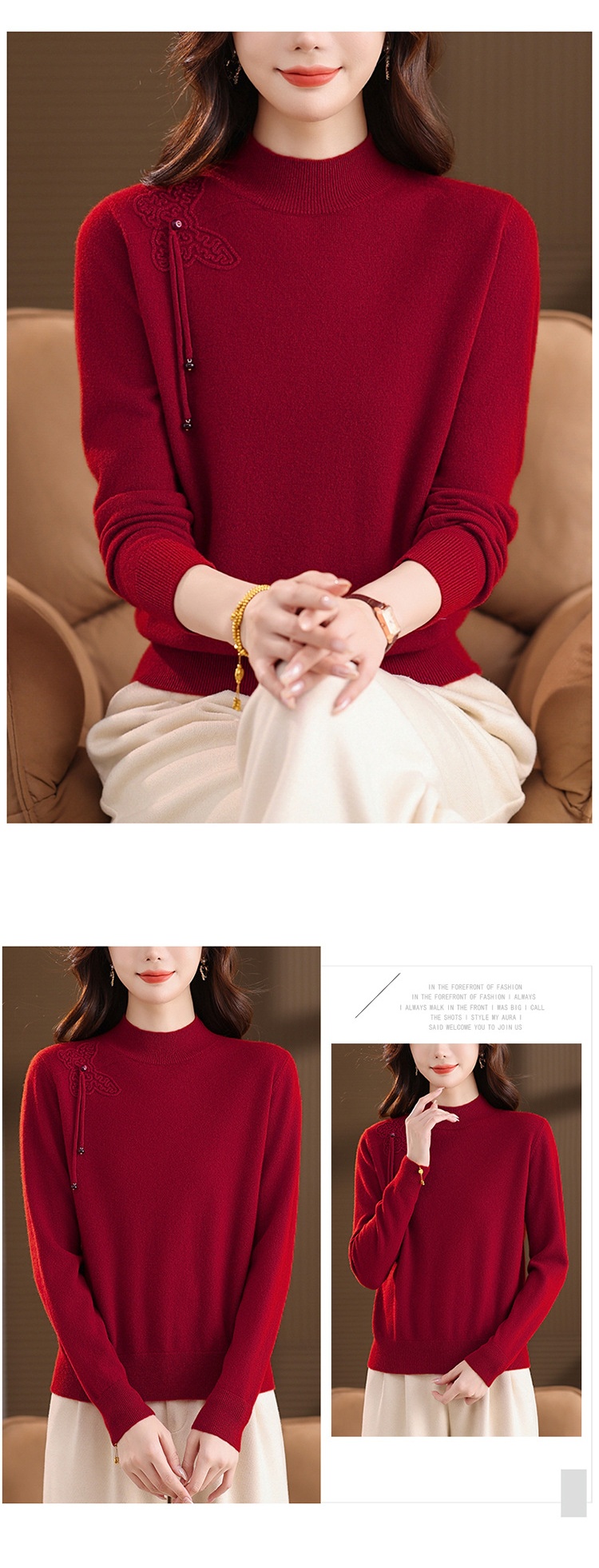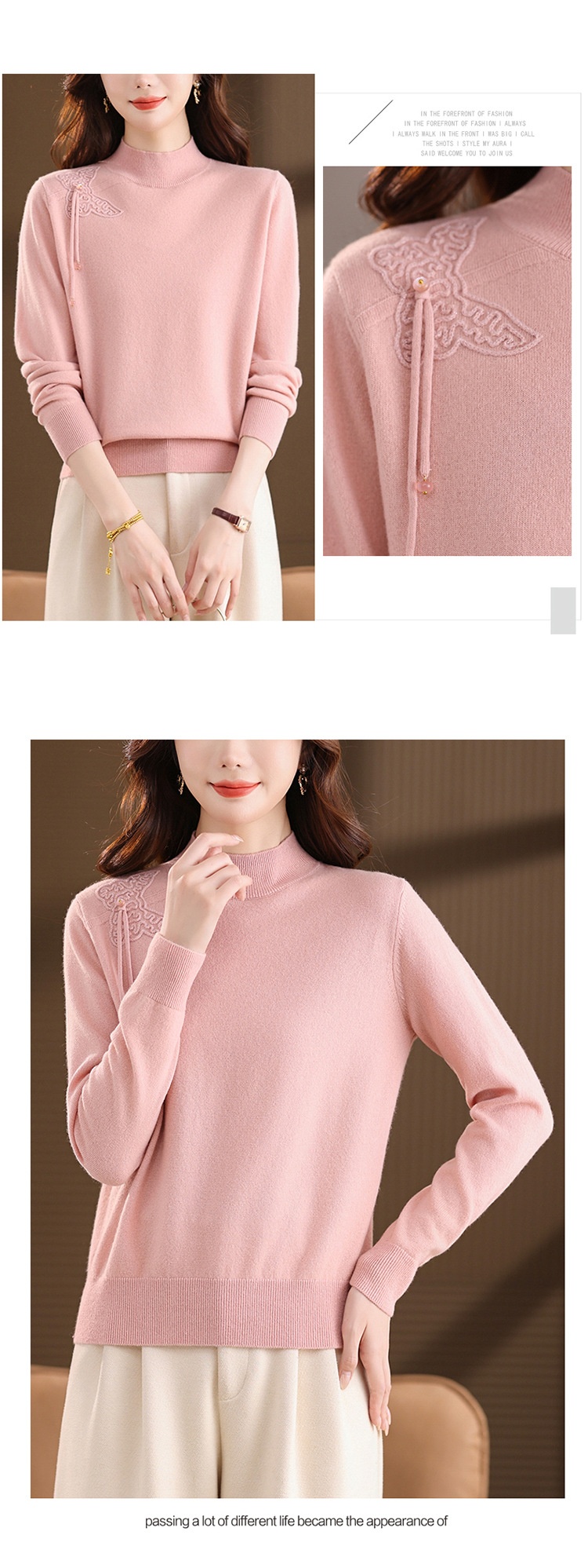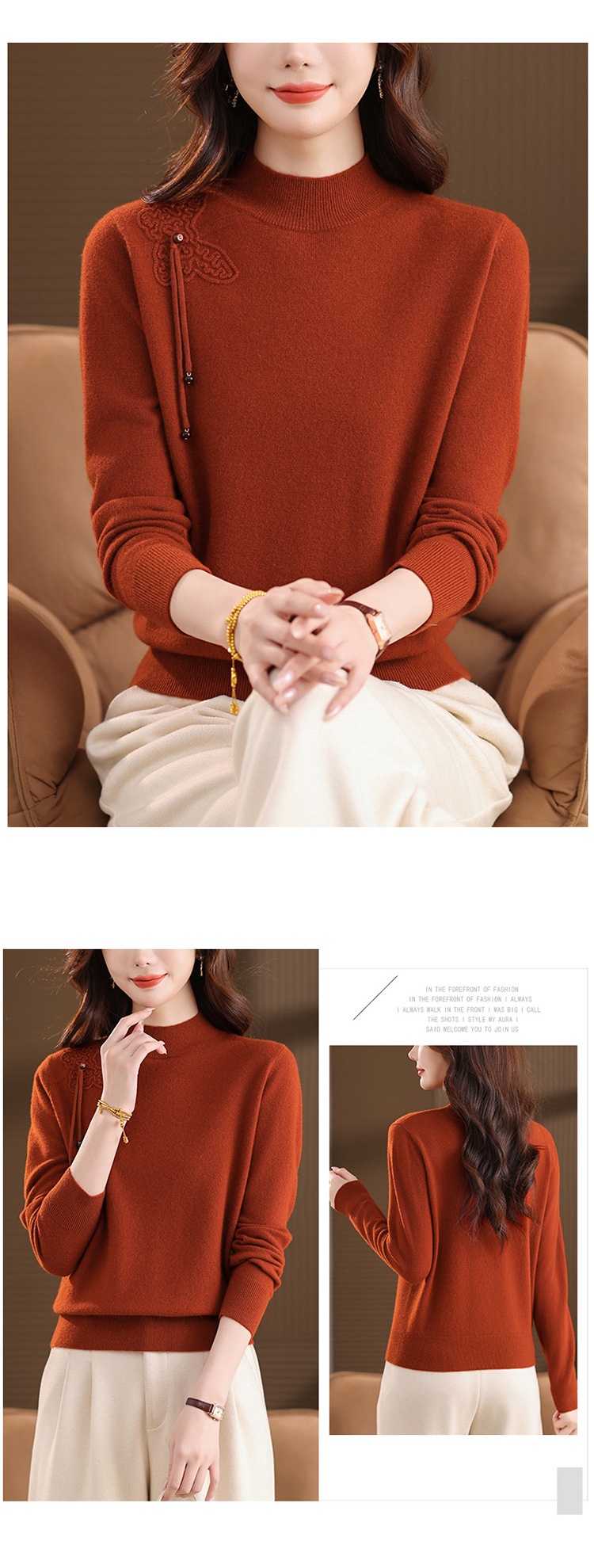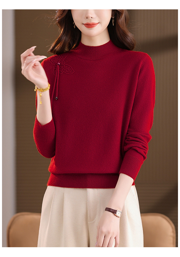 「自」全新升级【铂金会员284/天猫379/差价95】(13032)洛诗琳蝴蝶结纯色半高领帽衫2025秋冬新款套头宽松针织毛衣