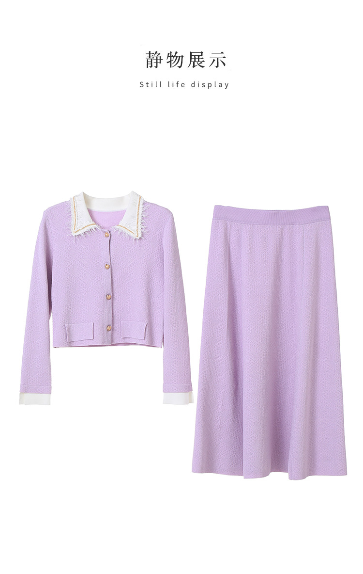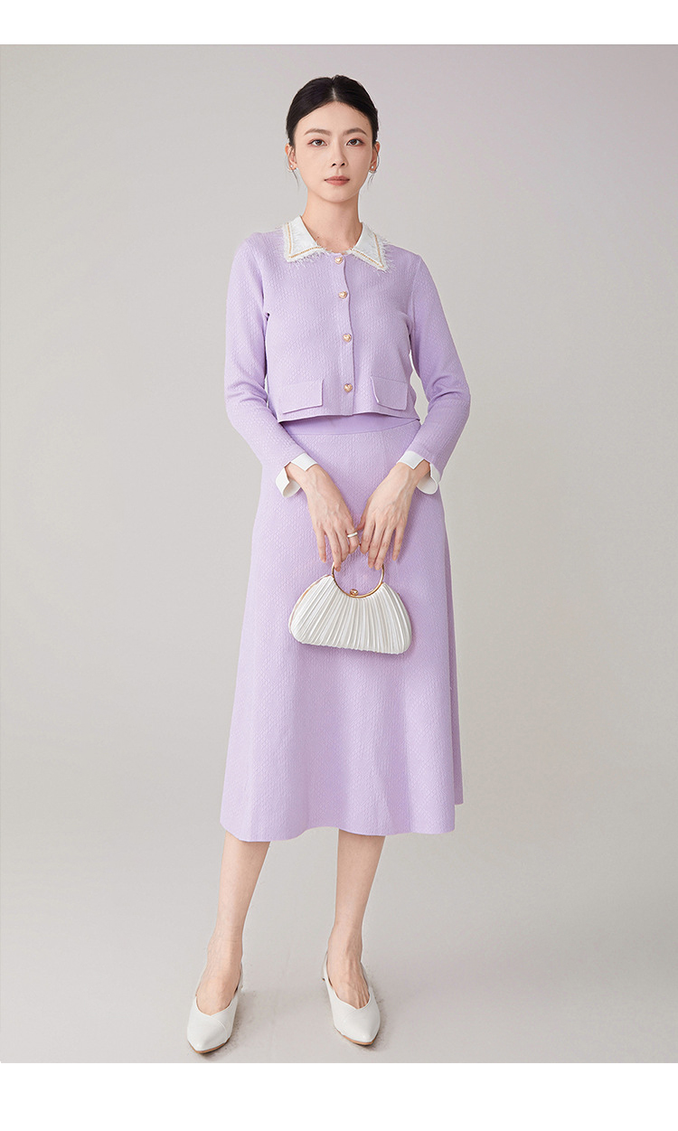 【hrf】全新升级【铂金会员468/天猫629/差价161】(03014) 洛诗琳秋冬法式温柔暗纹提花*绝美针织小香风两件套