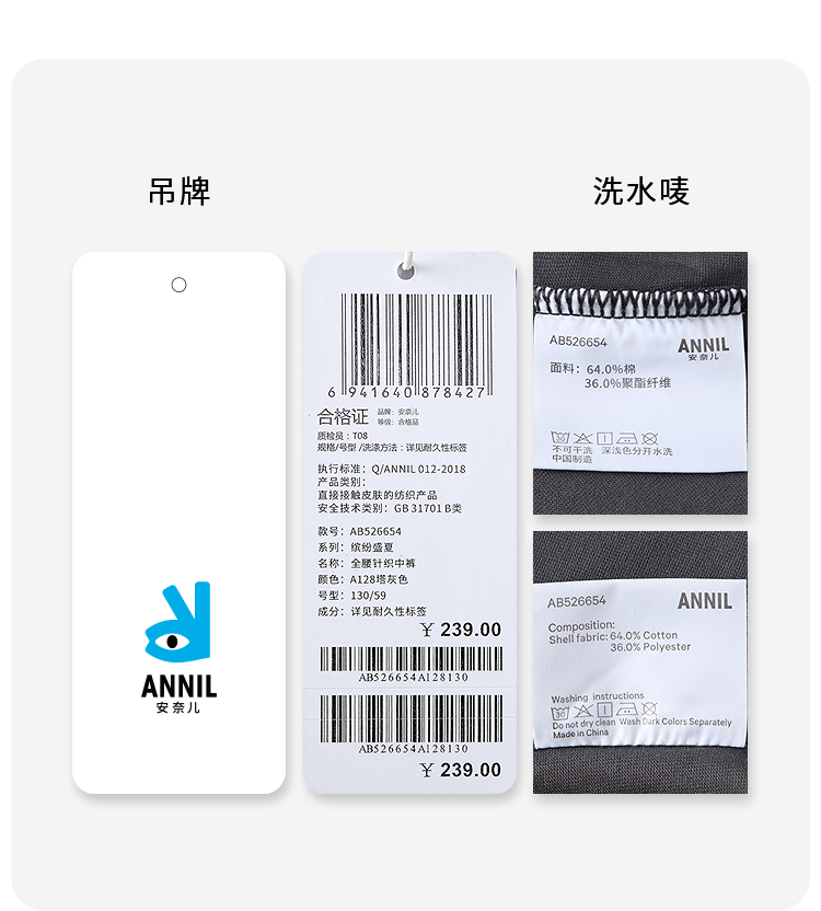 【实体店同款】男童全腰针织中裤夏季新款安奈儿童装AB526654