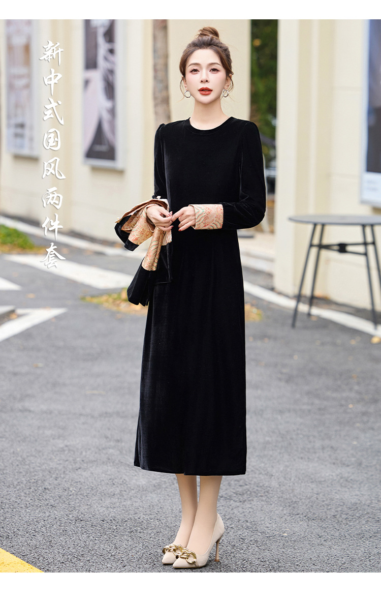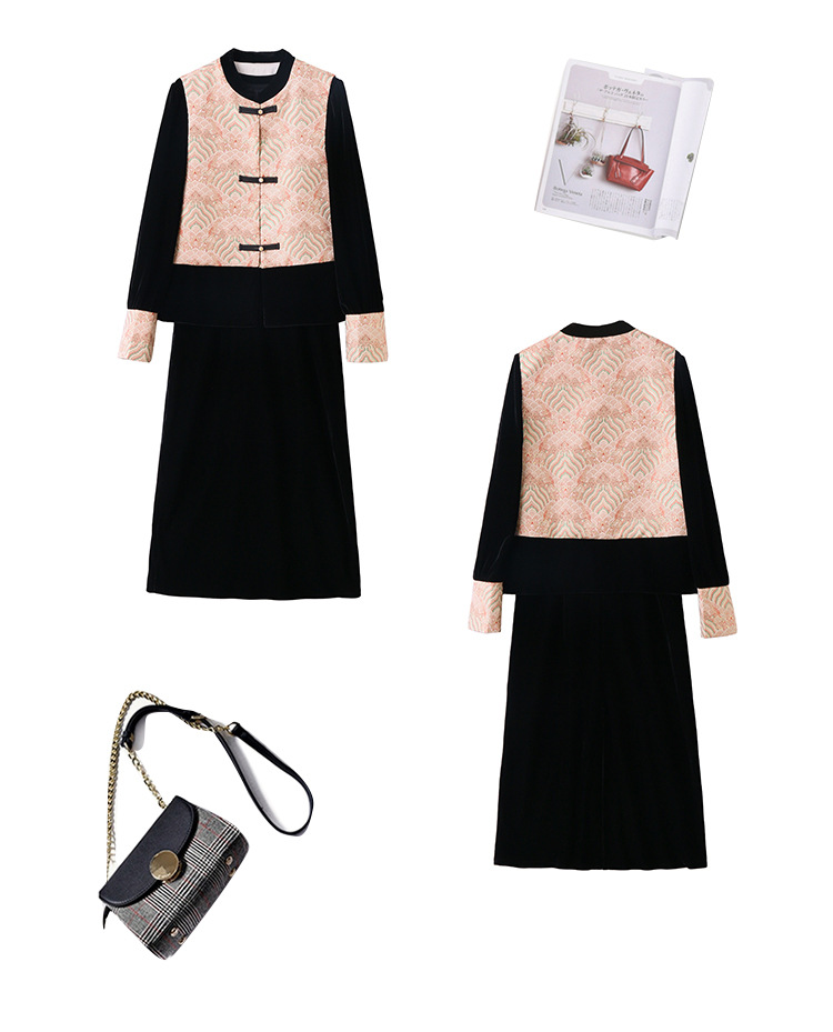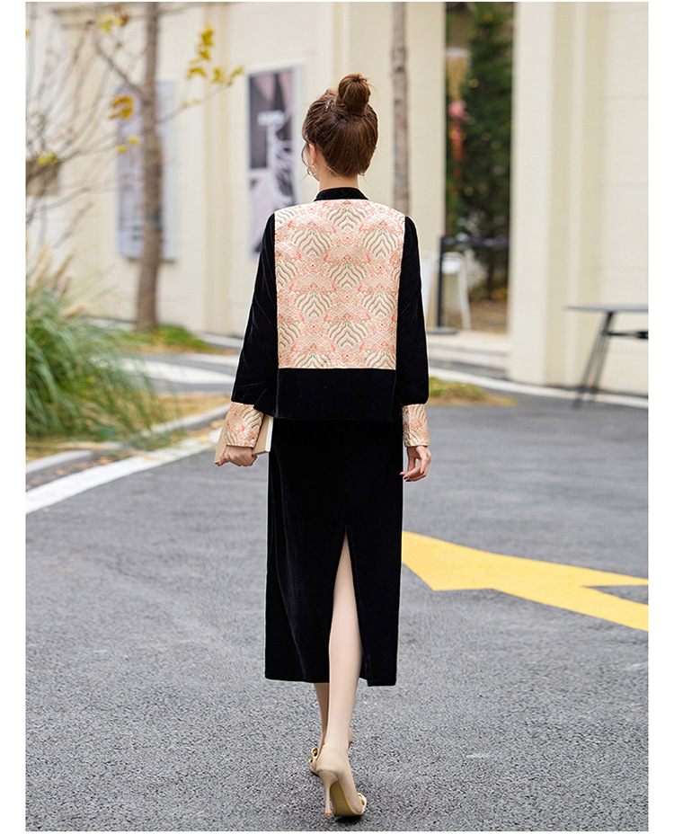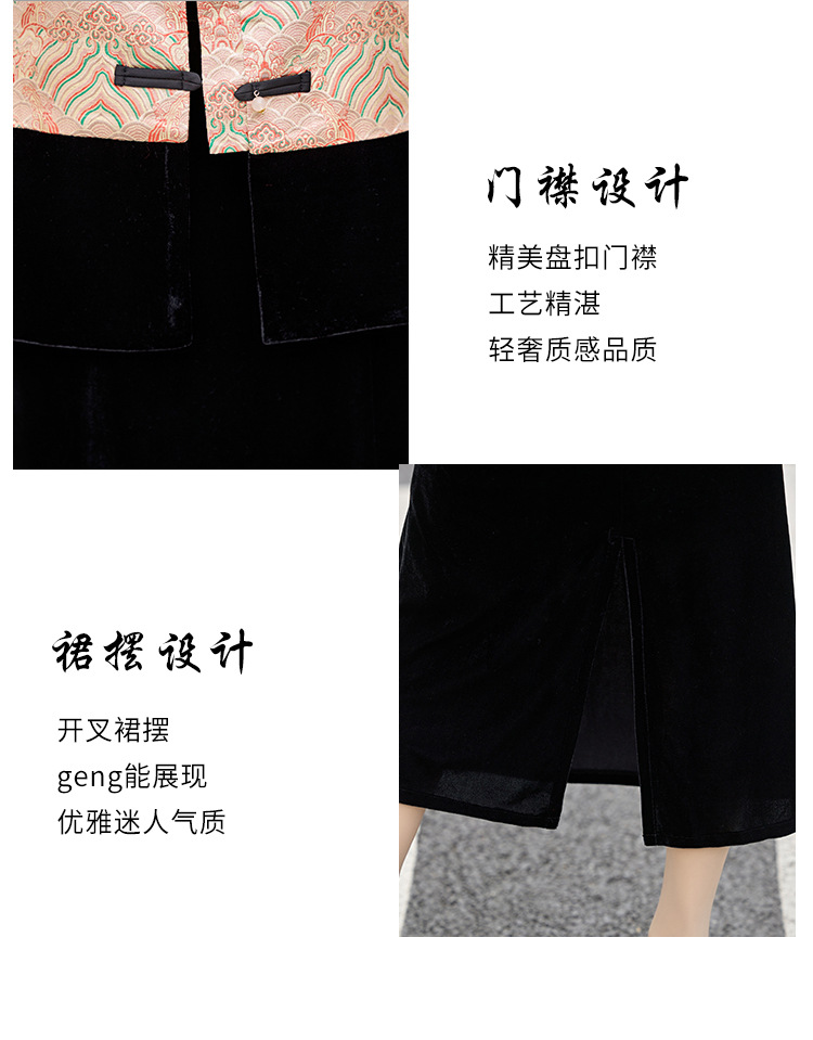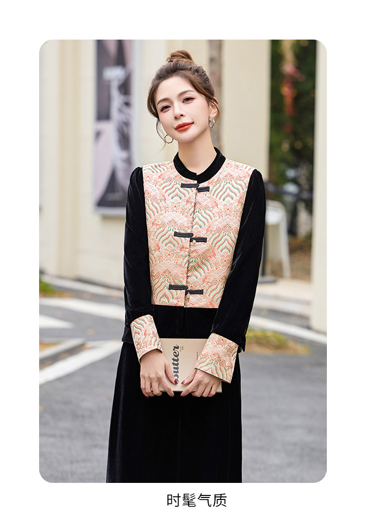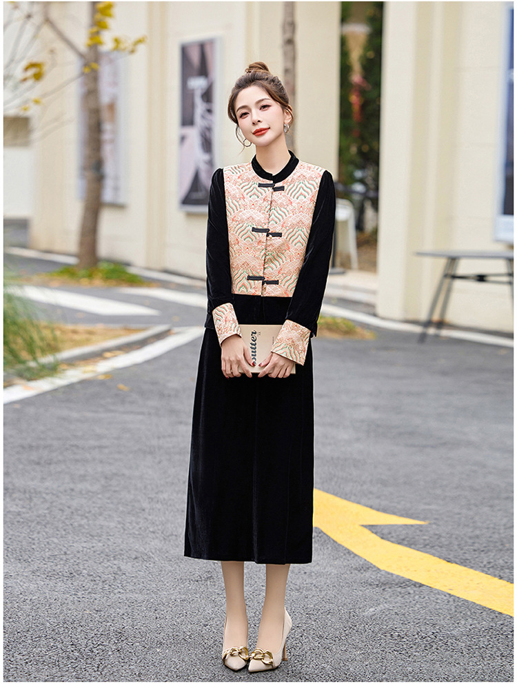 TZW-2025春季新款民族风两件套裙新中式提花马甲丝绒连衣裙时尚休闲套