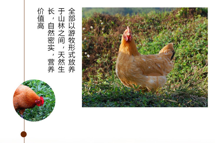 山林放养,啄食虫、草,饮山泉
