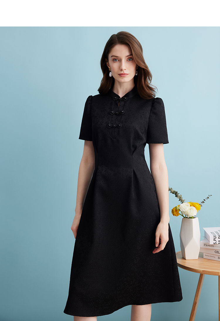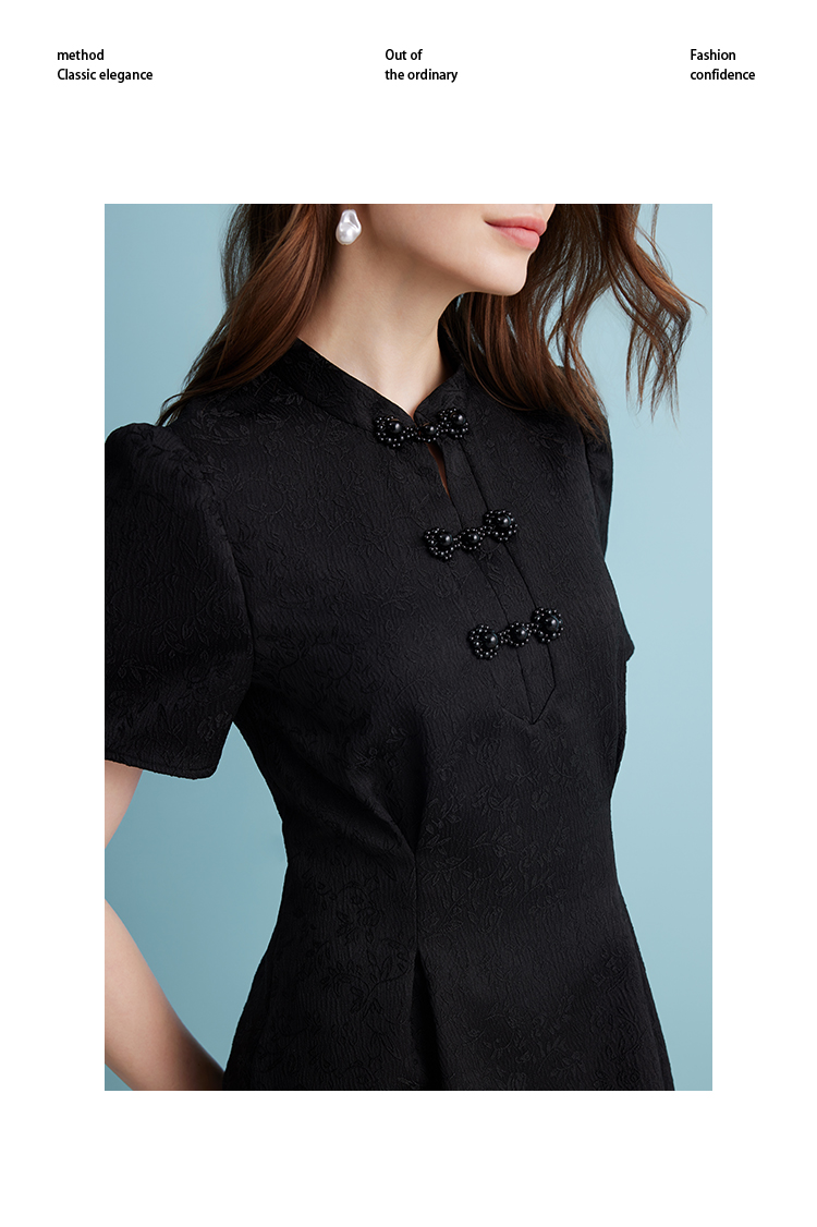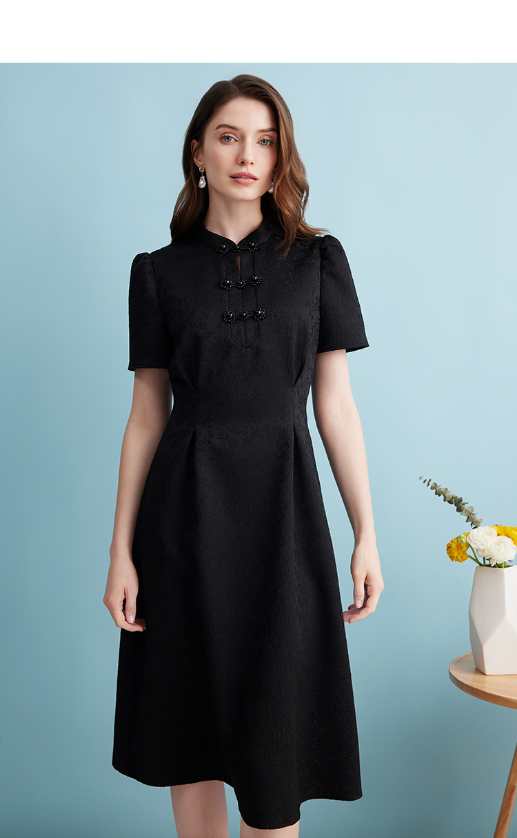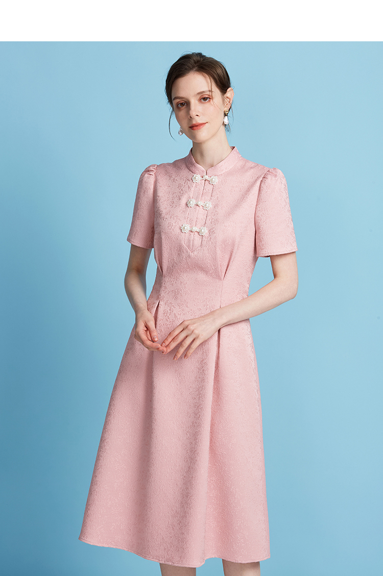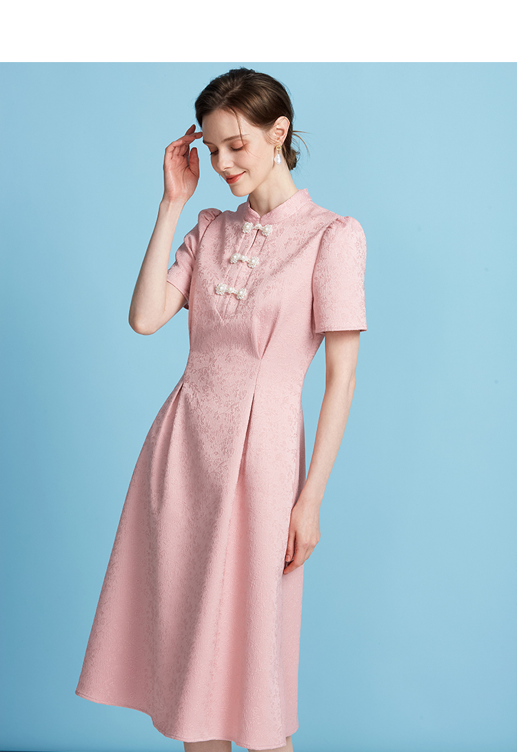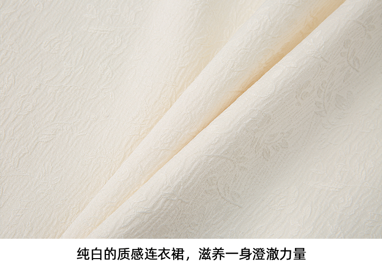 EITIE爱特爱新中式对襟珍珠盘扣收腰显瘦白色连衣裙夏季新款B2407306