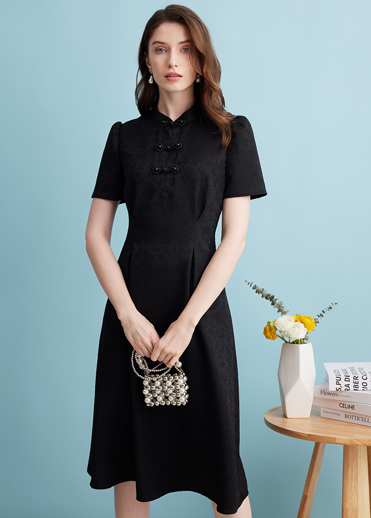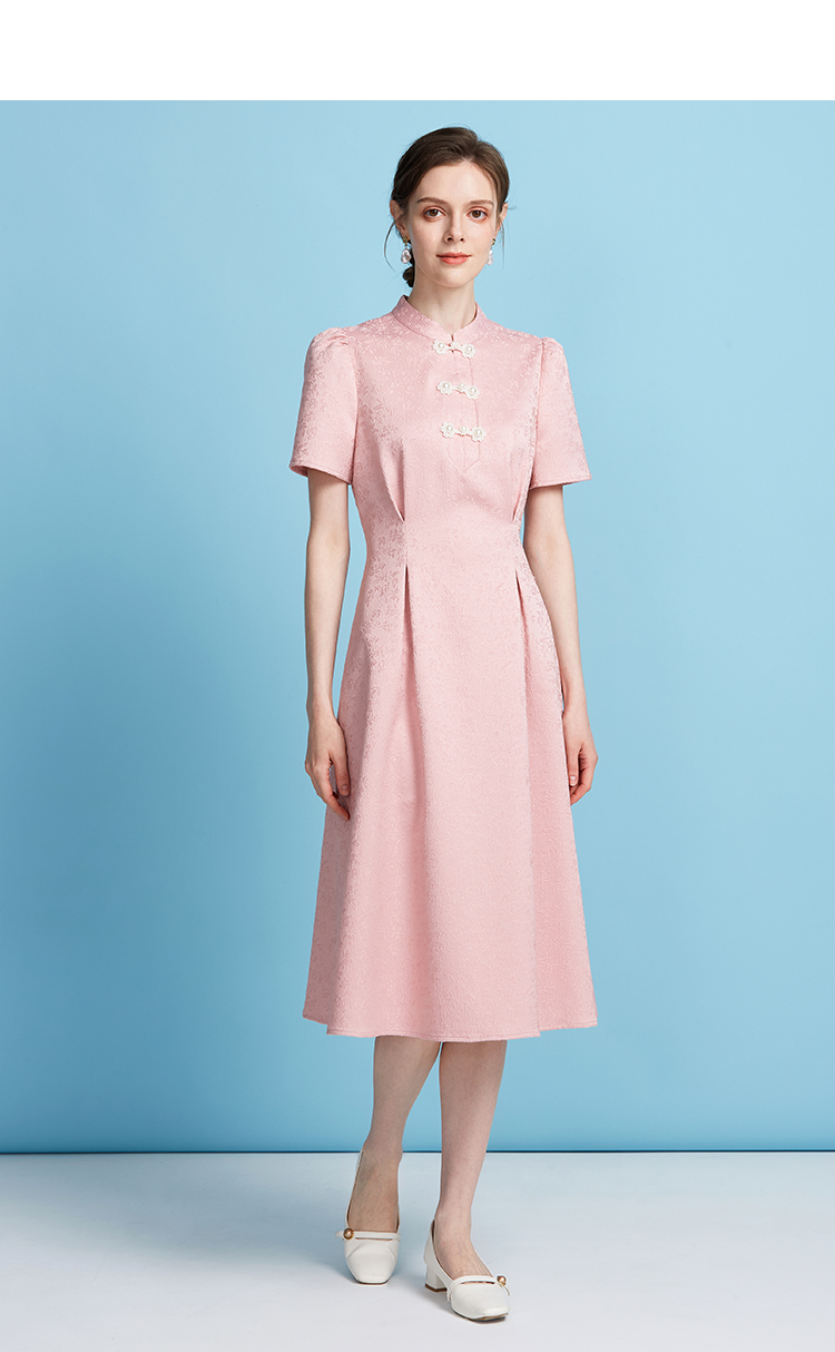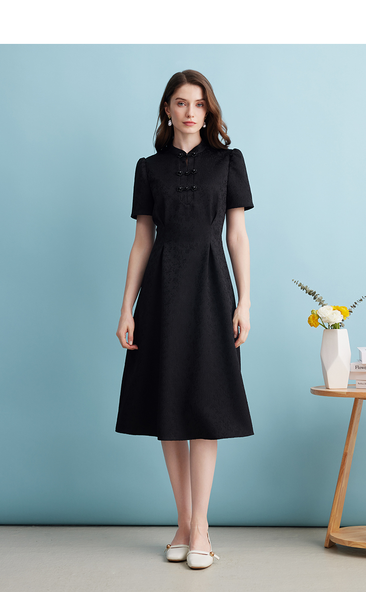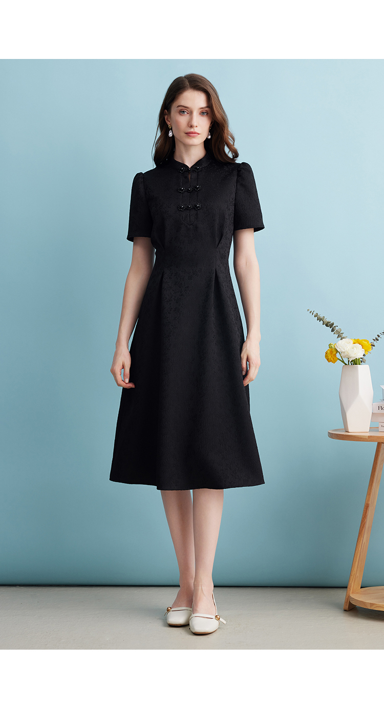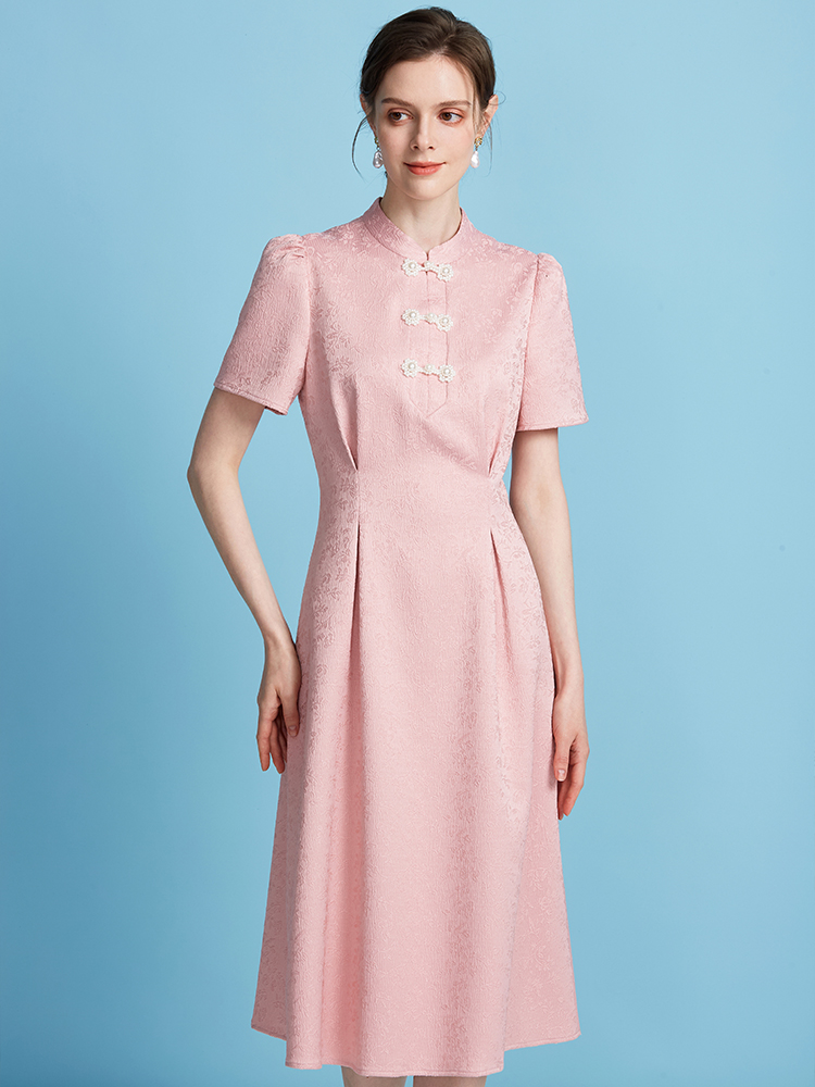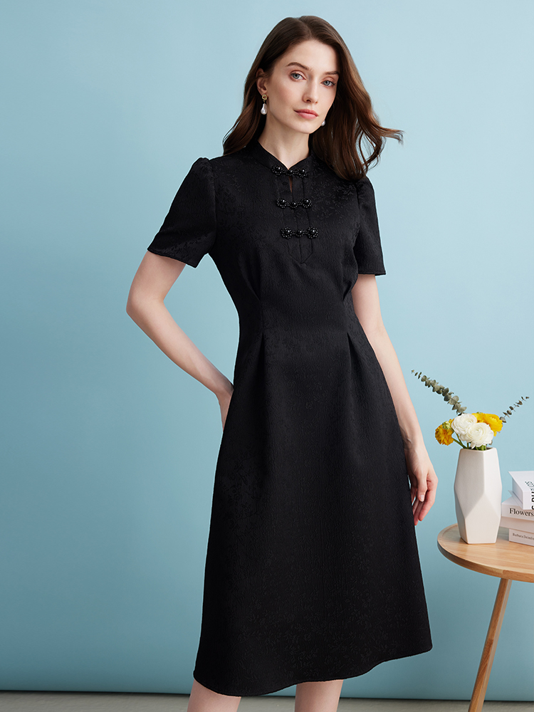 EITIE爱特爱新中式对襟珍珠盘扣收腰显瘦白色连衣裙夏季新款B2407306
