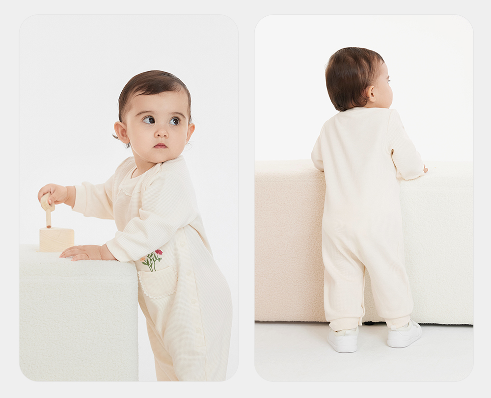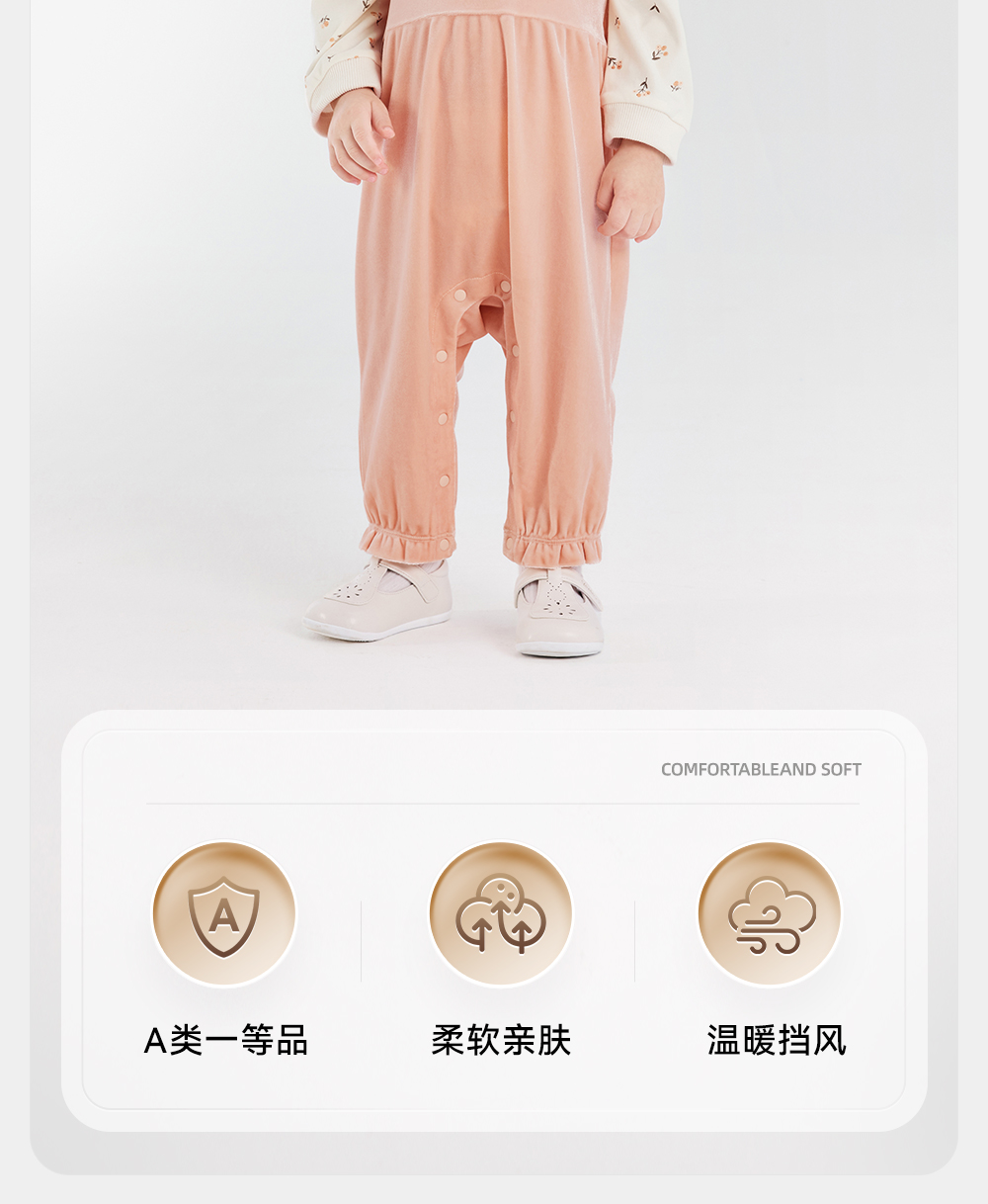 英氏婴幼儿连体衣四季长袖女宝宝爬服小童新款防静电连身衣