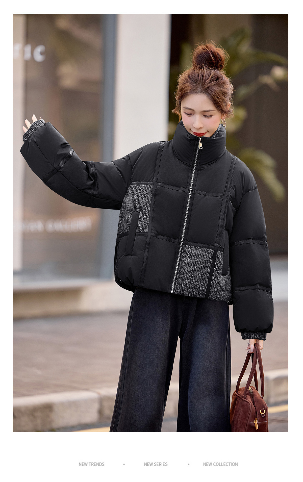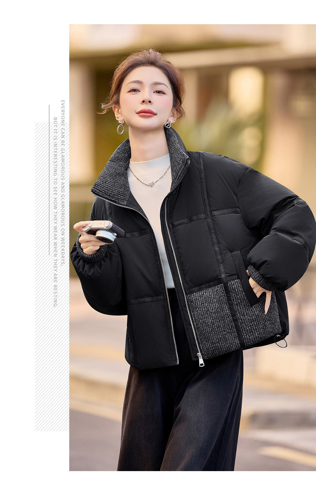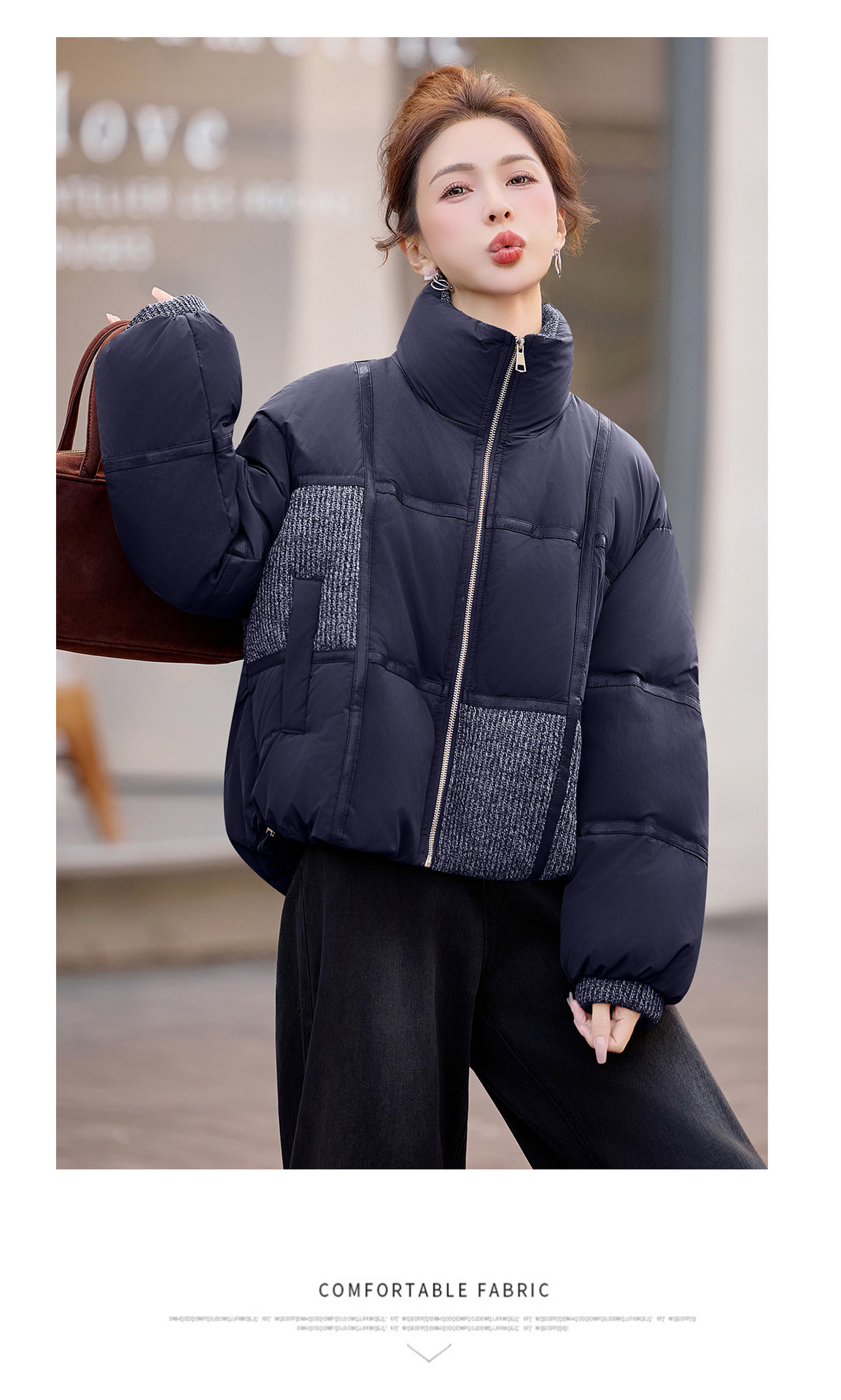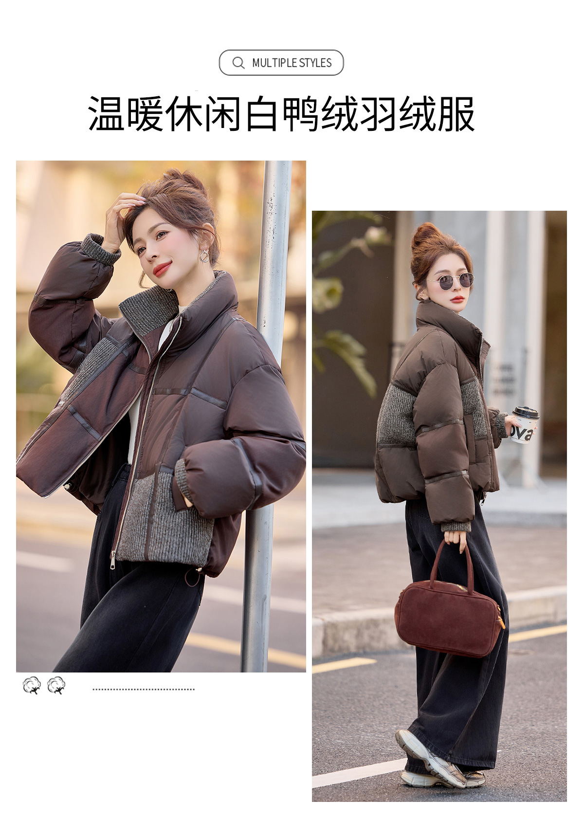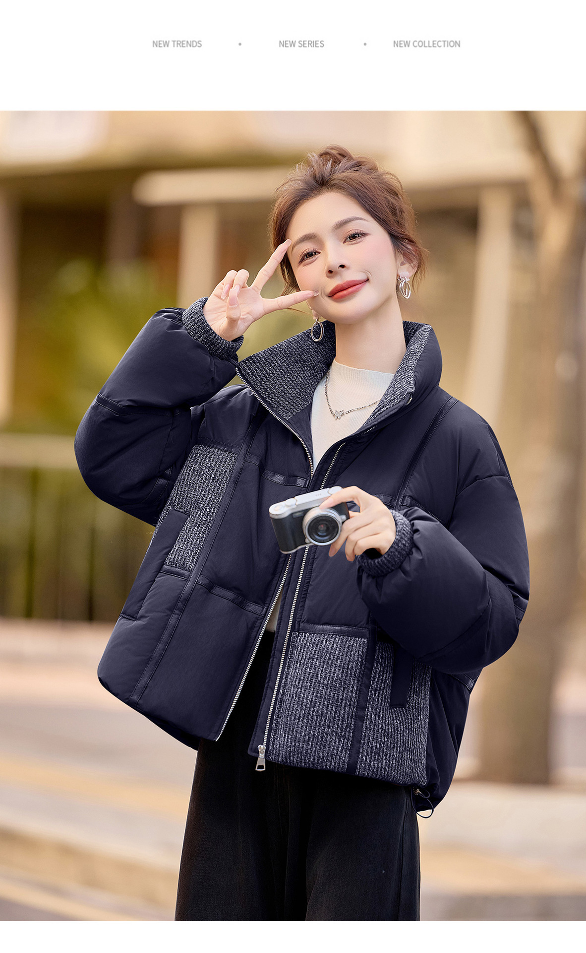 丁摩 拼接立领羽绒服女短款冬季新款时尚减龄保暖加厚外套5ZF-9012