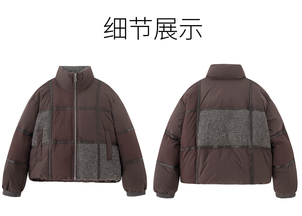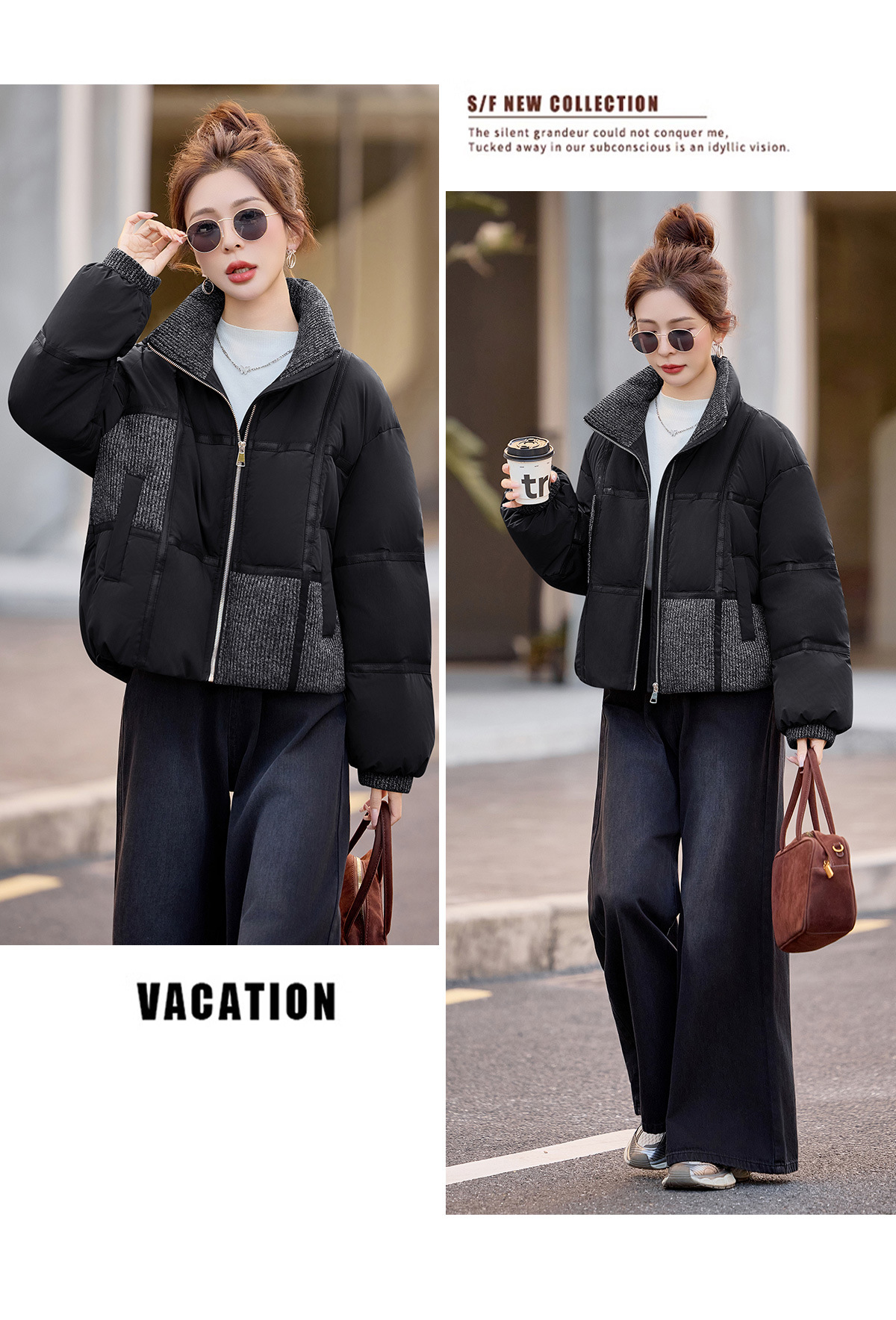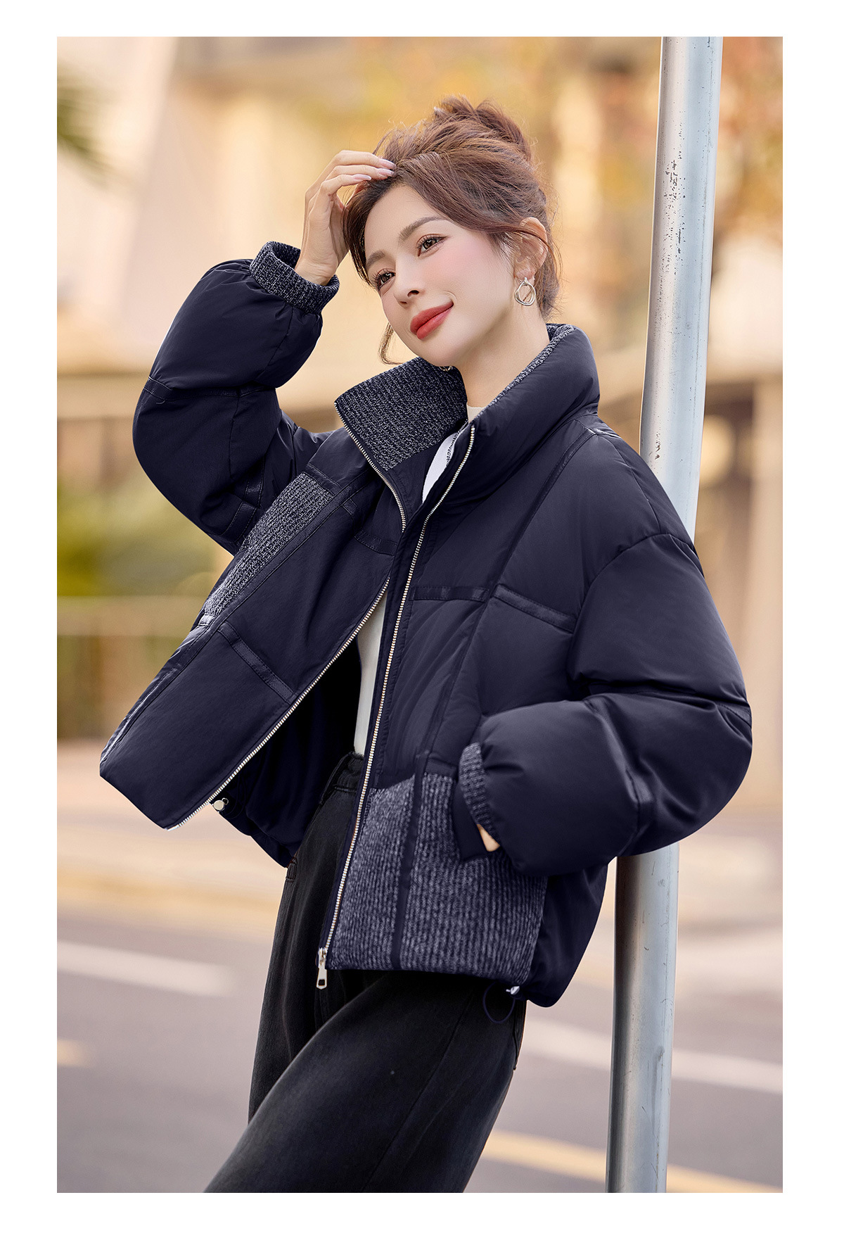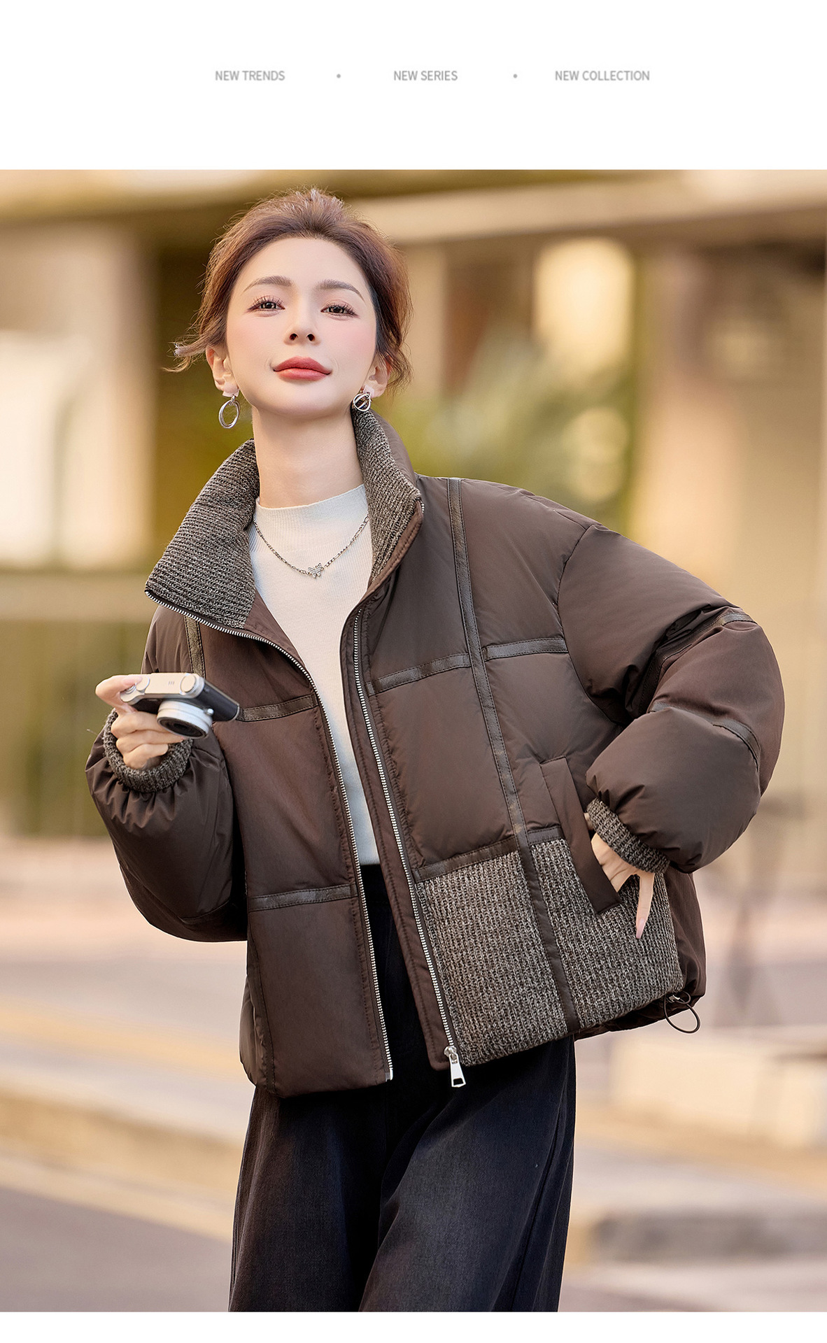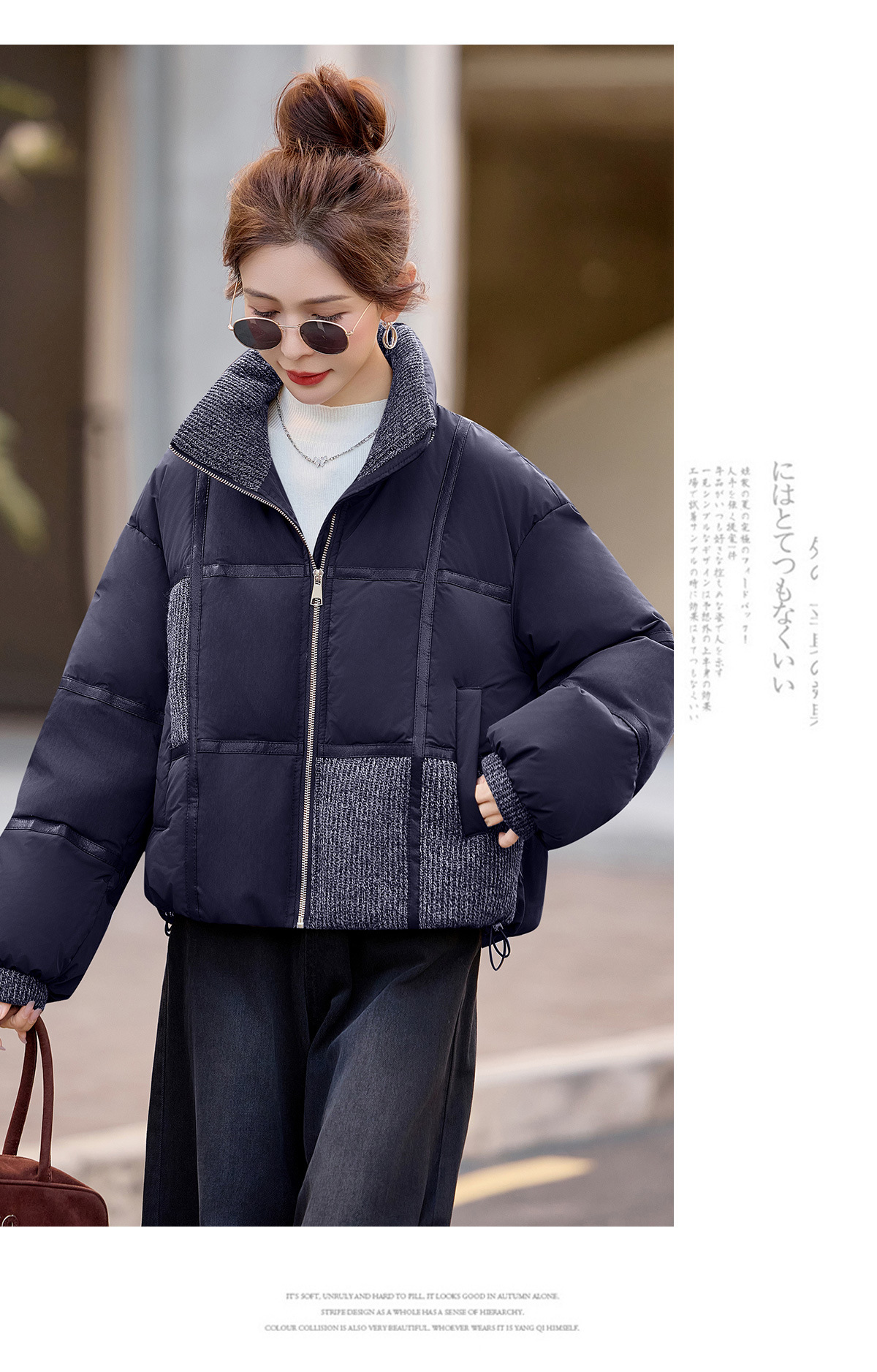 丁摩 拼接立领羽绒服女短款冬季新款时尚减龄保暖加厚外套5ZF-9012