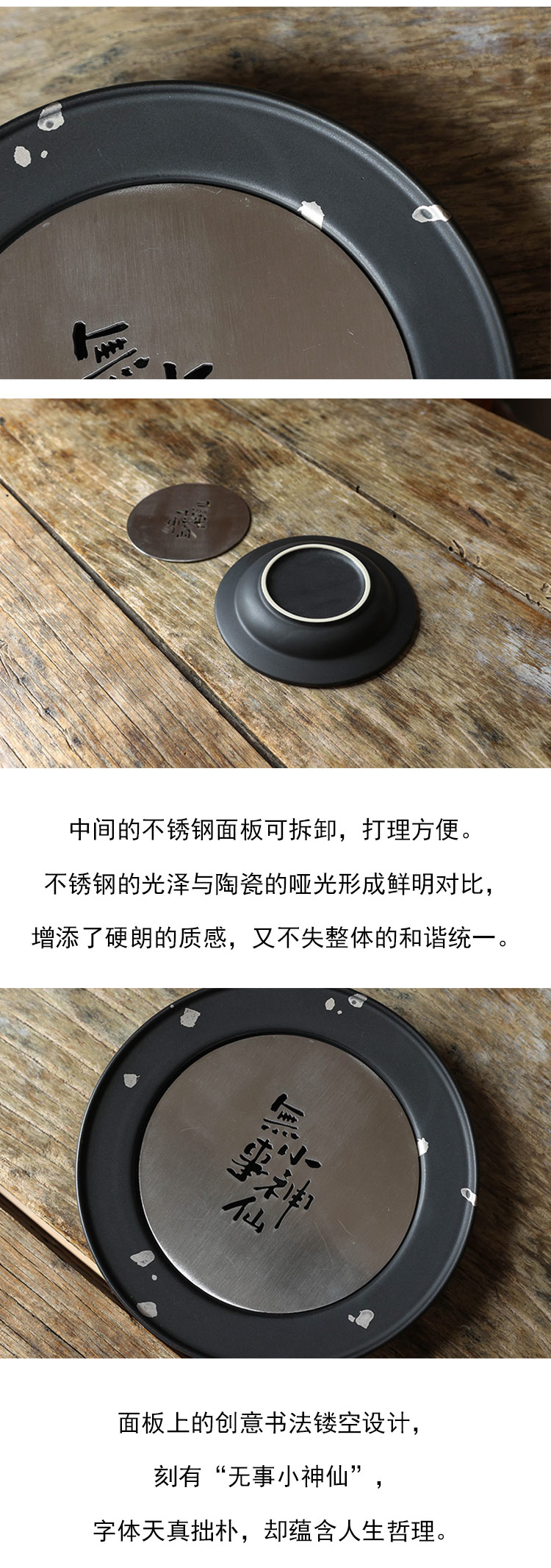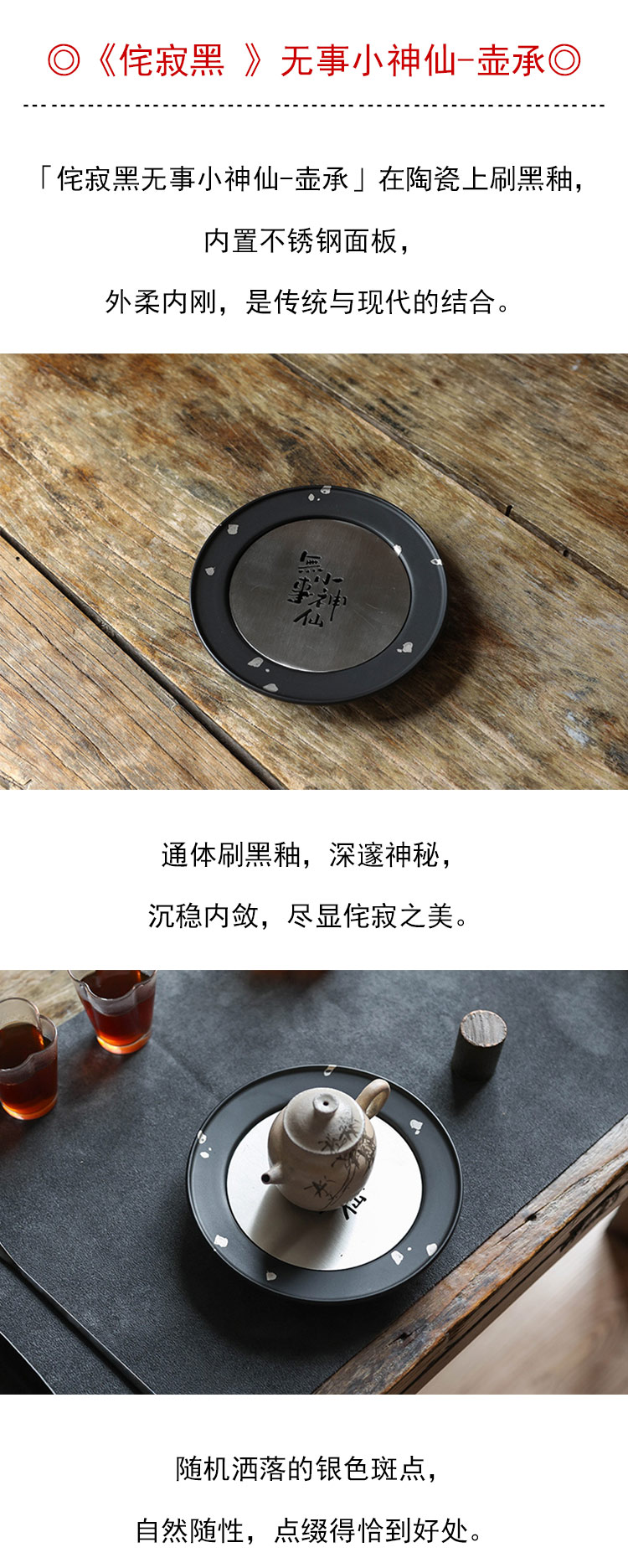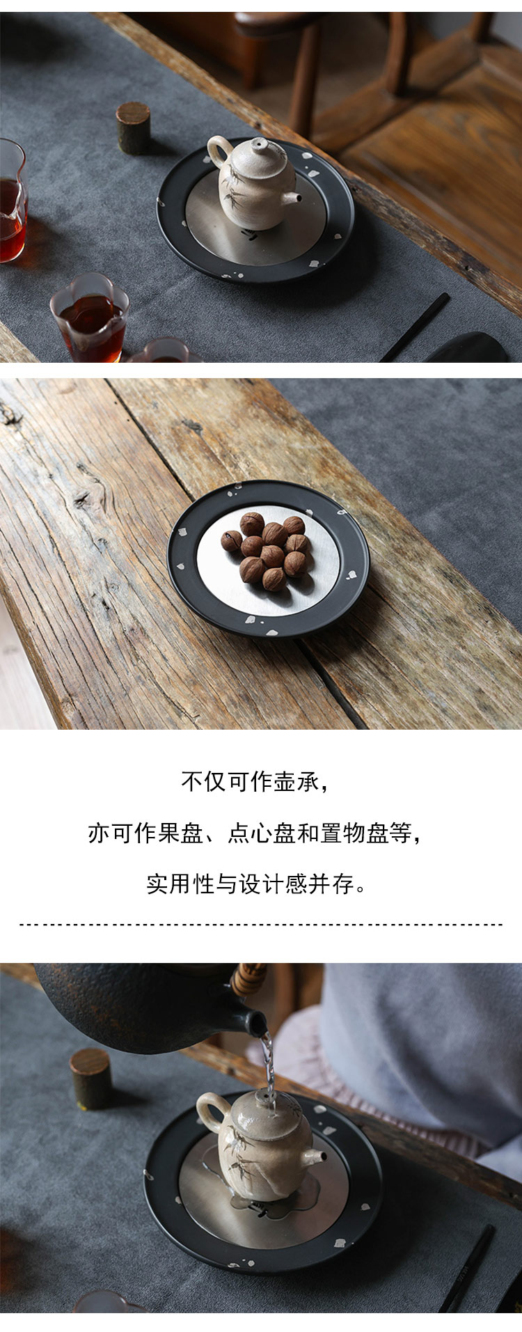 茶香记 侘寂黑无事小神仙-壶承干泡台茶道配件圆融大气百搭金属设计感