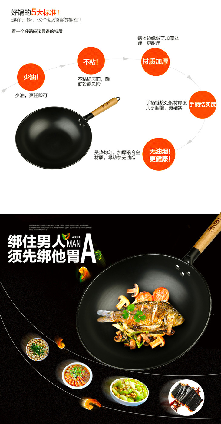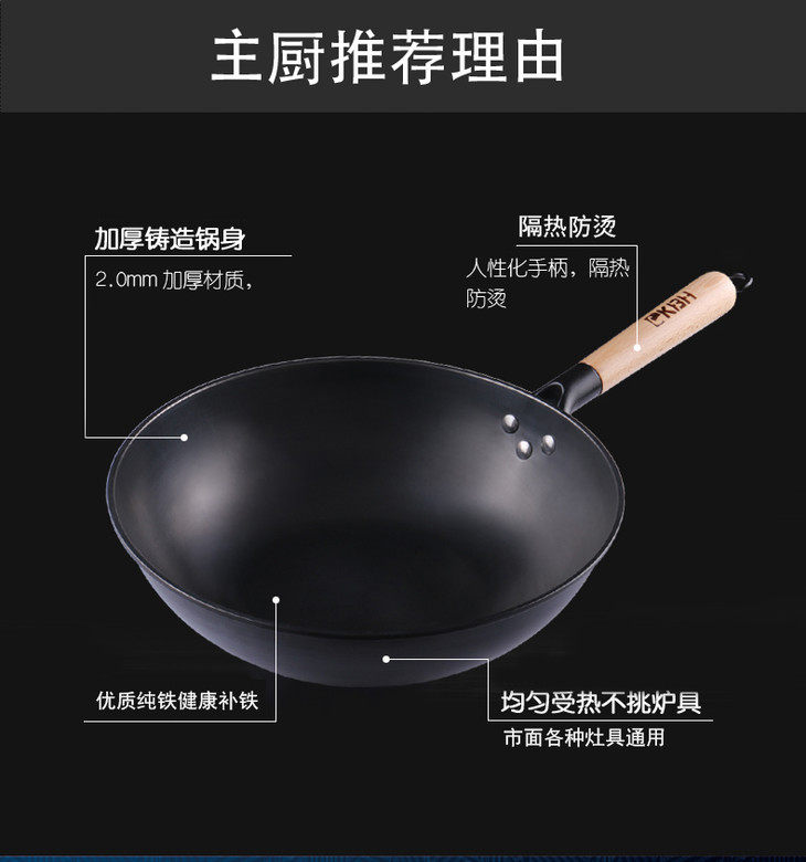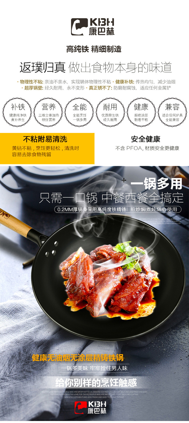 32cm康巴赫中华老铁锅盒装CZH32A1 带锅盖 不沾 少油 材质加厚