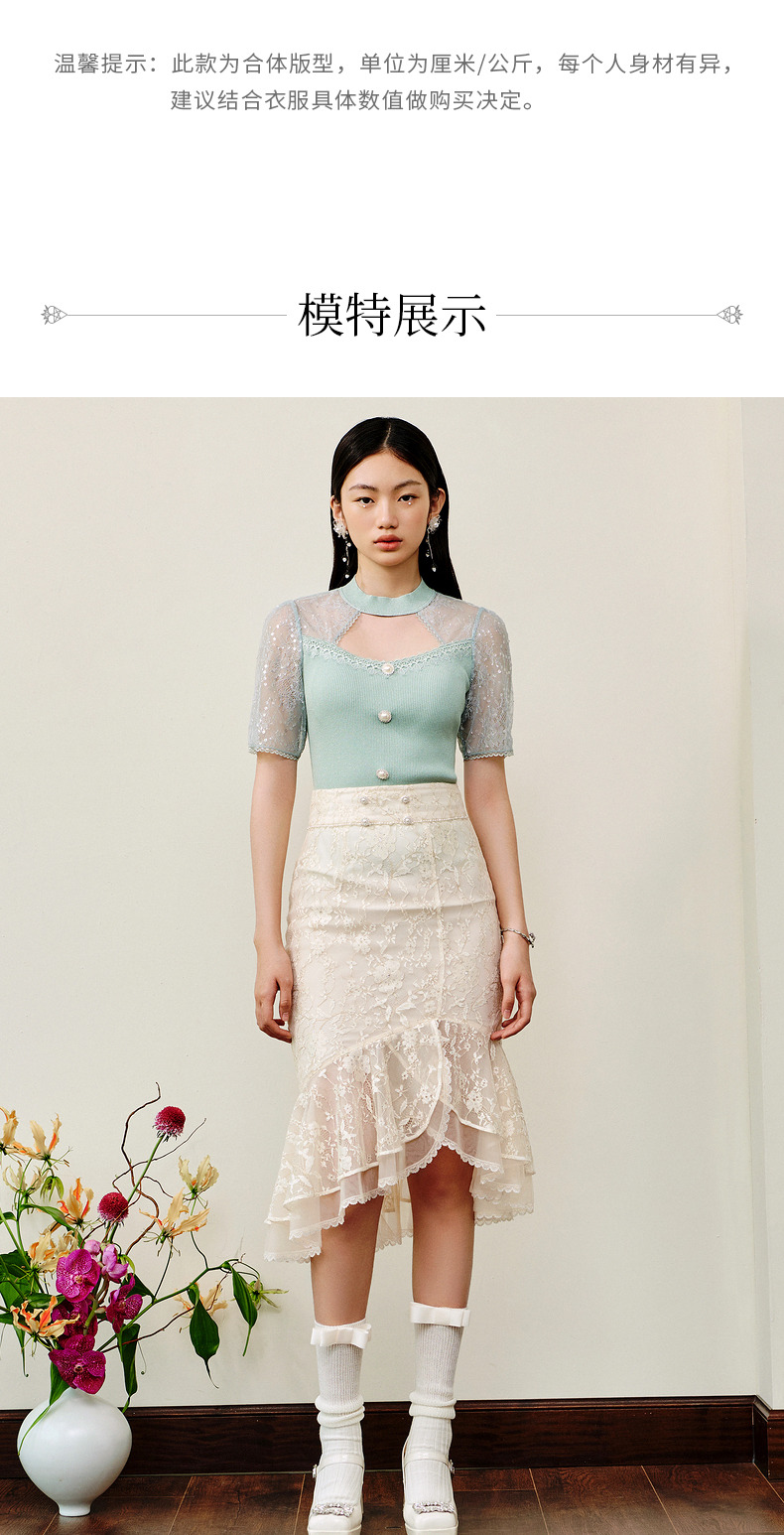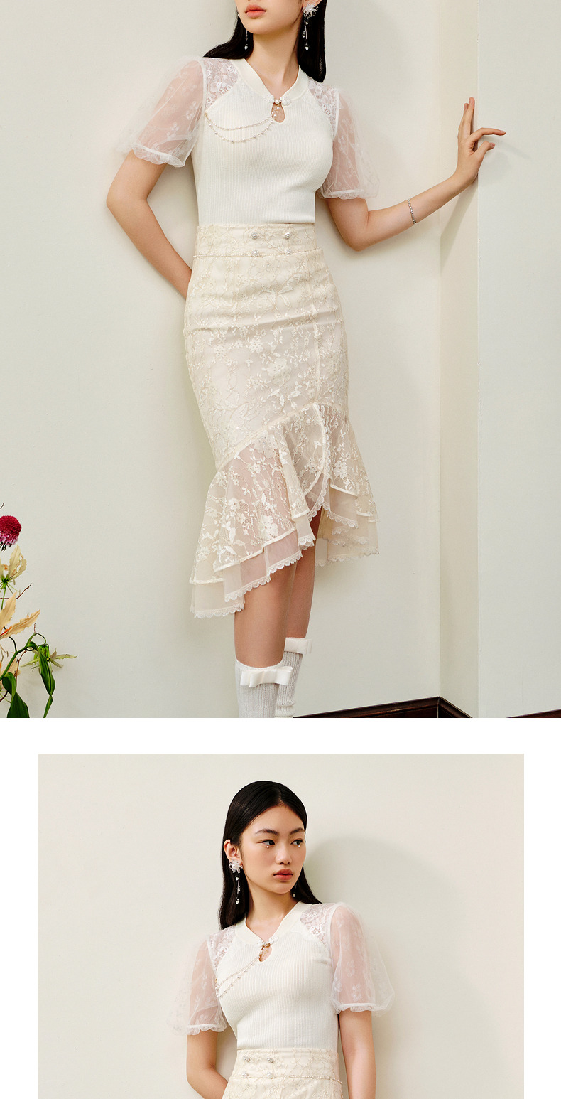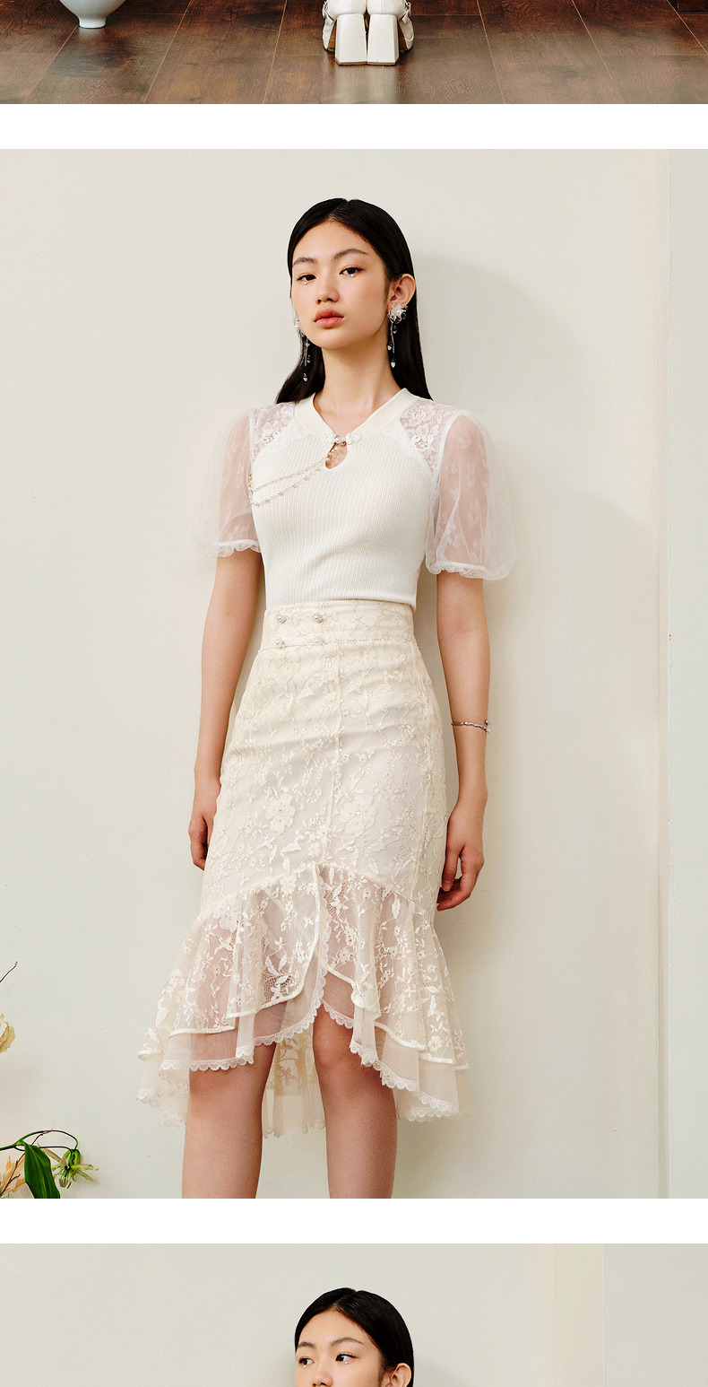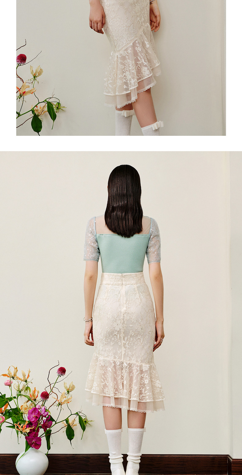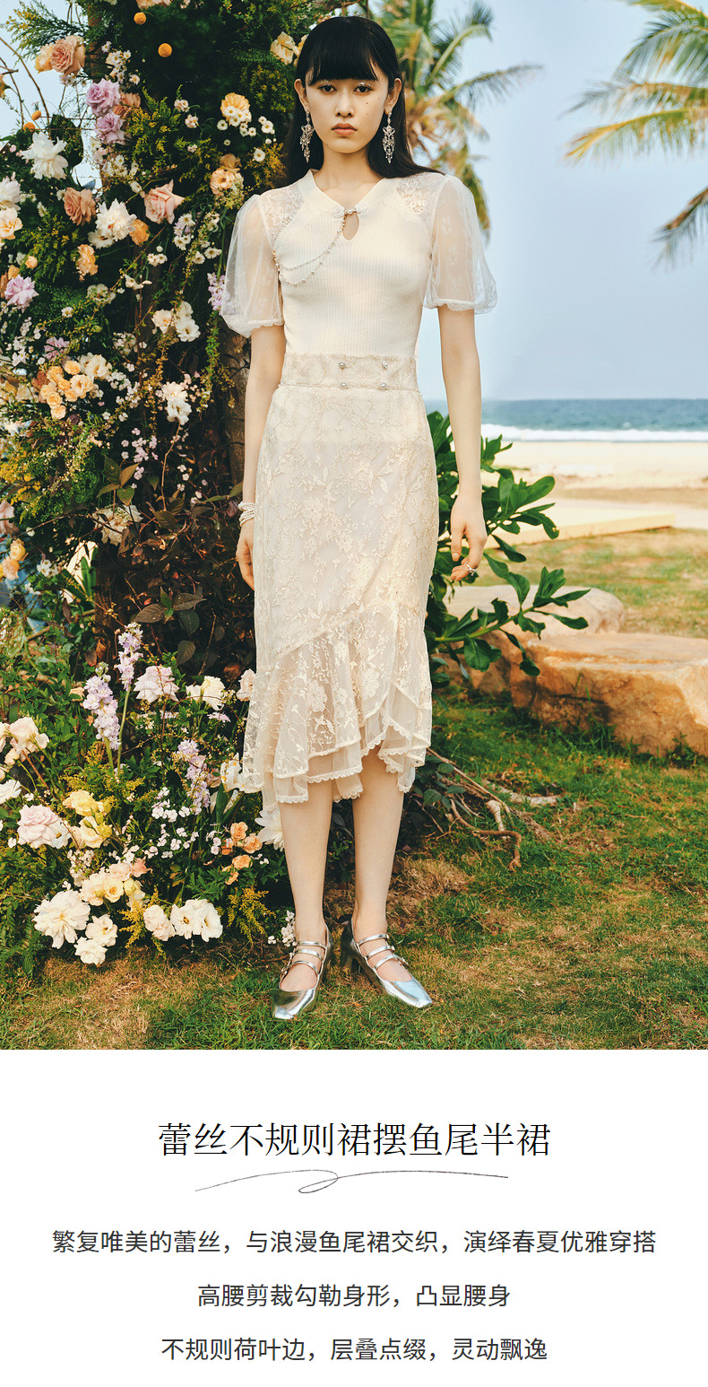 MAXRIENY仙美感蕾丝不规则裙摆半身裙鱼尾裙修身(货号:MS88SK253)