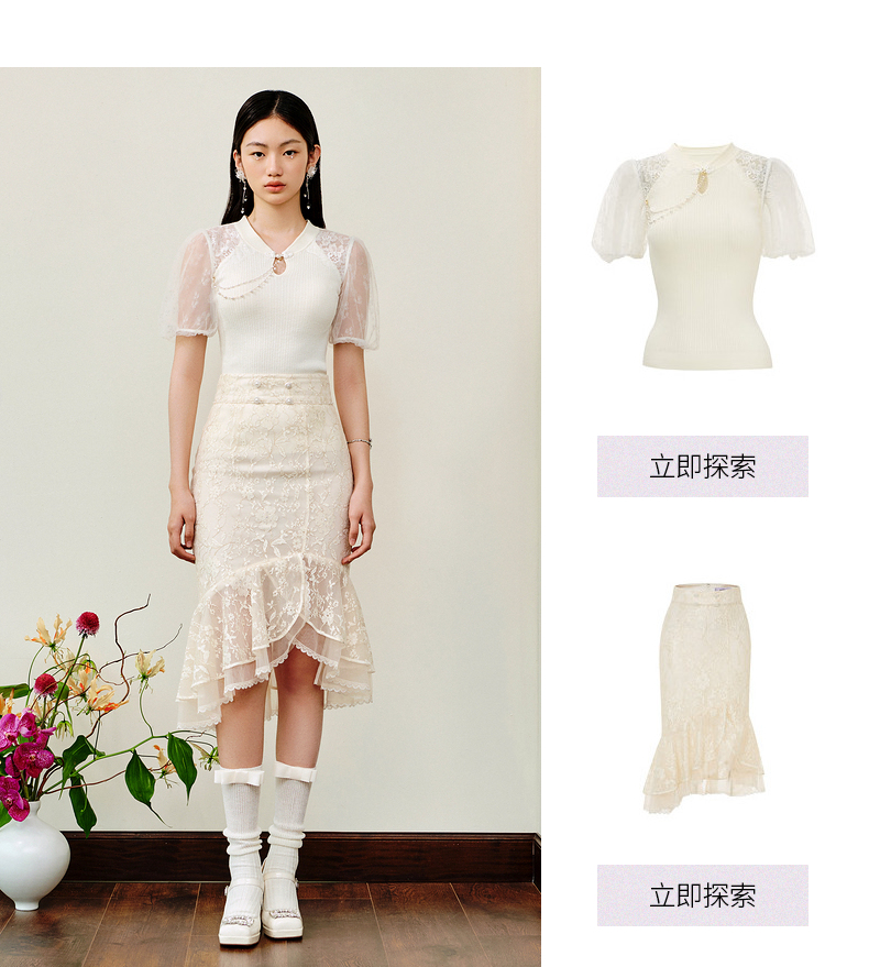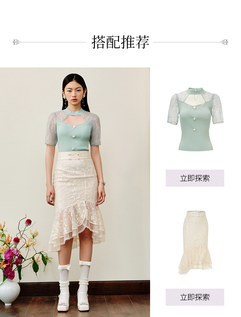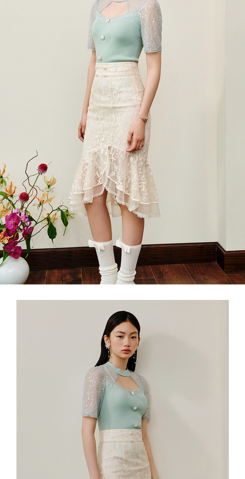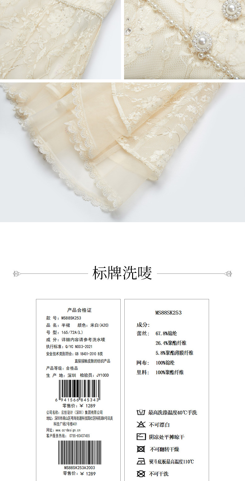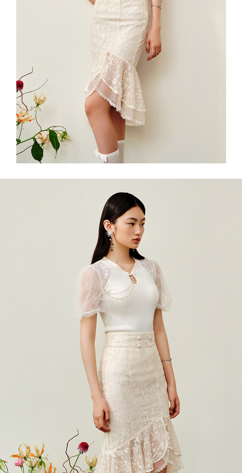 MAXRIENY仙美感蕾丝不规则裙摆半身裙鱼尾裙修身(货号:MS88SK253)